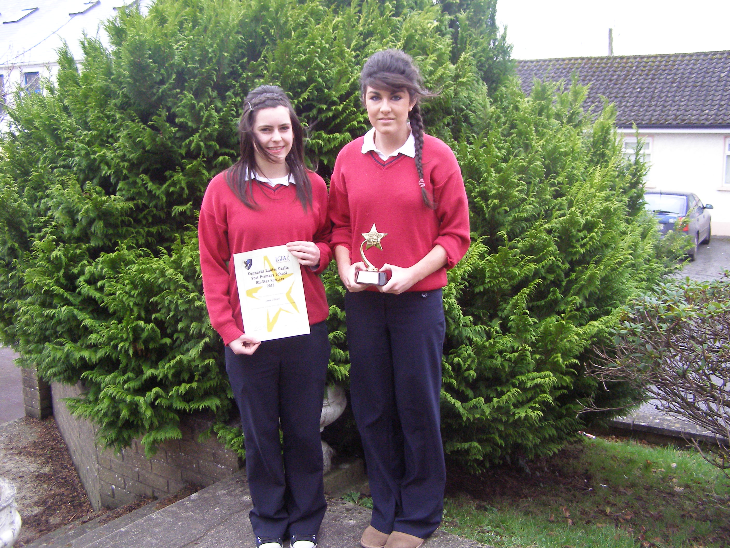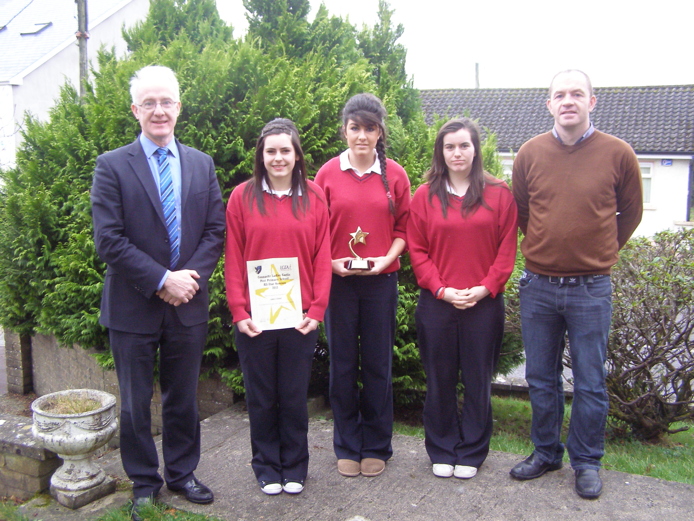 Congratulations to Laura O Dowd, Leaving Cert., on receiving a Post Primary School All-Star Award in Midfield at No. 8. Three of our students attended the trials , namely Laura, Caoimhe and Alanna Maher. Congratulations to all three for been selected to attend the trials and special mention to Alanna for receiving a certificate for reaching the final panel and was extremely unlucky not to be chosen. As our school could only forward 4 students some girls lost out on the oppurtunity and gave up there trial place to other players too give them a chance at making the Connacht team. Well done all. You done your school proud.