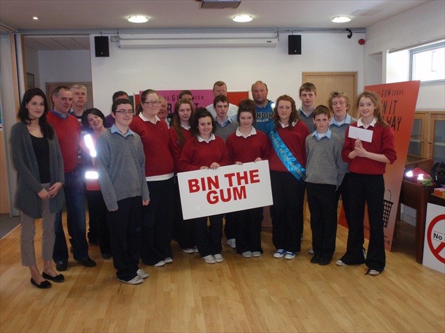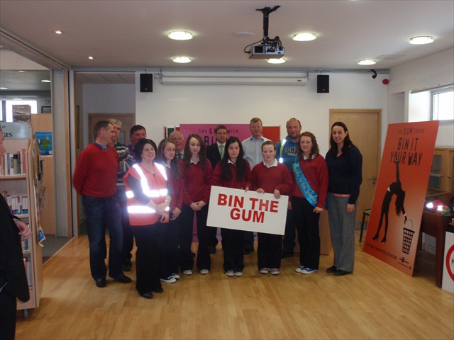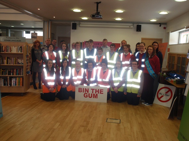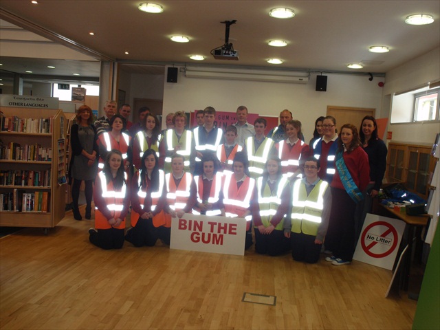 The students council with the students council coordinator Camilla Clarke and a group of first year students with Ms. Colum were invited to the launch of the “Bin the Gum” campaign launch in Ballinamore Library. Students had the opportunity to show their “rapping” skills and all the students took part in a “rap” song. The local Tidy towns committee, local concillers and Linda Lyons from the Co. Council were present.