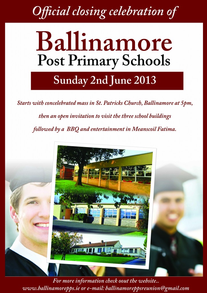 For more information, please feel free to contact any member of staff or get in touch with us at 087-7037636 or email ballinamoreppsreunion@gmail.com