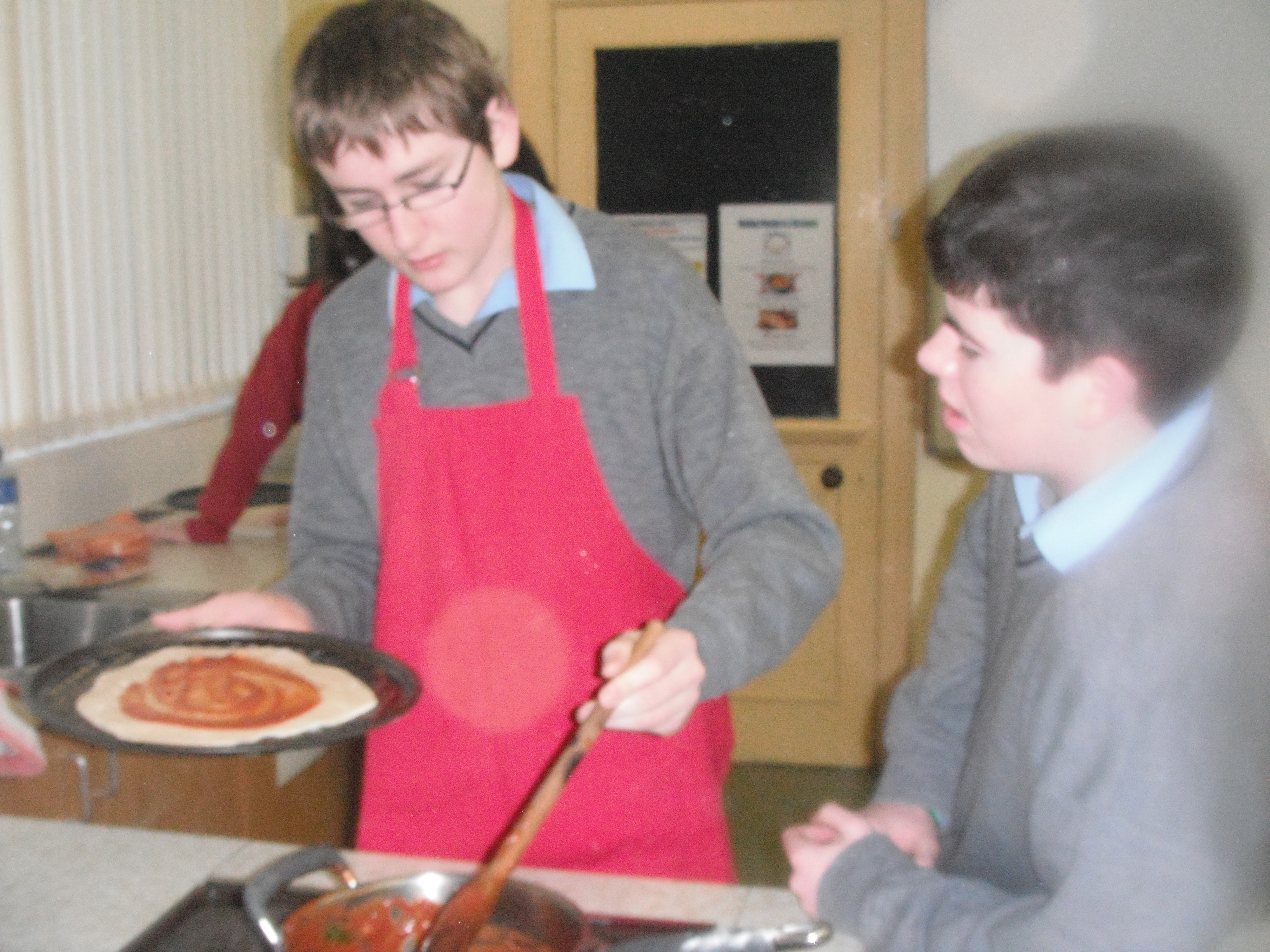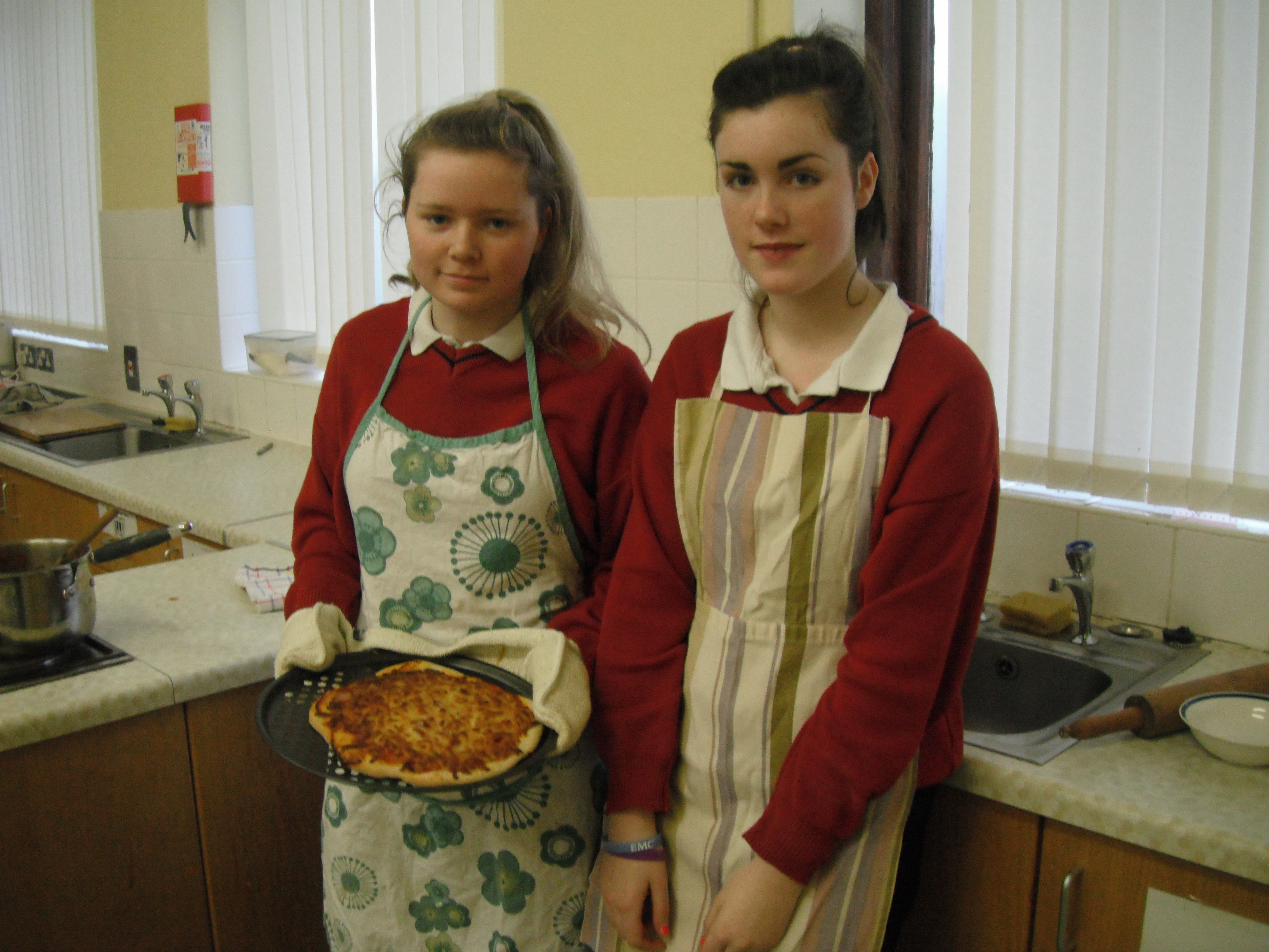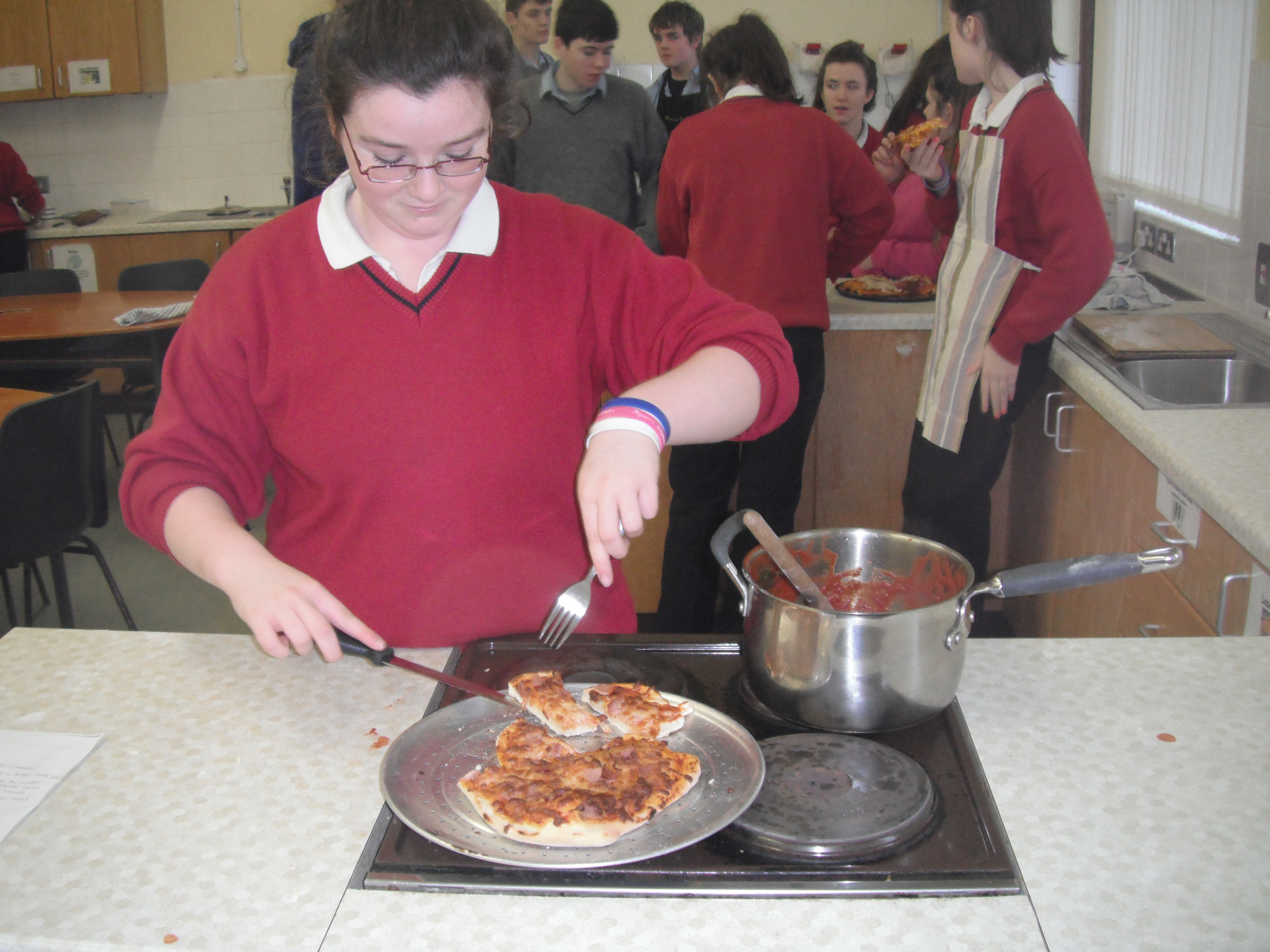 On Thursday 30th January the TY Home Economics class did a pizza making workshop. First they learnt how to make their own pizza dough base using yeast, made a healthy tomato and basil sauce for the base and each group made their own pizza’s using their favourite toppings.