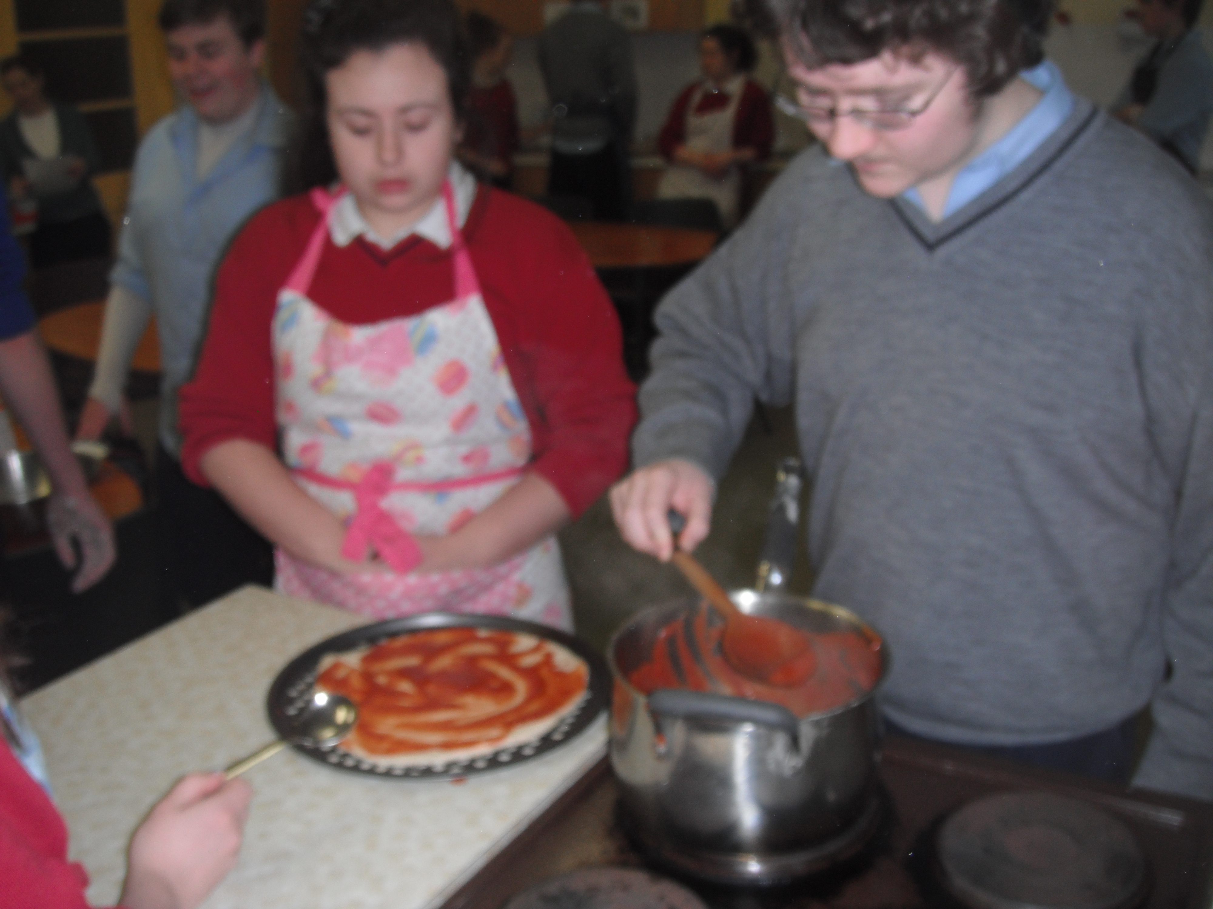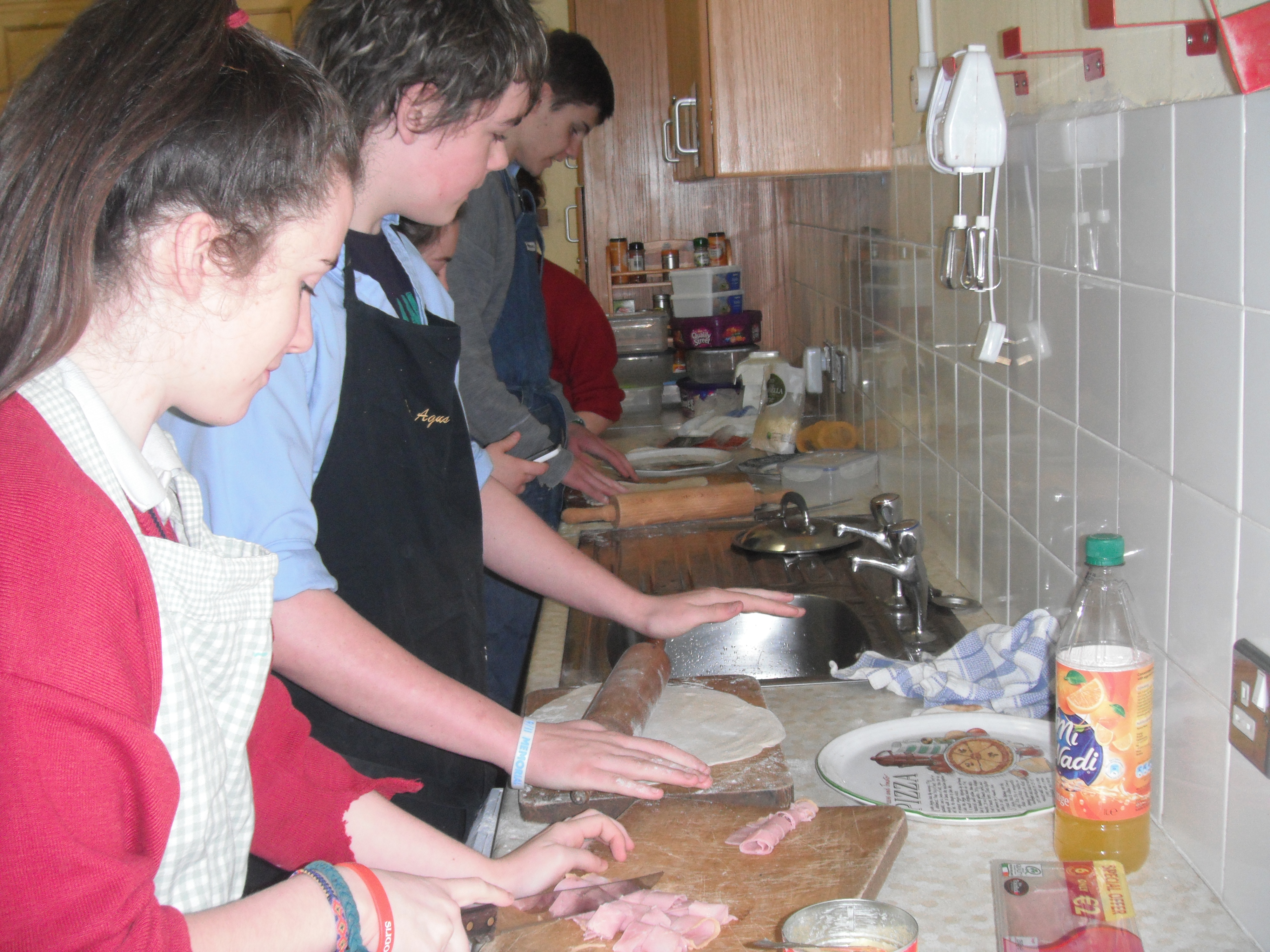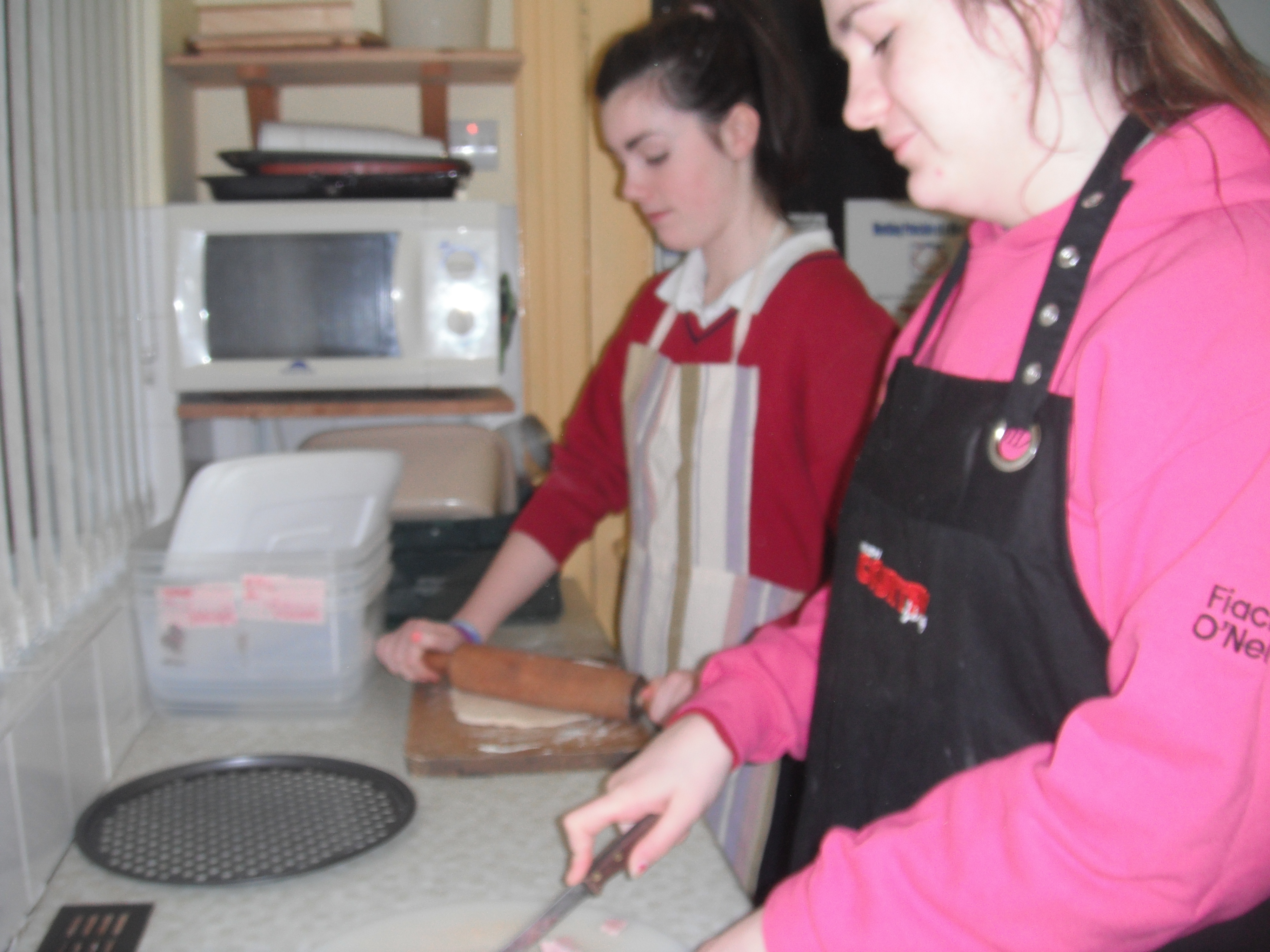 On Thursday 30th January the TY Home Economics class did a pizza making workshop. First they learnt how to make their own pizza dough base using yeast, made a healthy tomato and basil sauce for the base and each group made their own pizza’s using their favourite toppings.