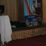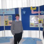 Over the course of the day other participants came and viewed their stand. They listened to other presentations and had a chance to give a six minute presentation, to all gathered, about the work they did for the project. As the four students began their presentation, they decided to do things a little differently… No one expected them to drop to the ground and feed their presentation through a pre-recorded video display! (It was well received by the audience).