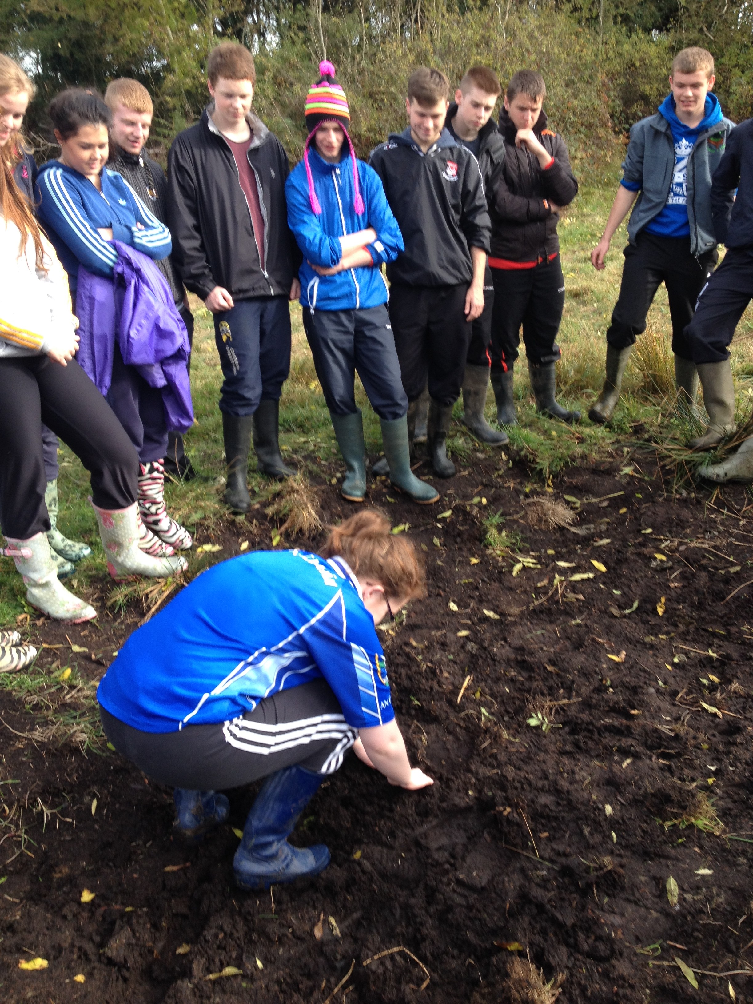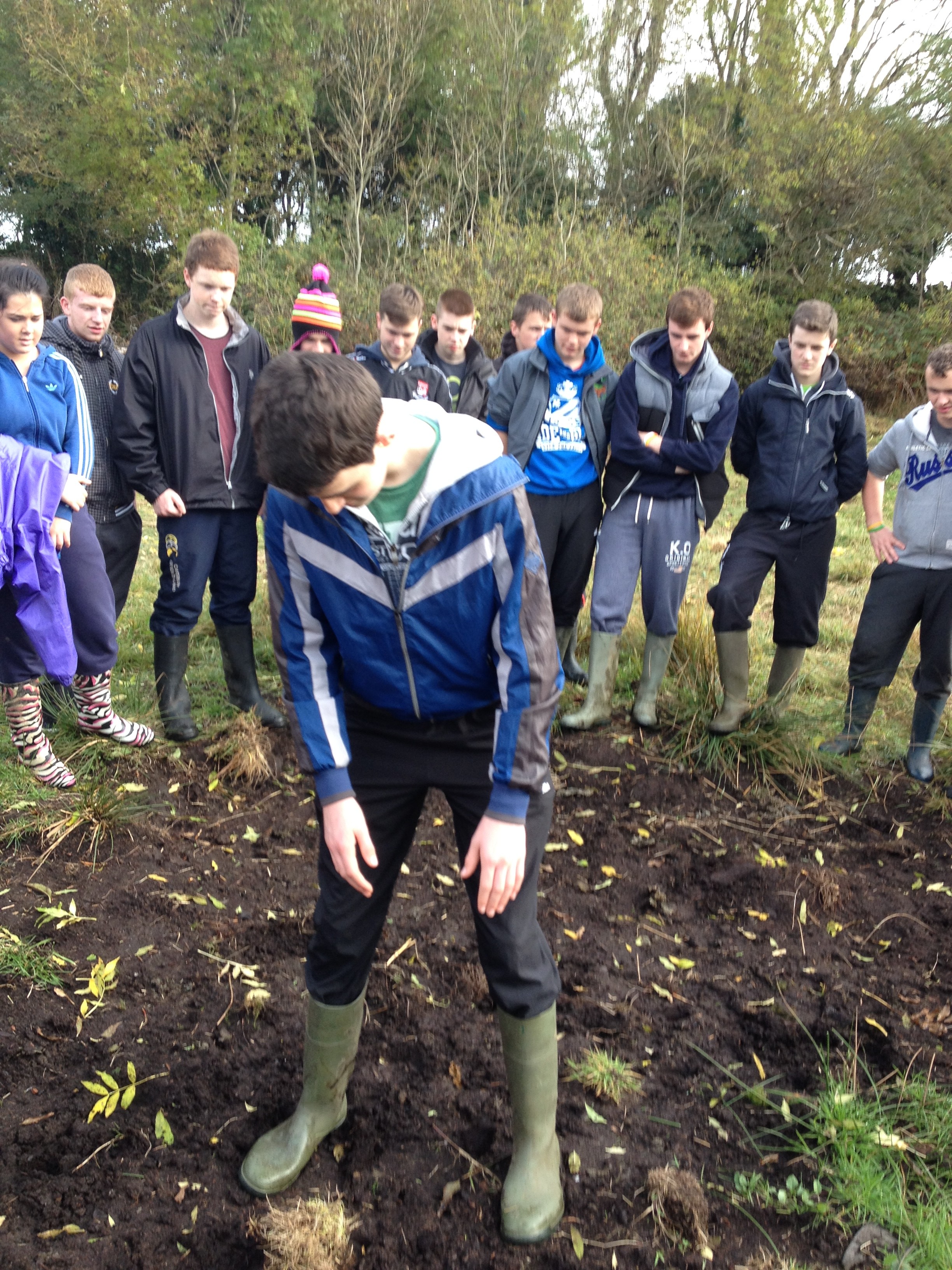 In the afternoon the T.Y class journeyed some of the Tóchar Phádraic (the ancient pilgrim path to Croagh Patrick).Part of this pilgrimage involved a journey through a forest area, where everyone was encouraged to spend time in silence with God. At the end of this there was even a little time to search in the muck…!