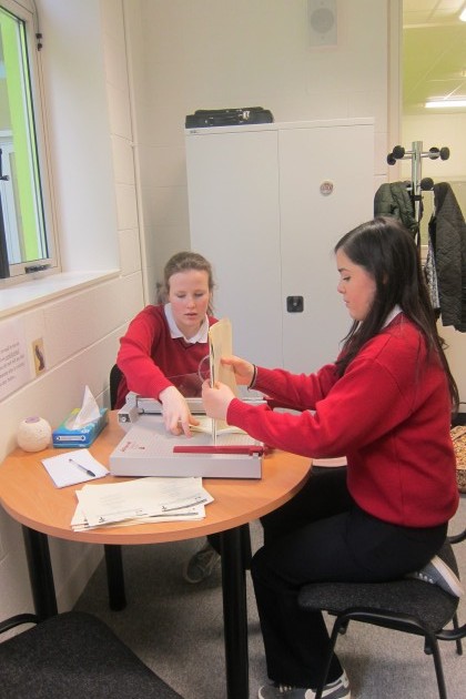 The TY Students open and run the Bank every Friday during the morning break, with the help of AIB Student Officer Phil Flynn and their Business Teacher, Mrs Moran. All students in the School can open an account with the Bank, and are encouraged to become regular savers.