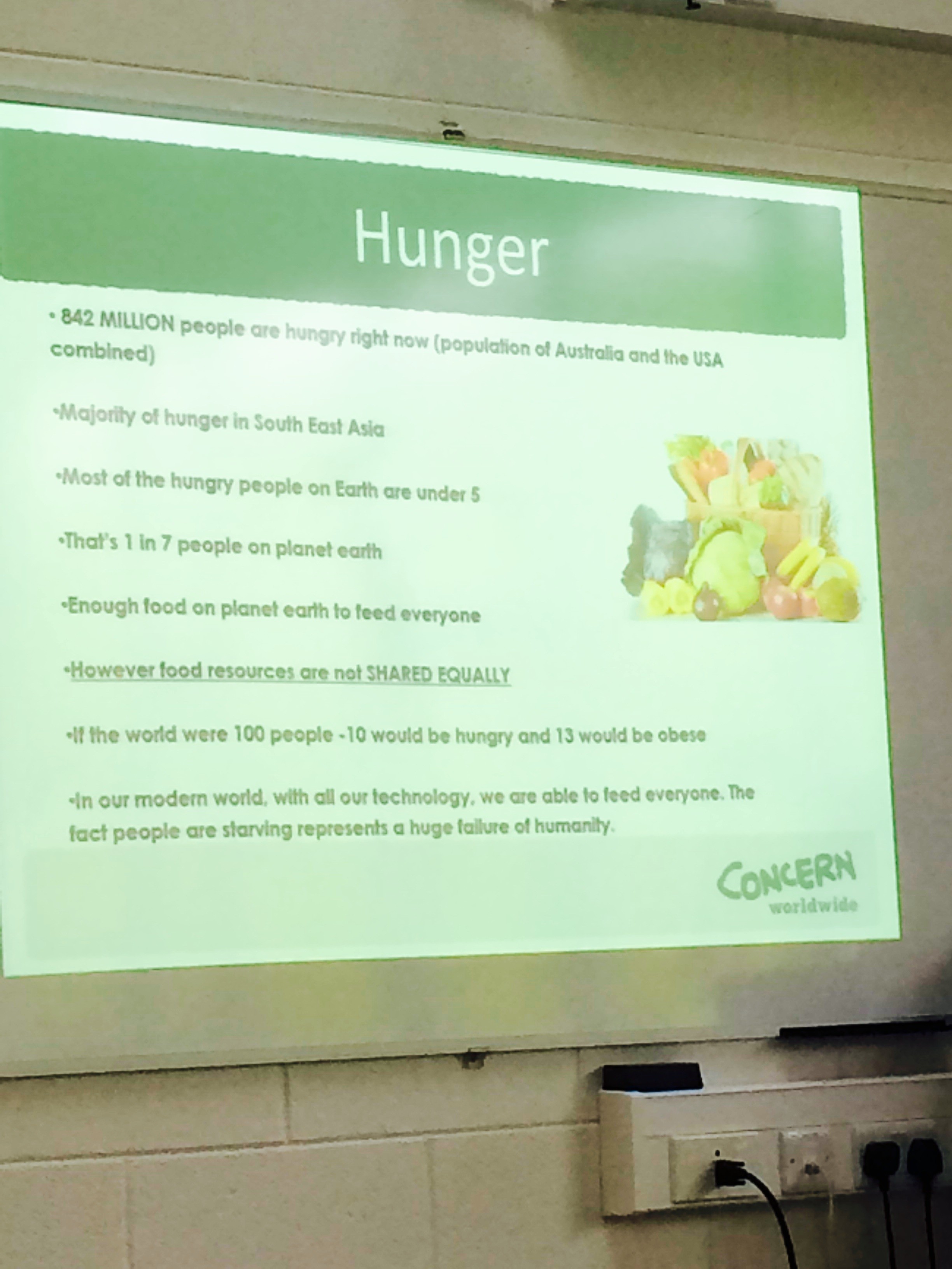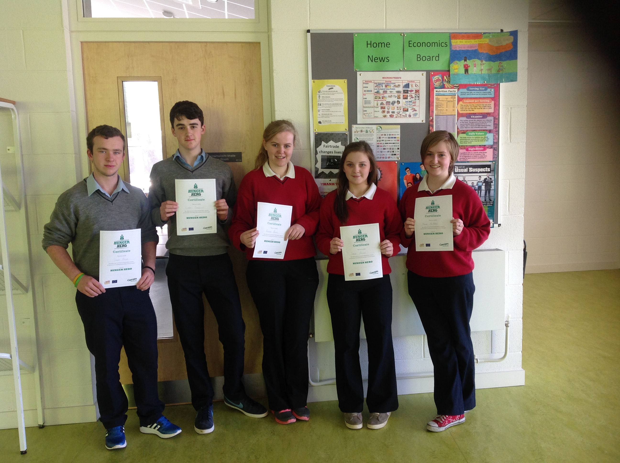 Transition Year’s undertook a variety of activities around the area of world hunger and food poverty for their DE Module. They participated in a CONCERN workshop on the area of World Hunger and learnt more about how people in developing countries are affected by lack of food. Another activity they undertook was the St Vincent De Paul Christmas Food Appeal where various food boxes were donated in school and helped those in need on the lead up to Christmas. This was part of their work during Social Awareness Week. The final activity students took part in was the Concern Fast prior to Christmas (along with some of the Junior students) where the total amount raised for Concern was €857.66 . Well done to all the students in school who participated in the fast and helped raise a fantastic amount for Concern. As a result of their effort and work in this area they were each awarded a Hunger Heroes Certificate from Concern in recognition of their commitment to understanding more about this topic.