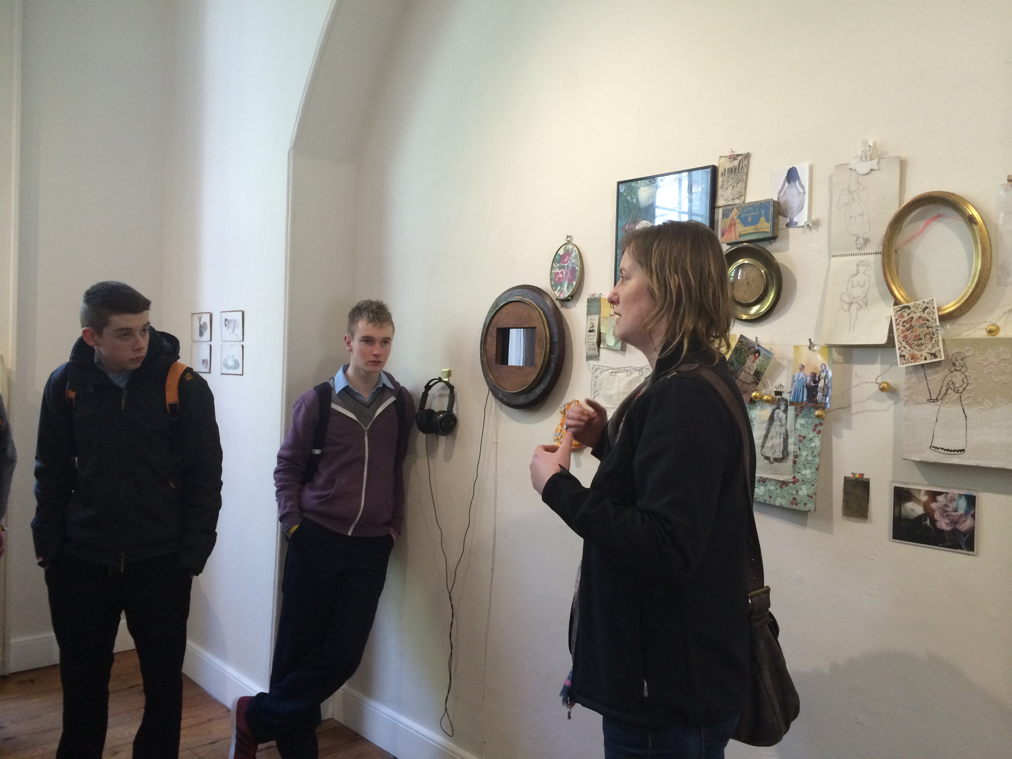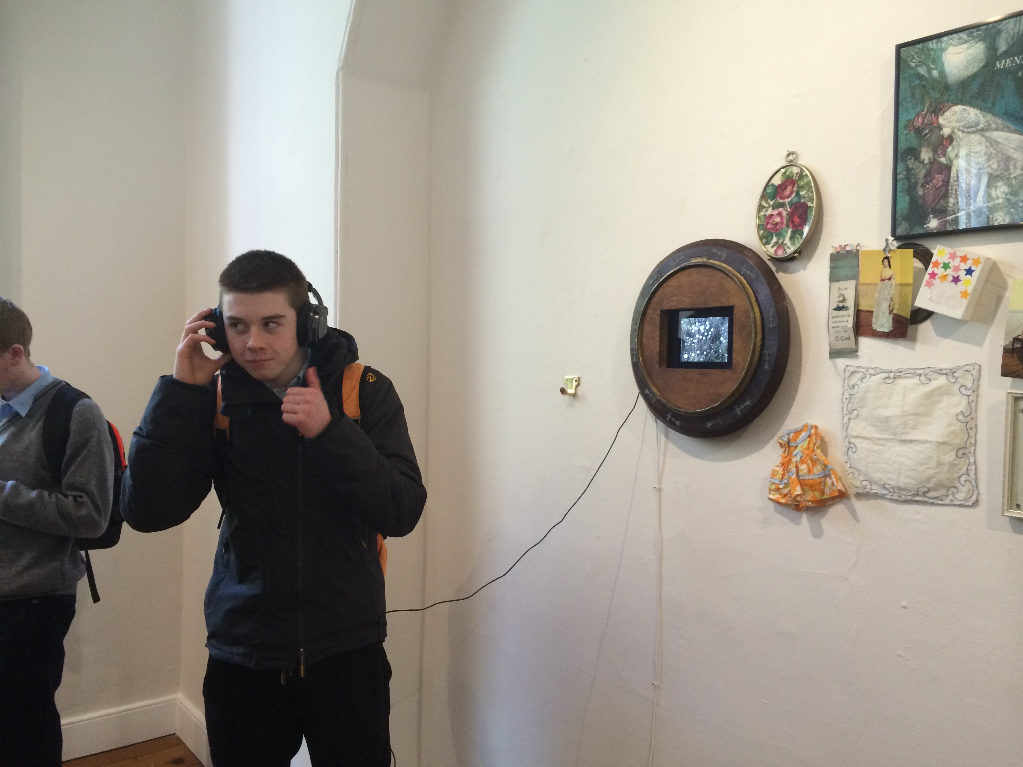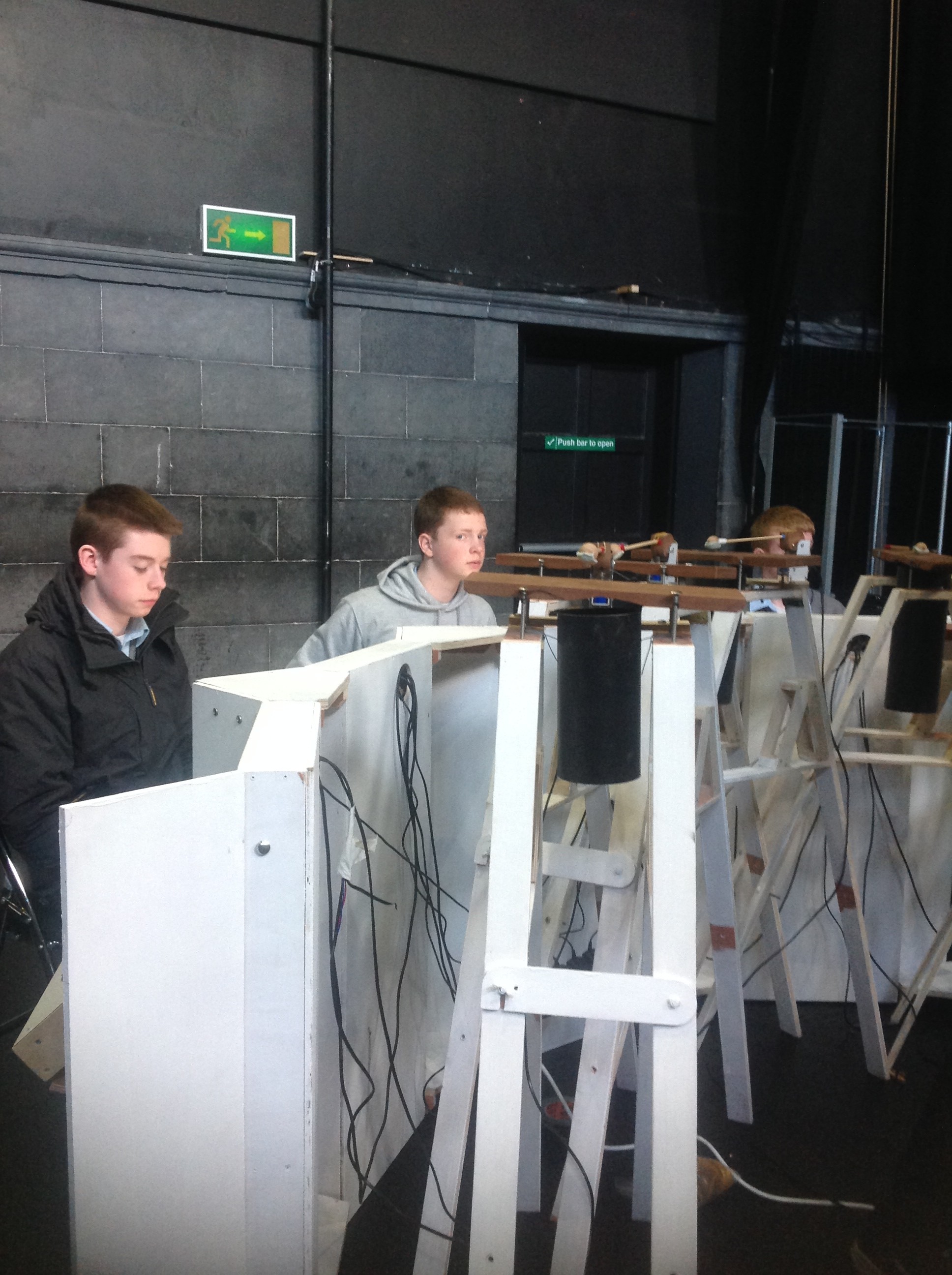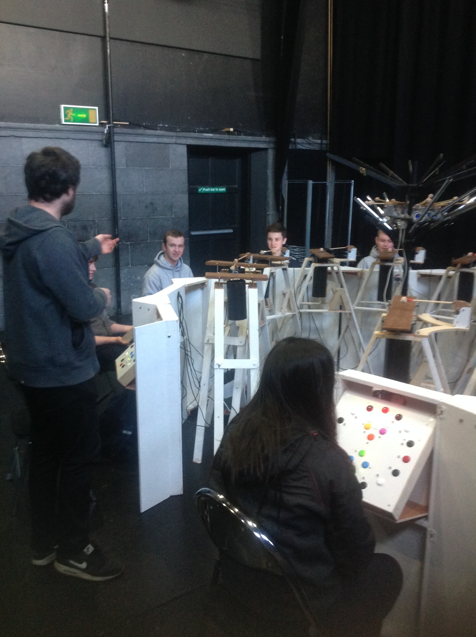 Dodeca Cycle is an electronic and mechanical music installation designed and built by Ed Devane in 2014. The system allows people to make intricate rhythmic and melodic music. TY students took part in the workshop on the 26th February in the Dock Arts Centre in Carrick on Shannon and created their own sounds using the unit which were then recorded. Upstairs in the exhibition space there were two exhibits that the curator in The Dock explained to students. The exhibition continues until Saturday 28th March.