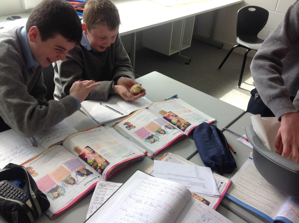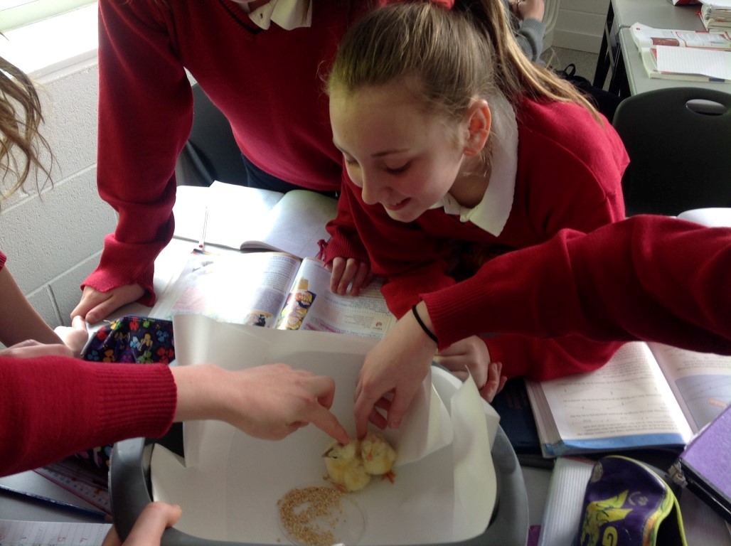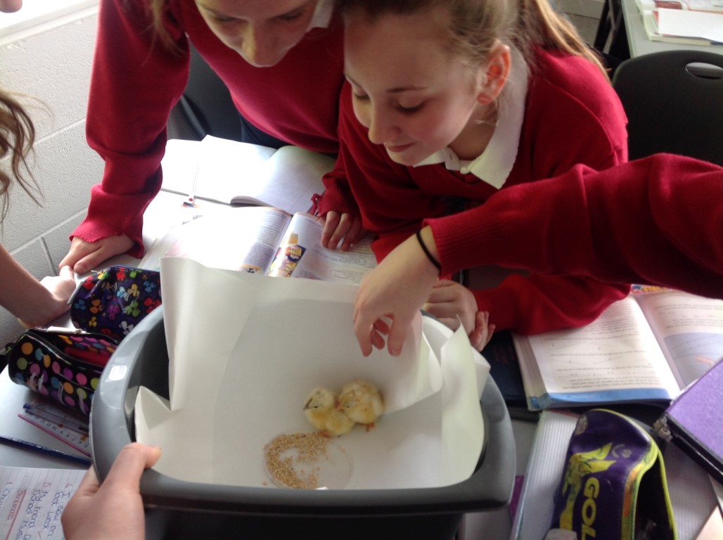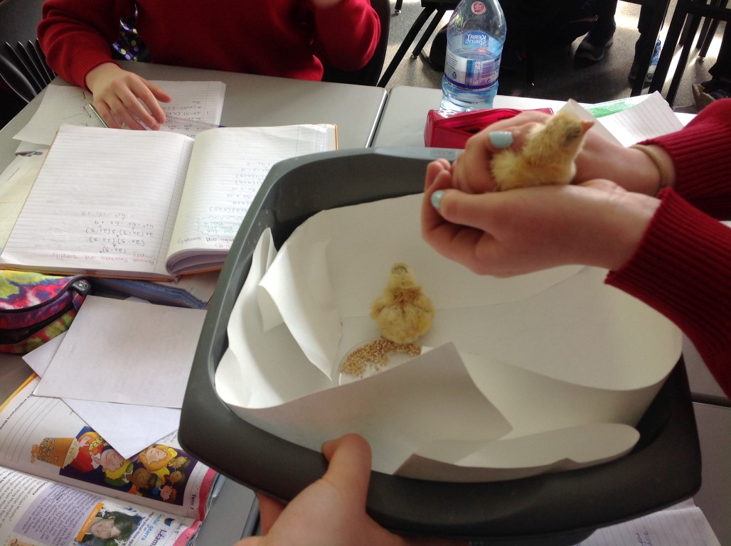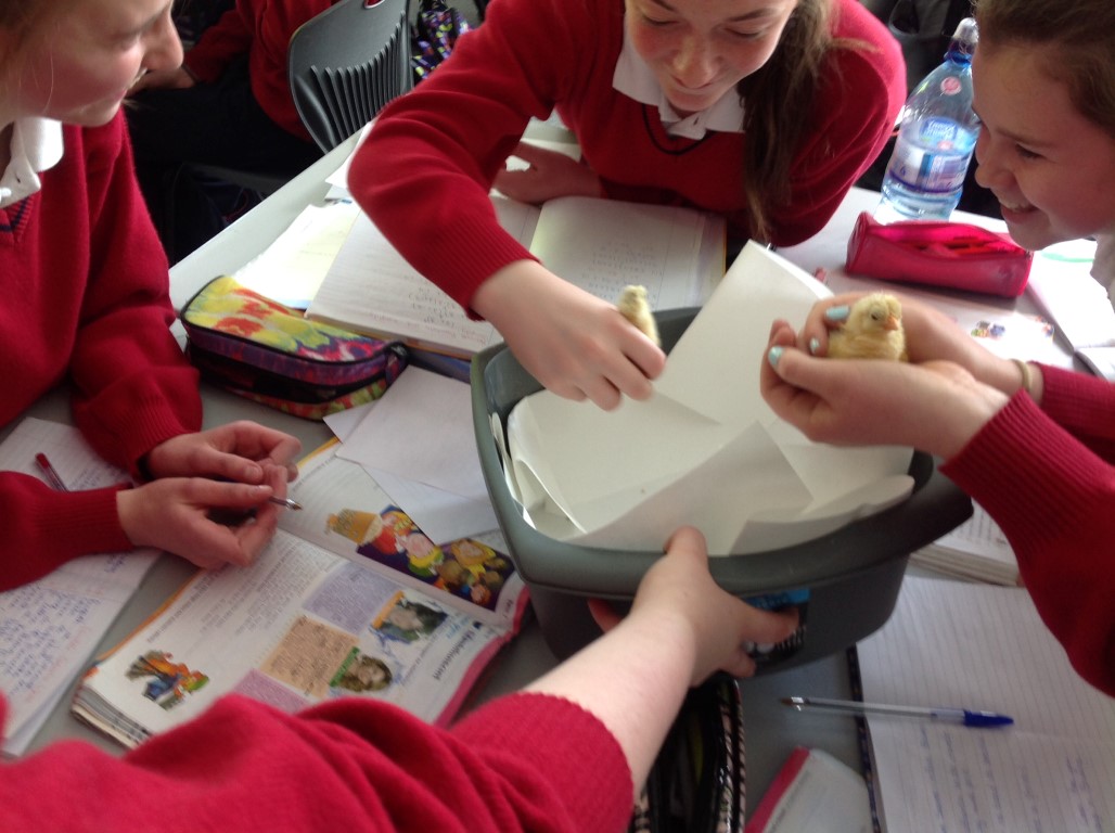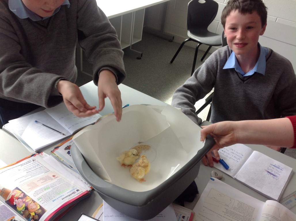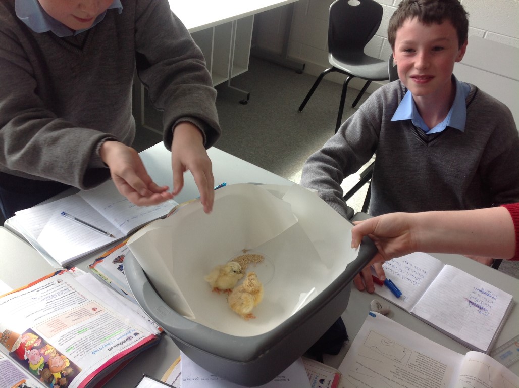 After waiting three weeks our chickens hatched out and were delighted to meet the students at Ballinamore Community School.