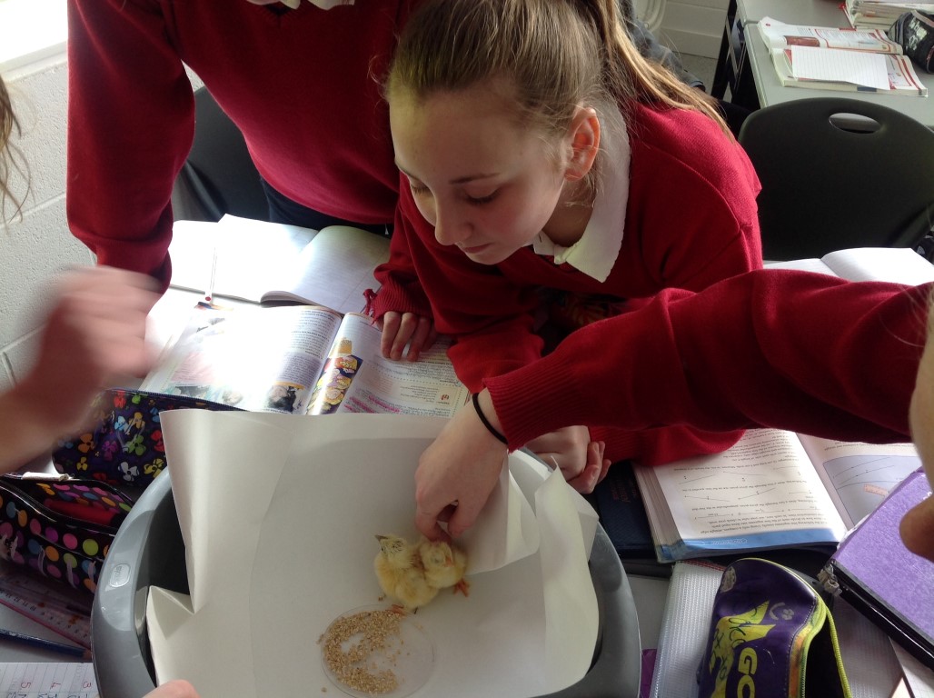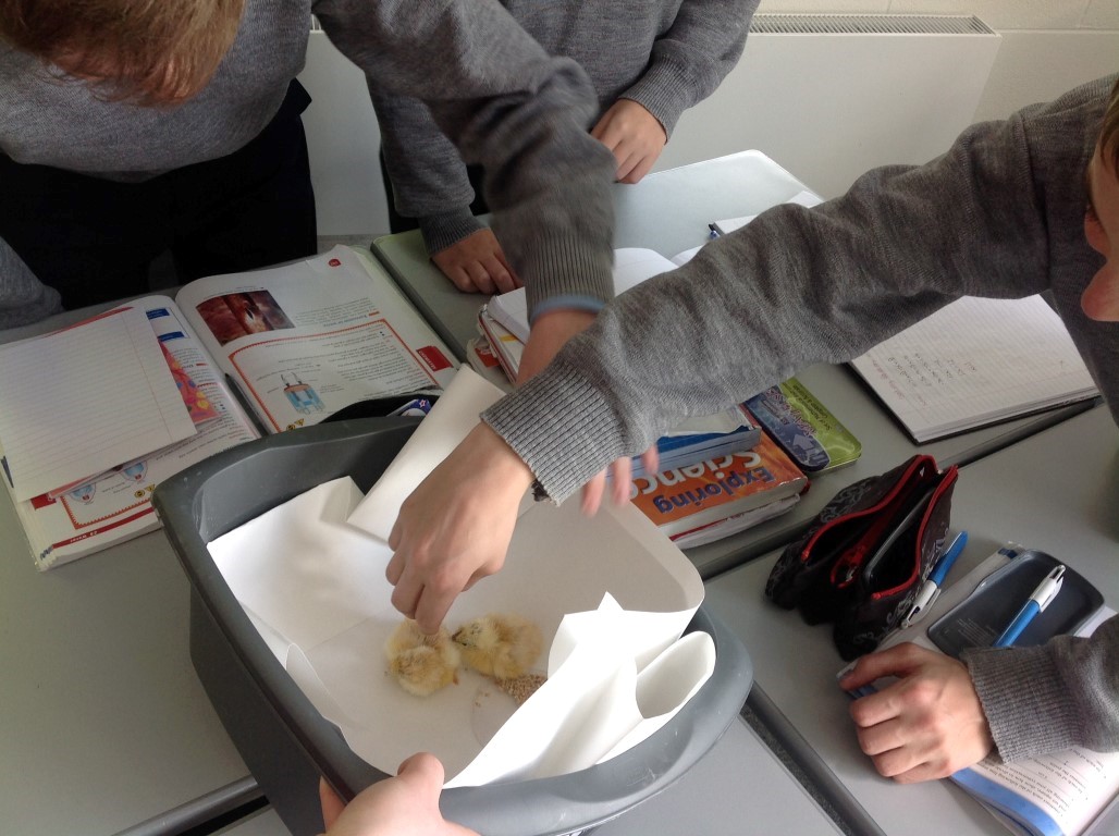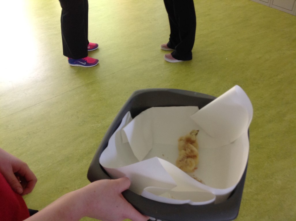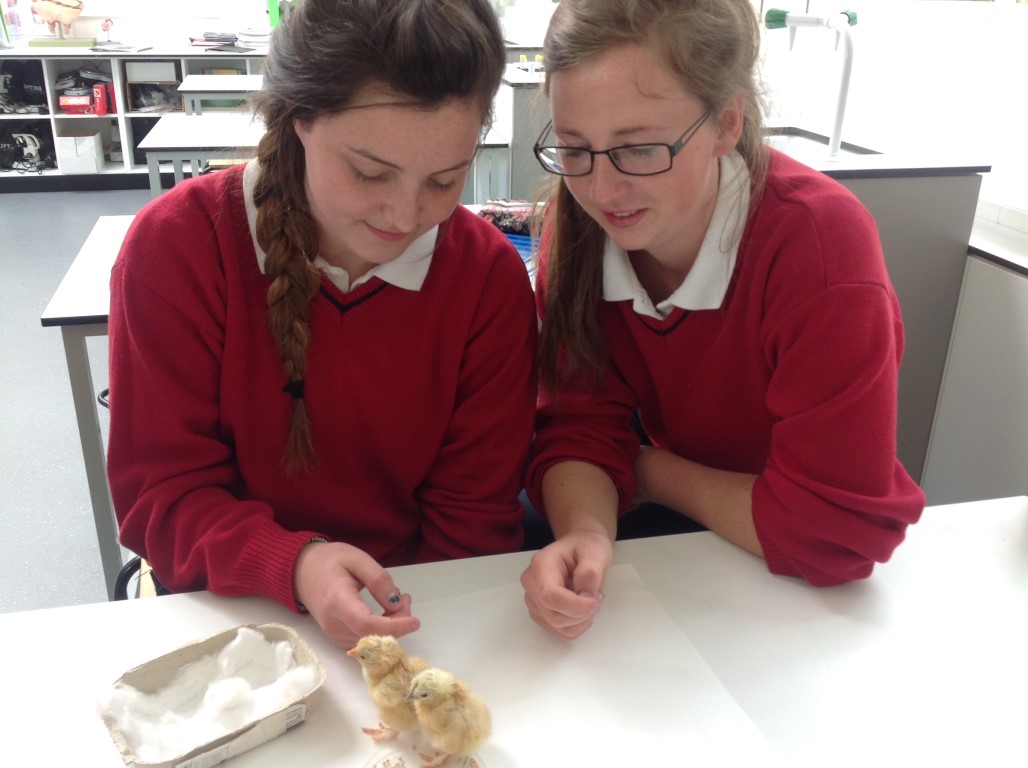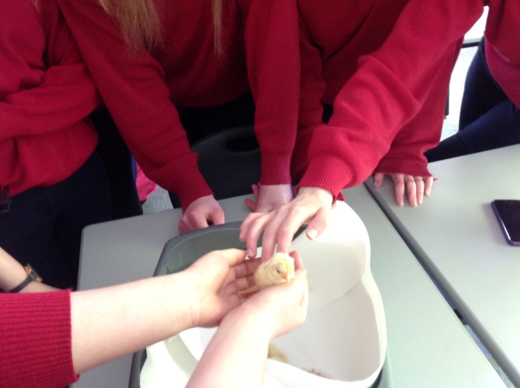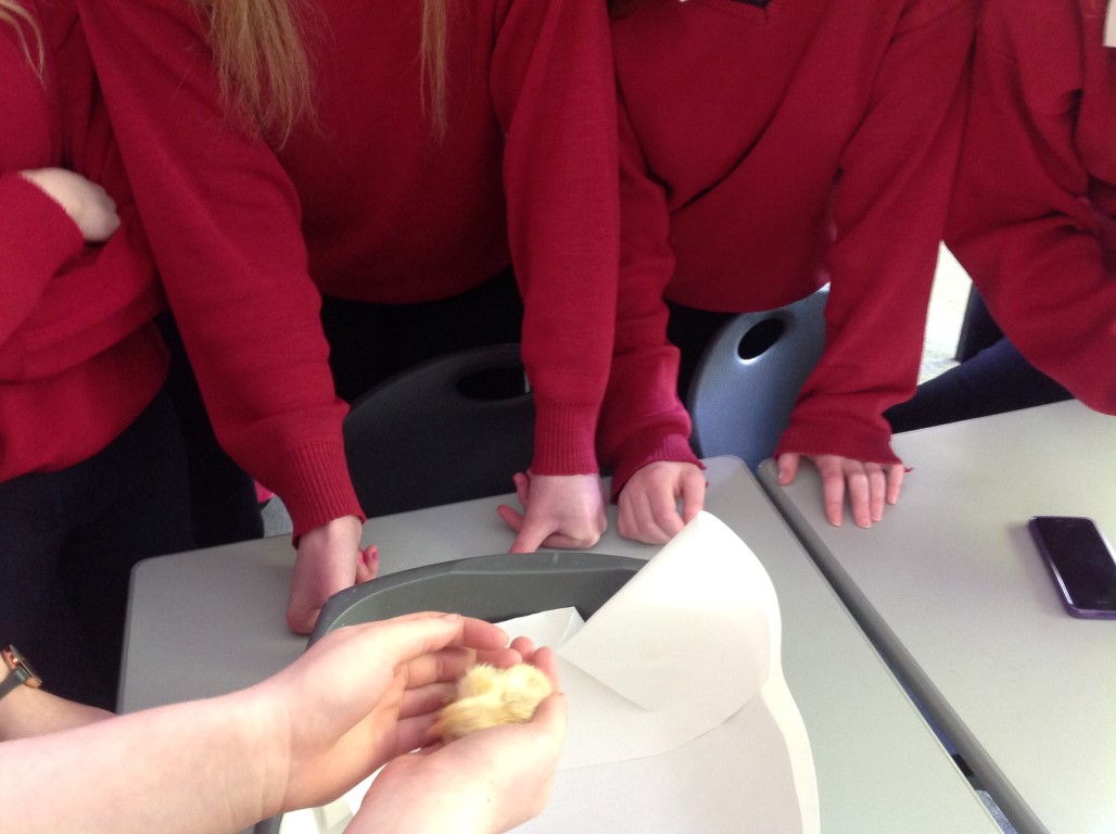 After waiting three weeks our chickens hatched out and were delighted to meet the students at Ballinamore Community School.