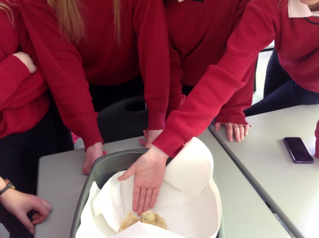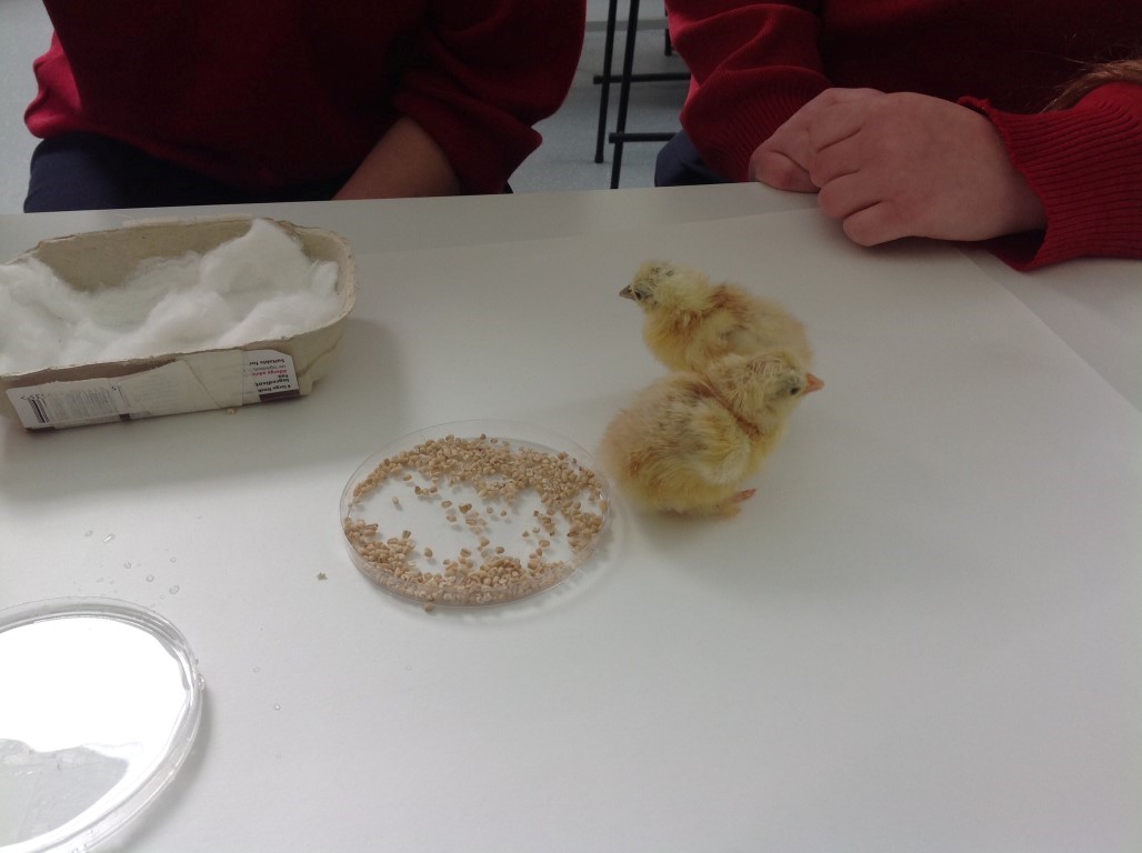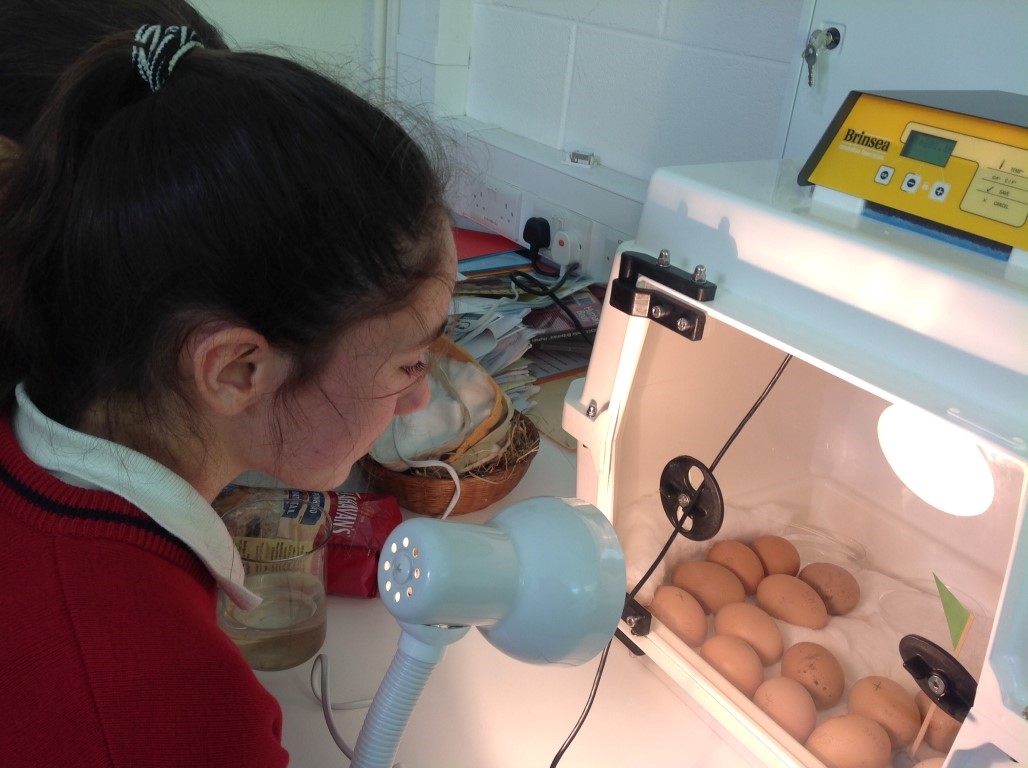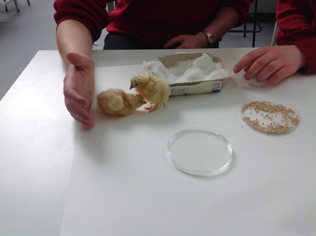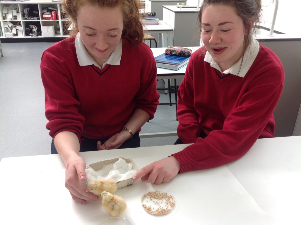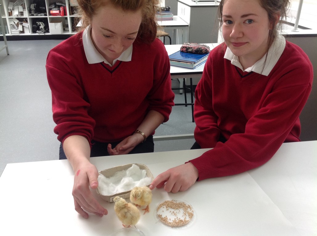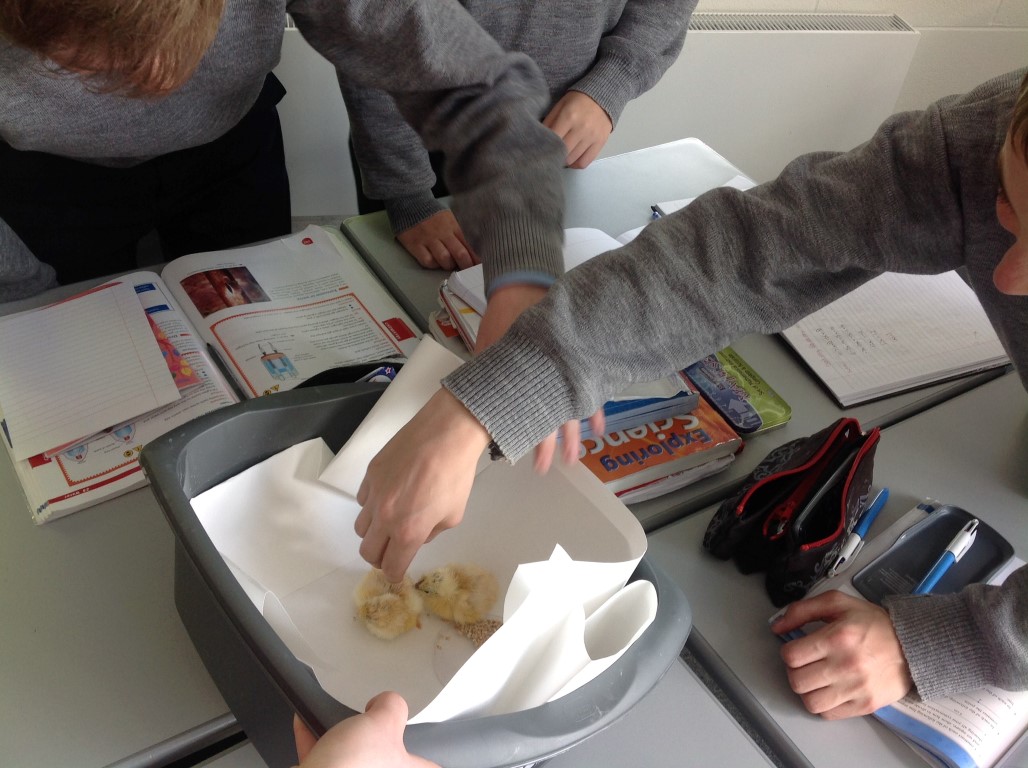 After waiting three weeks our chickens hatched out and were delighted to meet the students at Ballinamore Community School.