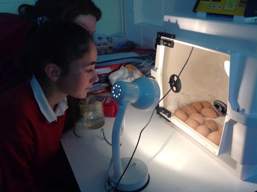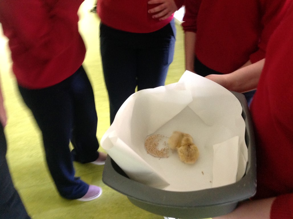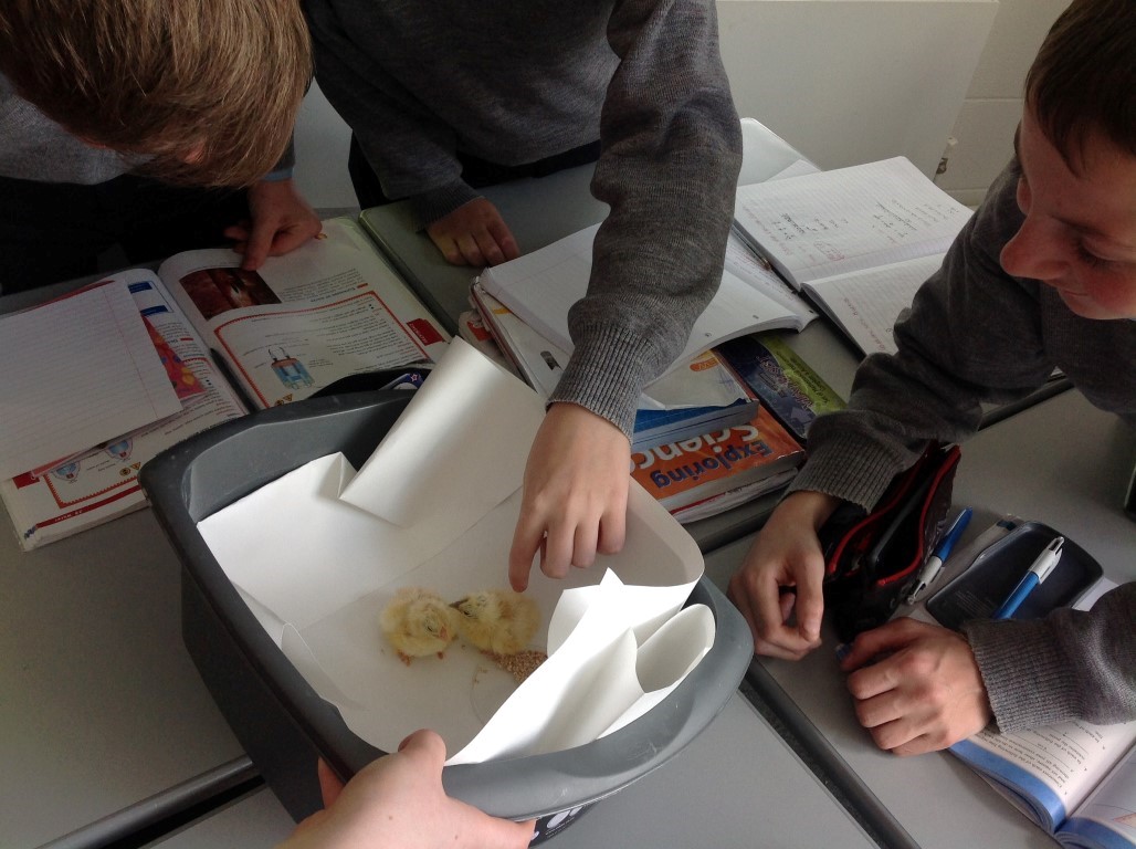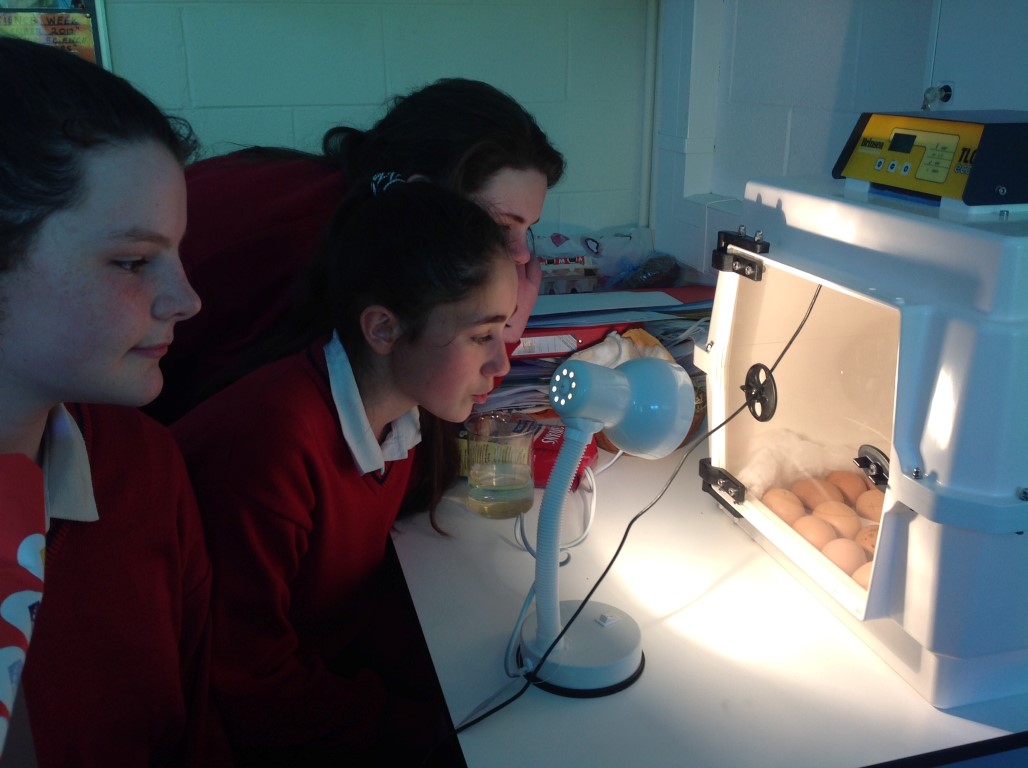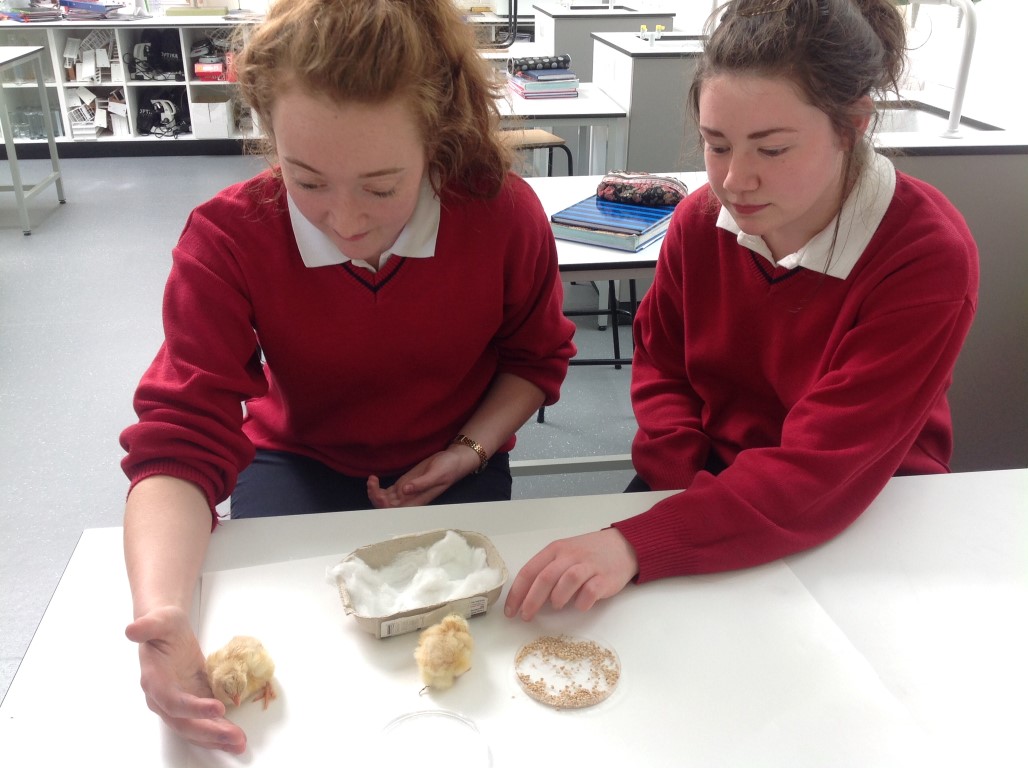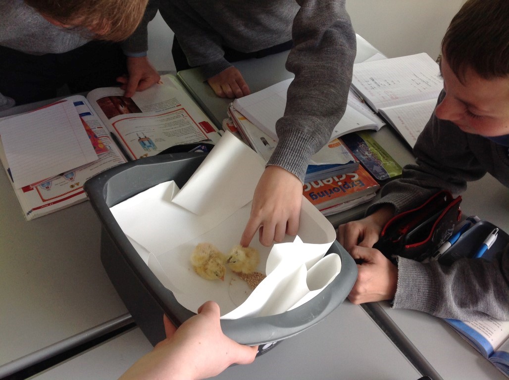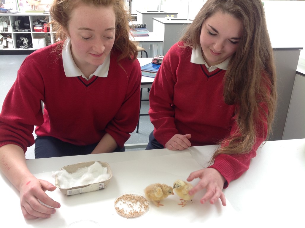After waiting three weeks our chickens hatched out and were delighted to meet the students at Ballinamore Community School.