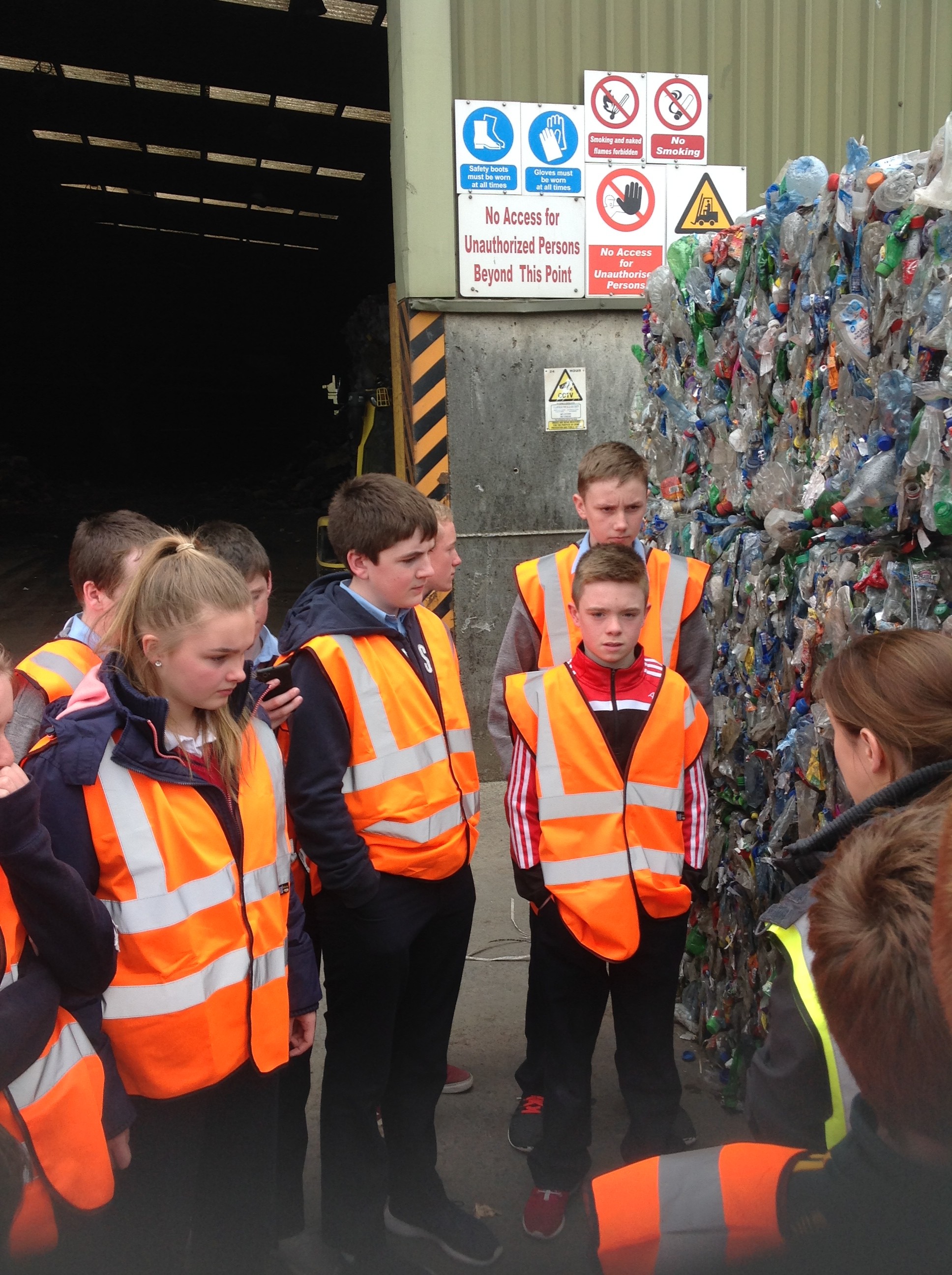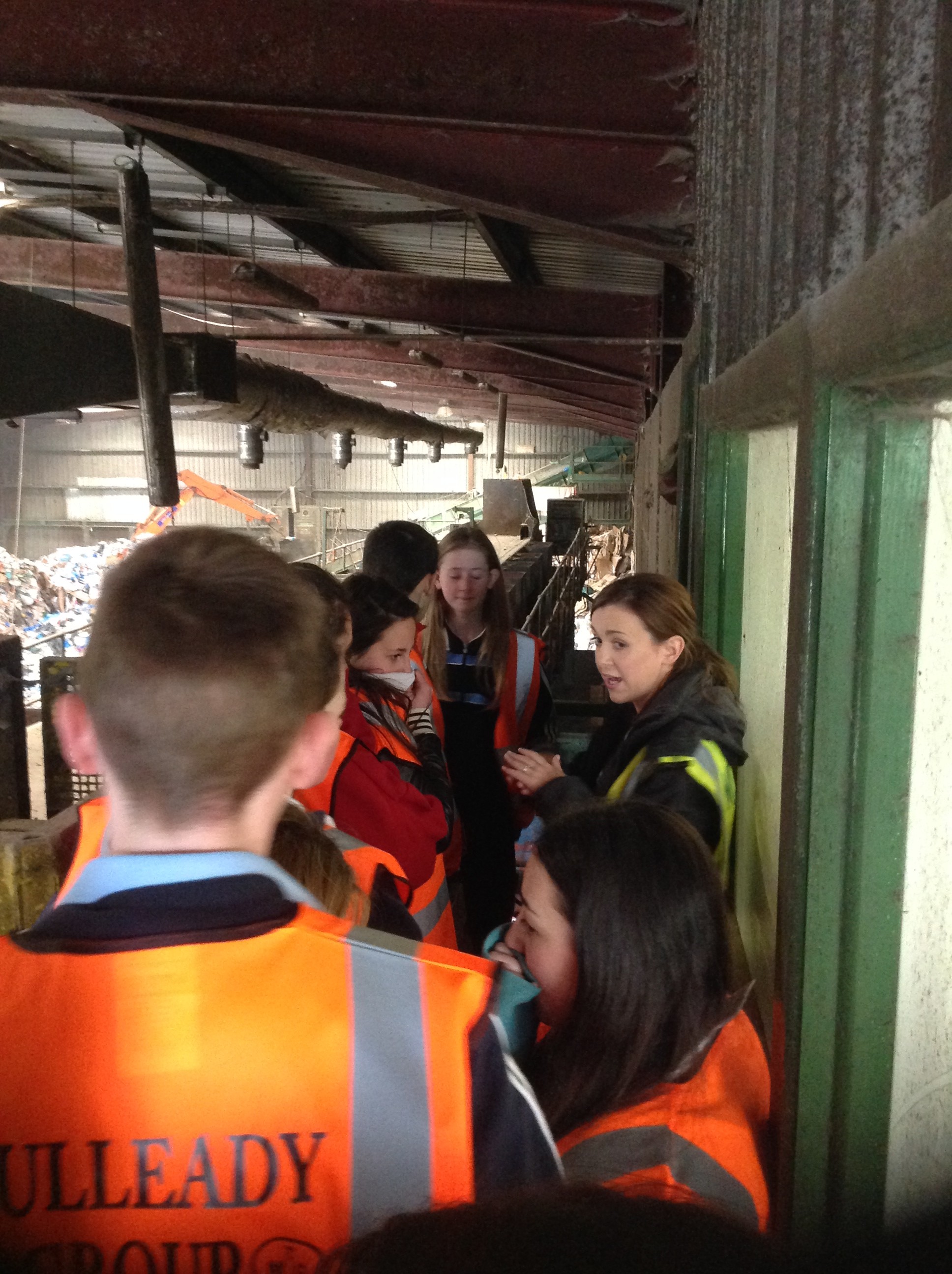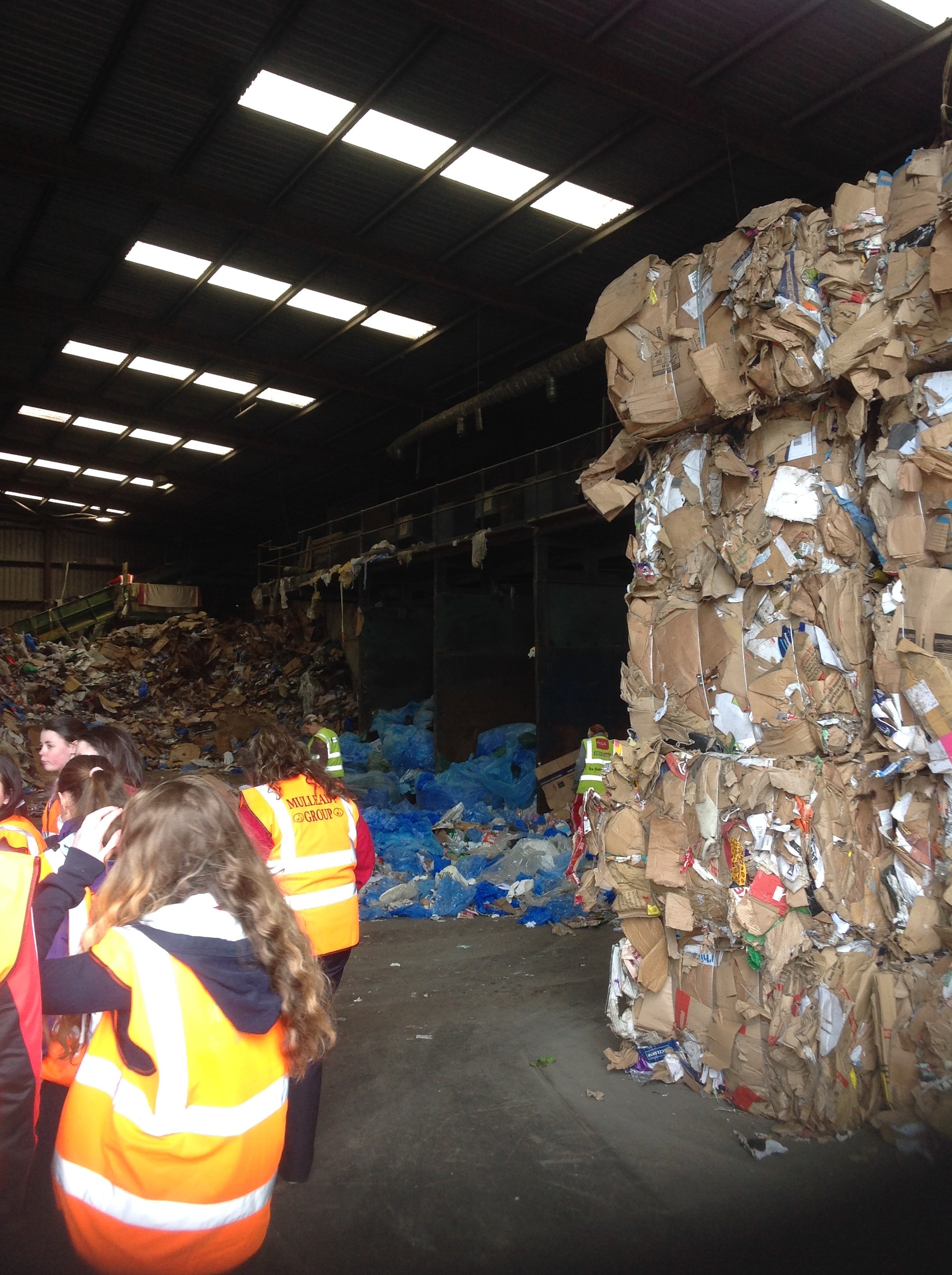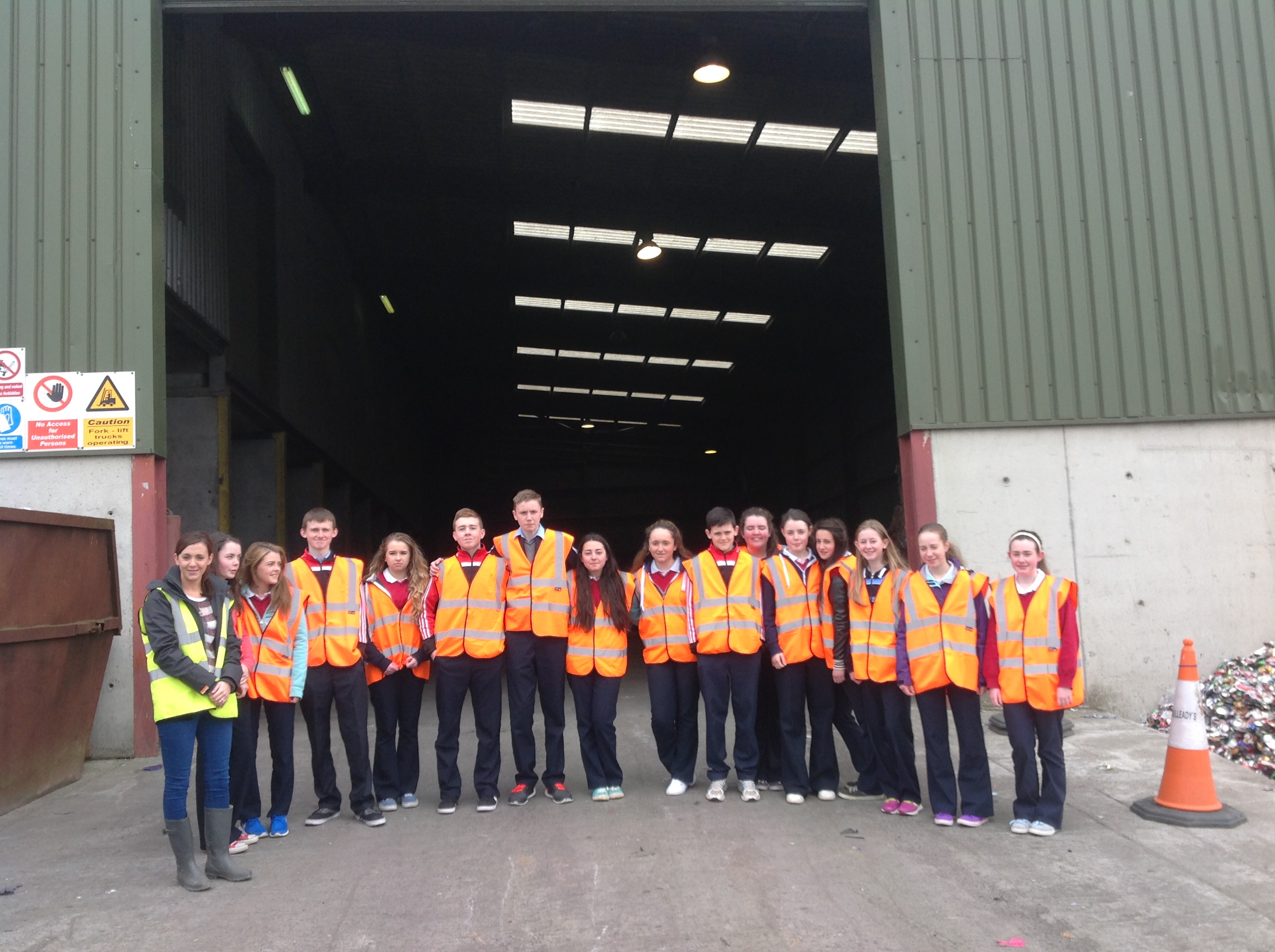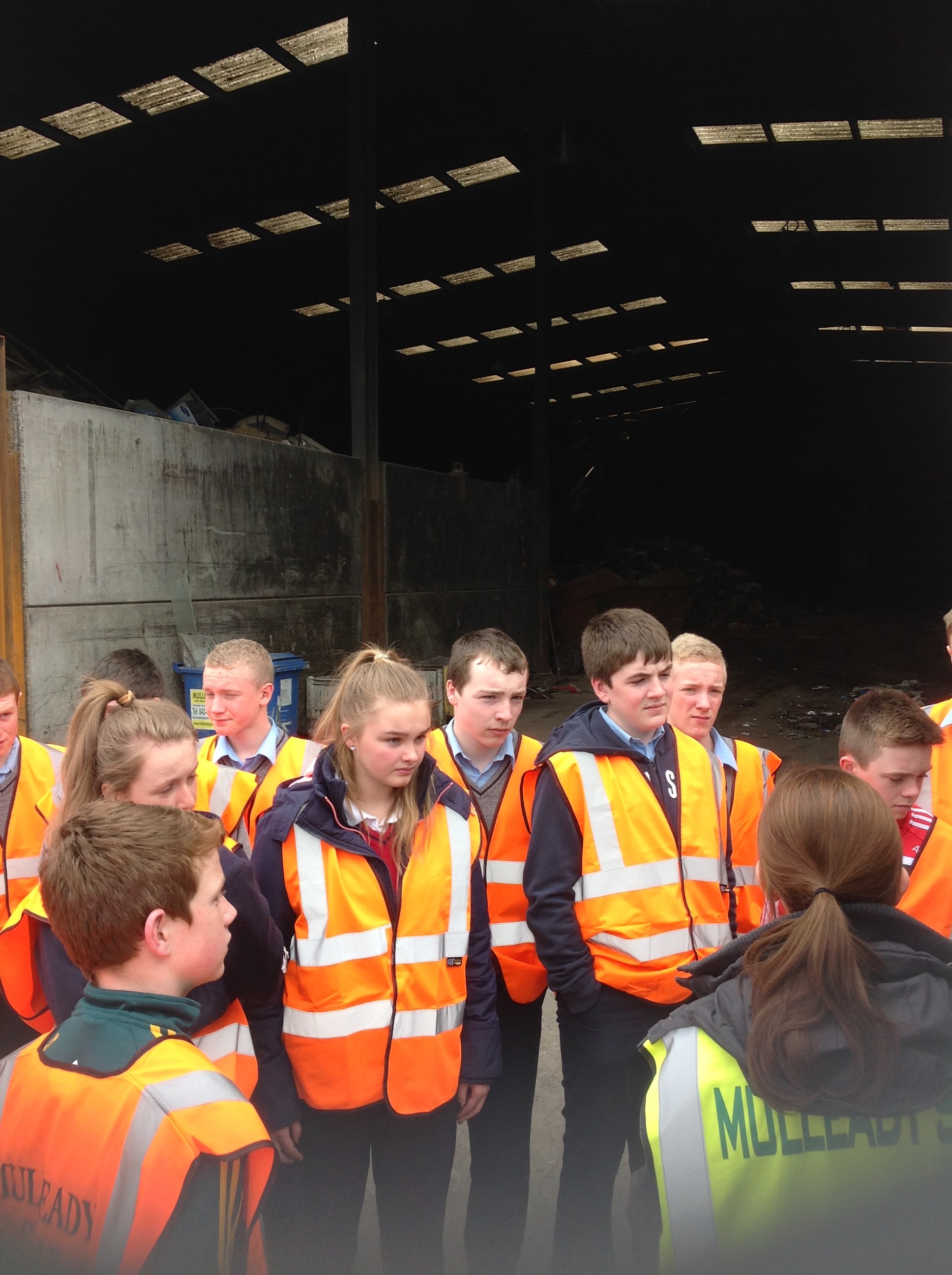 On Friday 8th May the 2nd year students visited Mulleady’s Waste Plant in Drumlish to learn more about what happens the waste in our wheely bins once it gets collected. Students were shown the various stages throughout the plant including the recycling picking line where waste gets separated by hand and then the various types of waste gets compacted ready to be reused or in the case of paper gets shipped abroad to be reused. Students gained a deeper insight into what happens the waste and will hopefully be more mindful of separating waste correctly now that they see the process that it must go through once it reaches the plant. It also encourages students to become more aware of food waste and its effects.