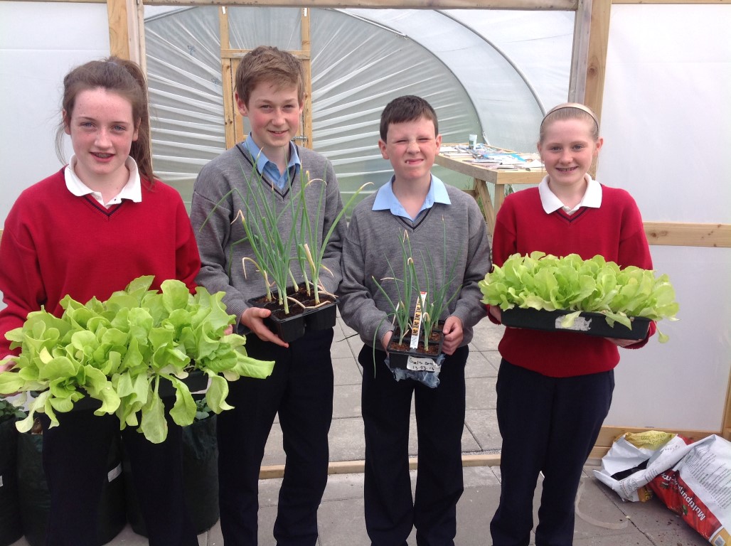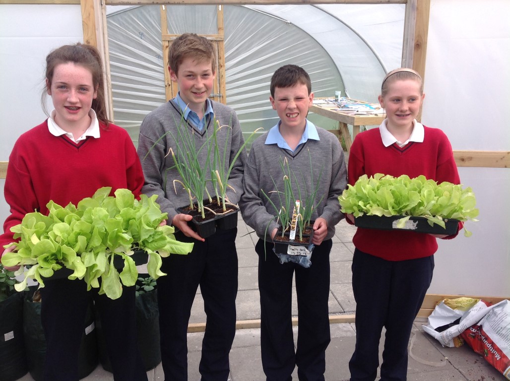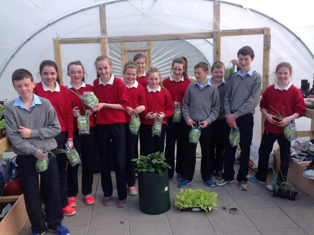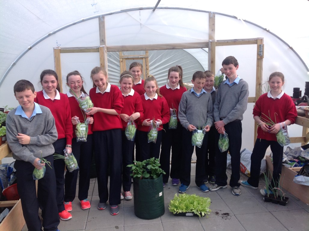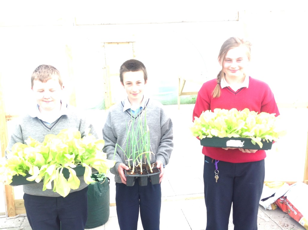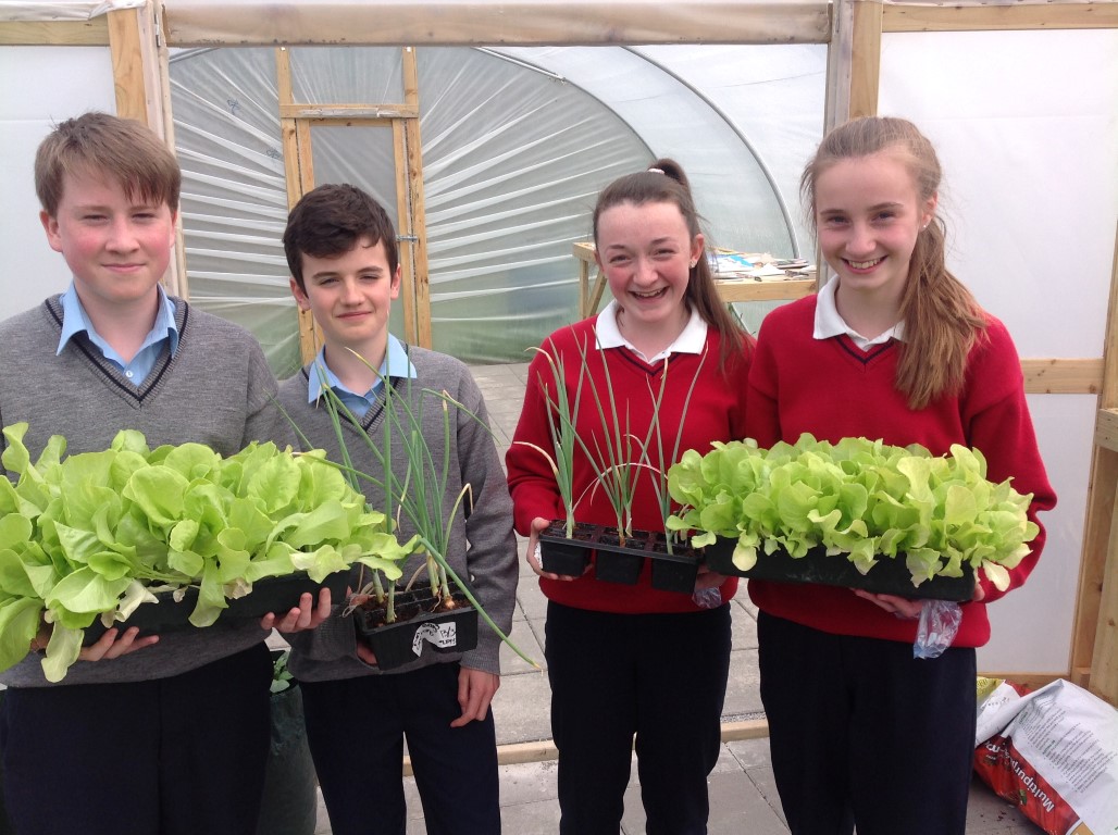 As part of healthy living week Ms. Colums first year science students who planted lettuce, onions and radishes in the polytunnel reaped the rewards as they were able to harvest their lettuce, onions and radishes and bring them home for tea.