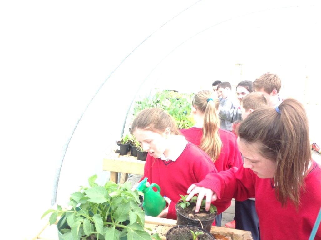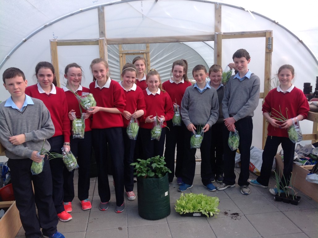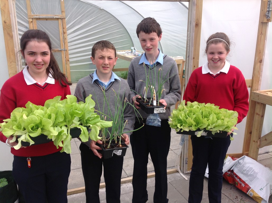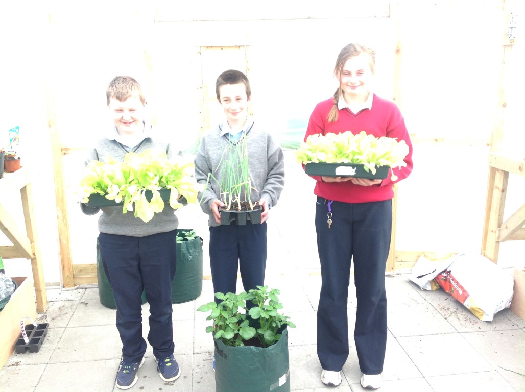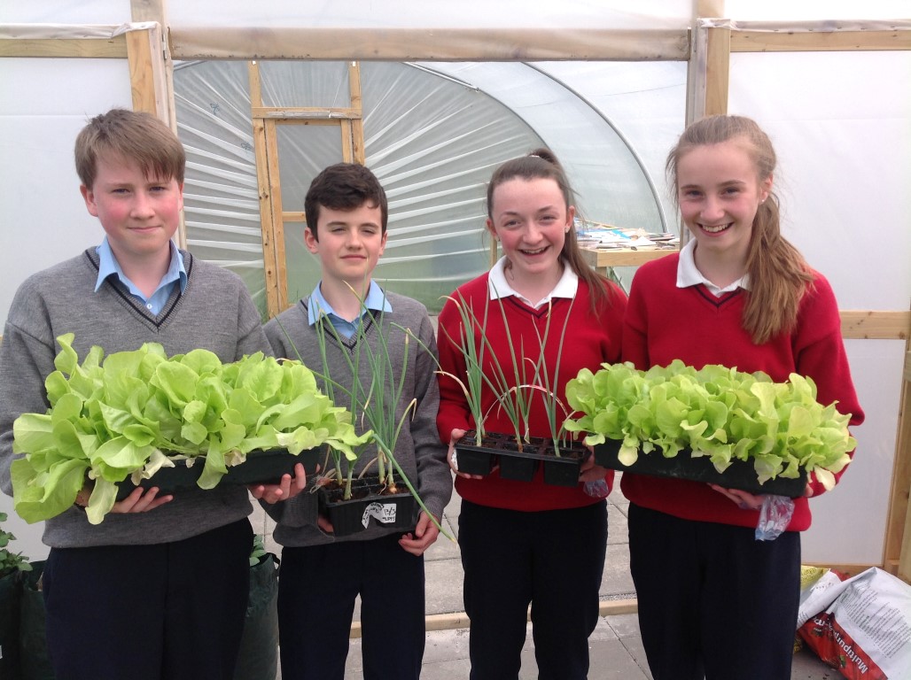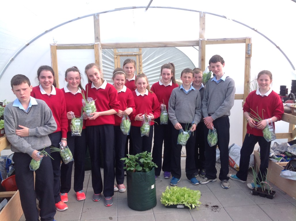 As part of healthy living week Ms. Colums first year science students who planted lettuce, onions and radishes in the polytunnel reaped the rewards as they were able to harvest their lettuce, onions and radishes and bring them home for tea.