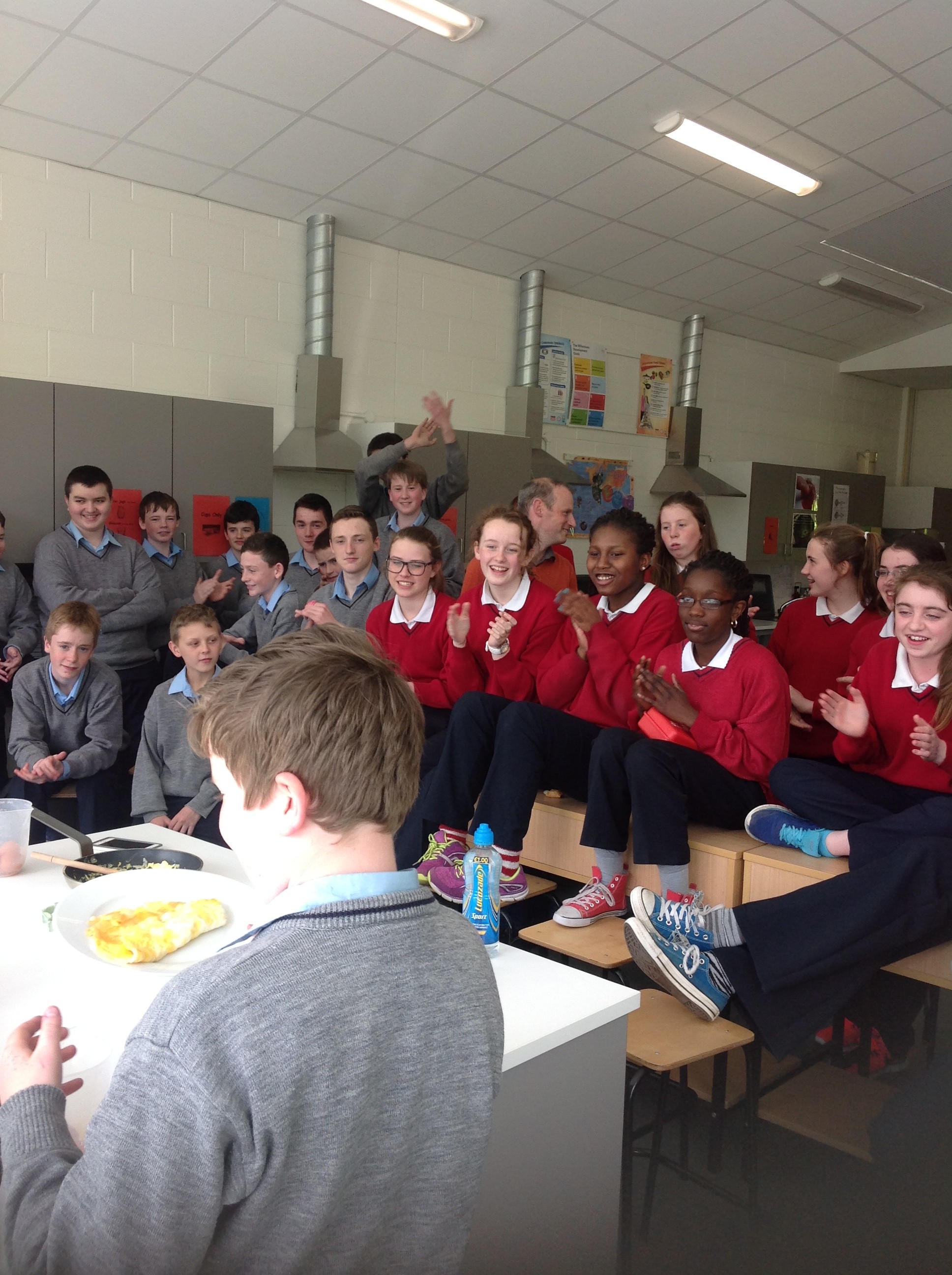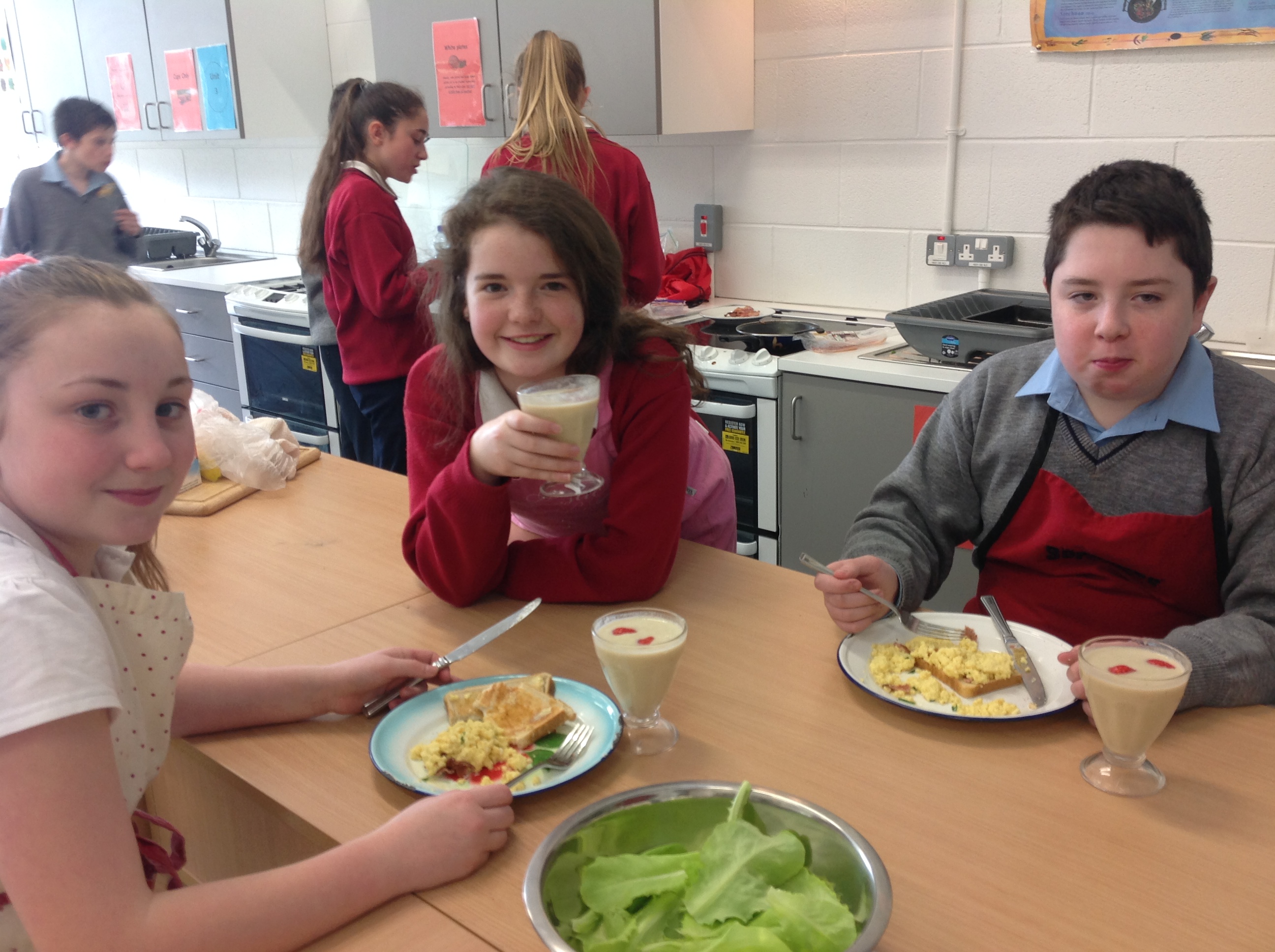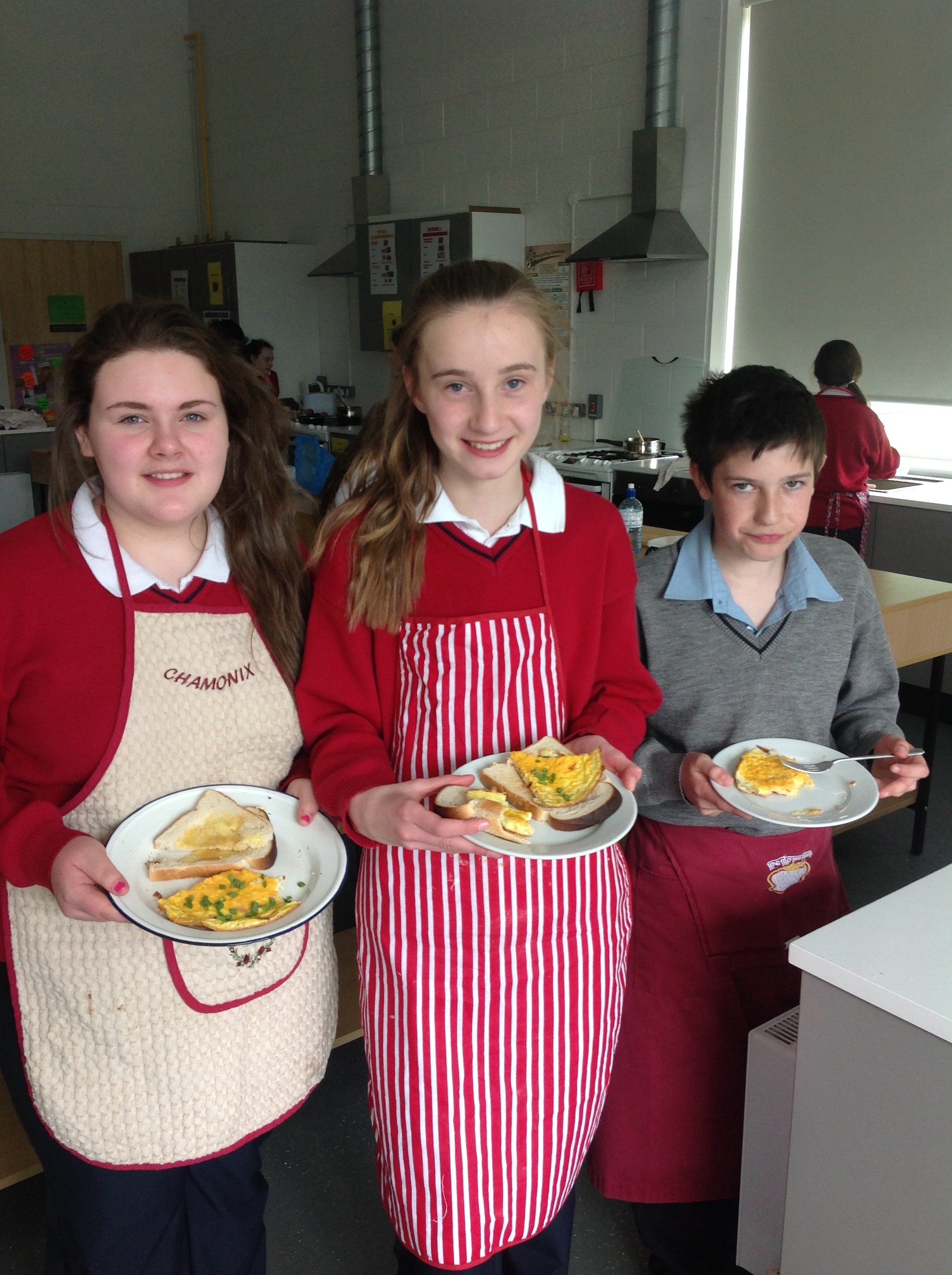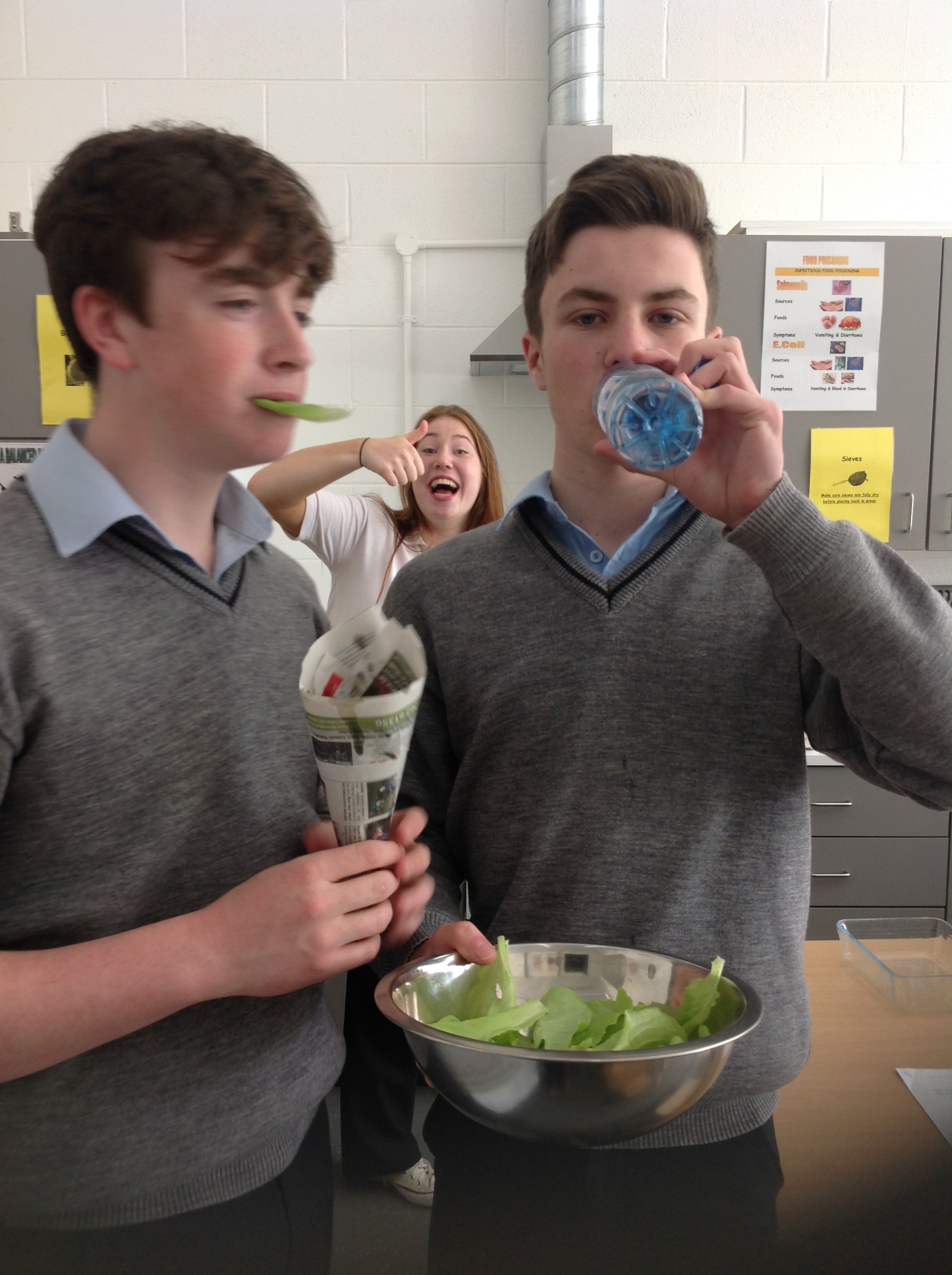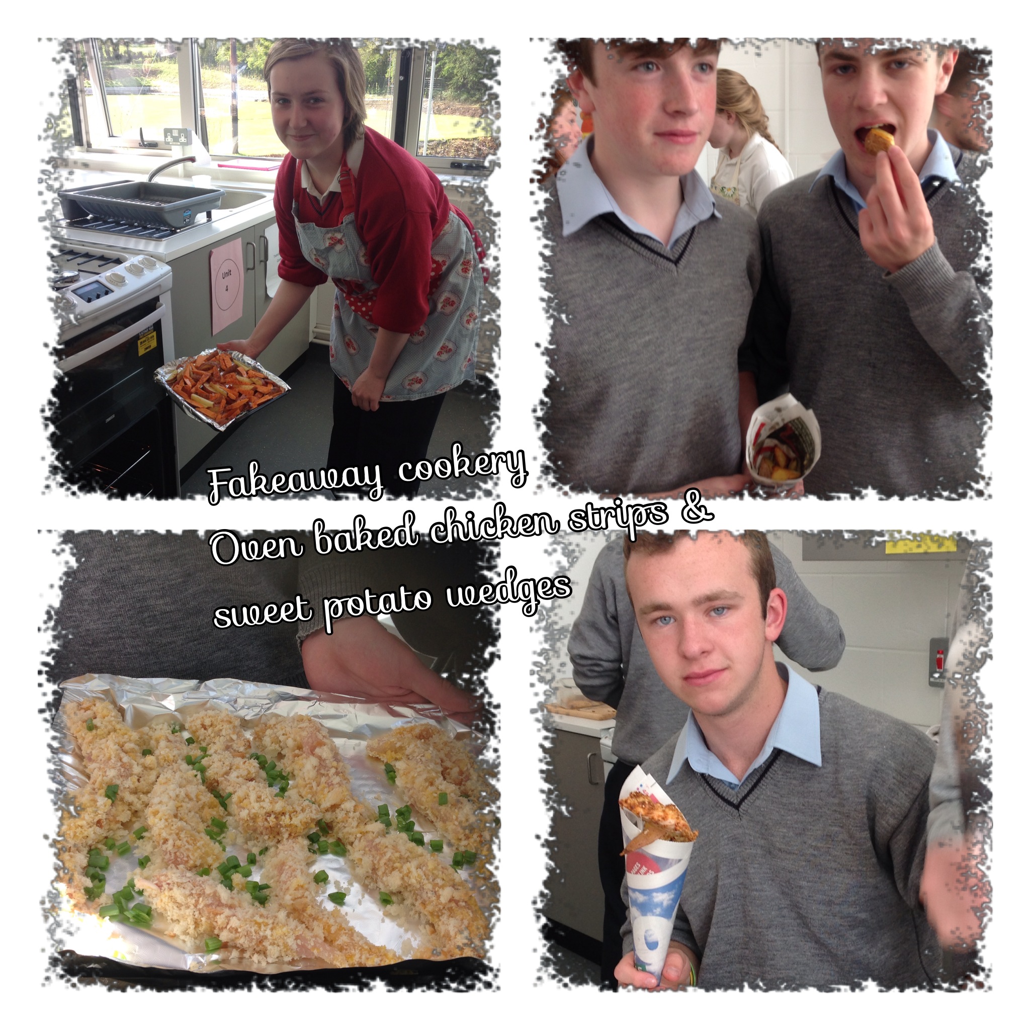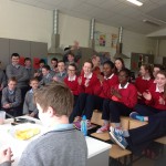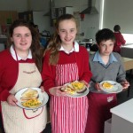 A variety of activities were held in school during Healthy Living Week this year. The aim of this themed week in school is to highlight the importance of subjects like Home Economics and PE in school and engage with the entire student and staff body with issues like nutrition, healthy food choices and physical activity. Bodywhys launched the weeks event with a workshop for students on the area of eating disorders, body perceptions and how to help someone with an eating disorder. Breakfast club held throughout the week included breakfast cookery classes. ‘Fakeaway’ cookery classes also took place where students cooked modified healthier versions of chicken strips and wedges. Cross Curricular links between subjects included produce grown by Ag Science students being used up in the Home Ec kitchen. The arrival of our new chicks in the Ag Science Department also linked in with the week. To encourage students food choices at lunch time a ‘healthy lunchbox’ competition was judged and prizes for the most balanced and nutritious lunch box contents were awarded. TY’s went on a visit to Knockvicar Organic Centre to learn more about food grown in polytunnels, food sustainability and got to use the wood fired stove outside and enjoyed healthy pizza’s cooked from it.