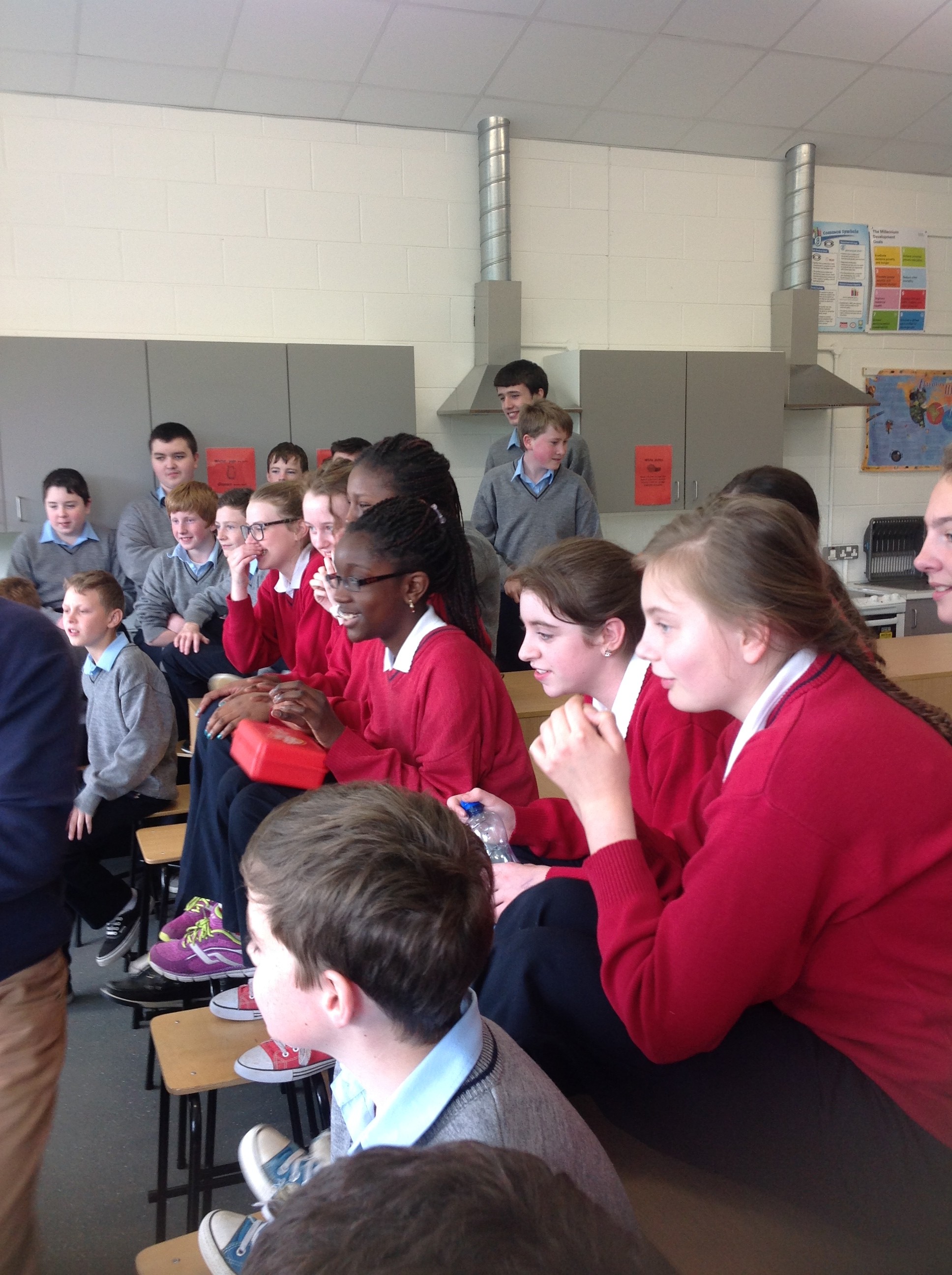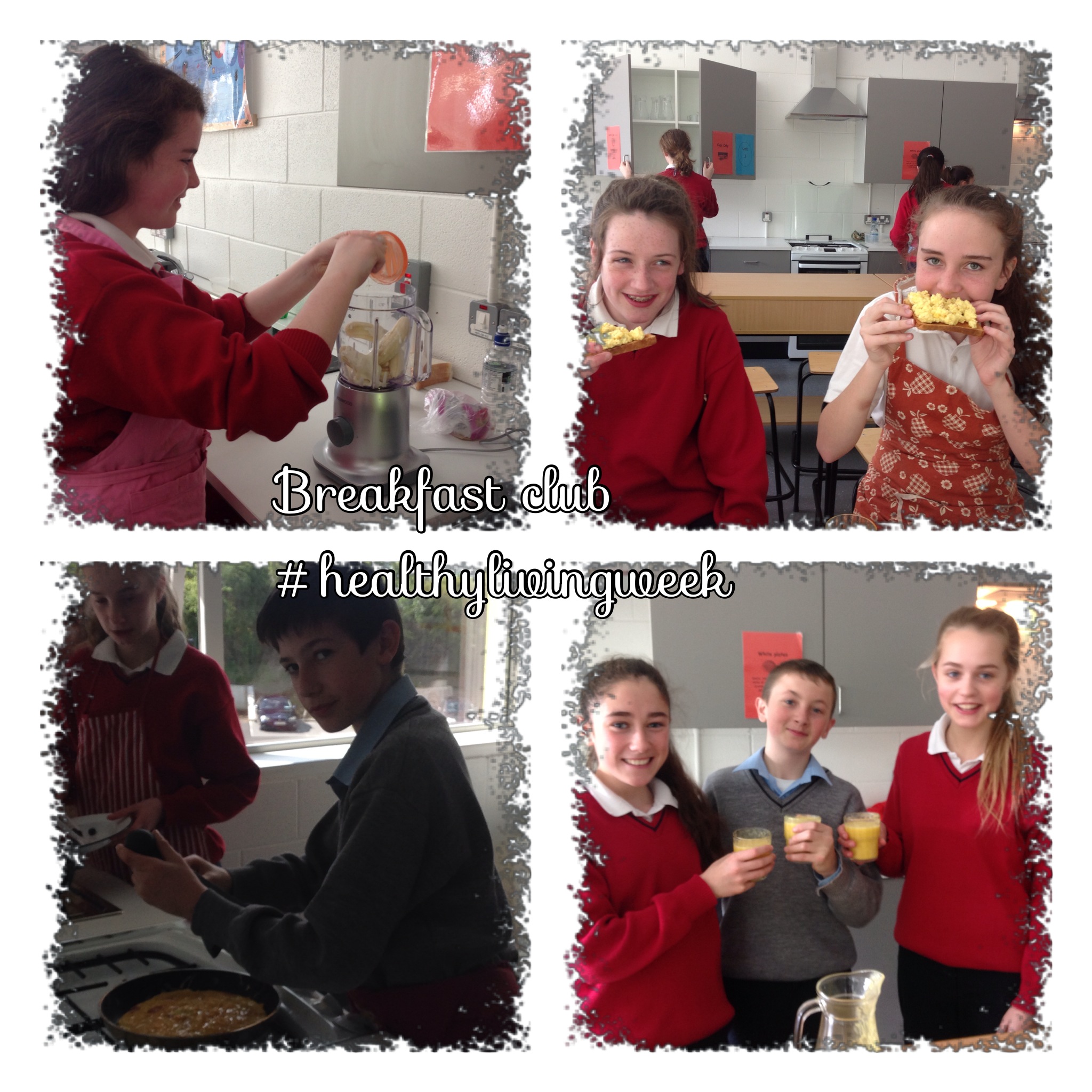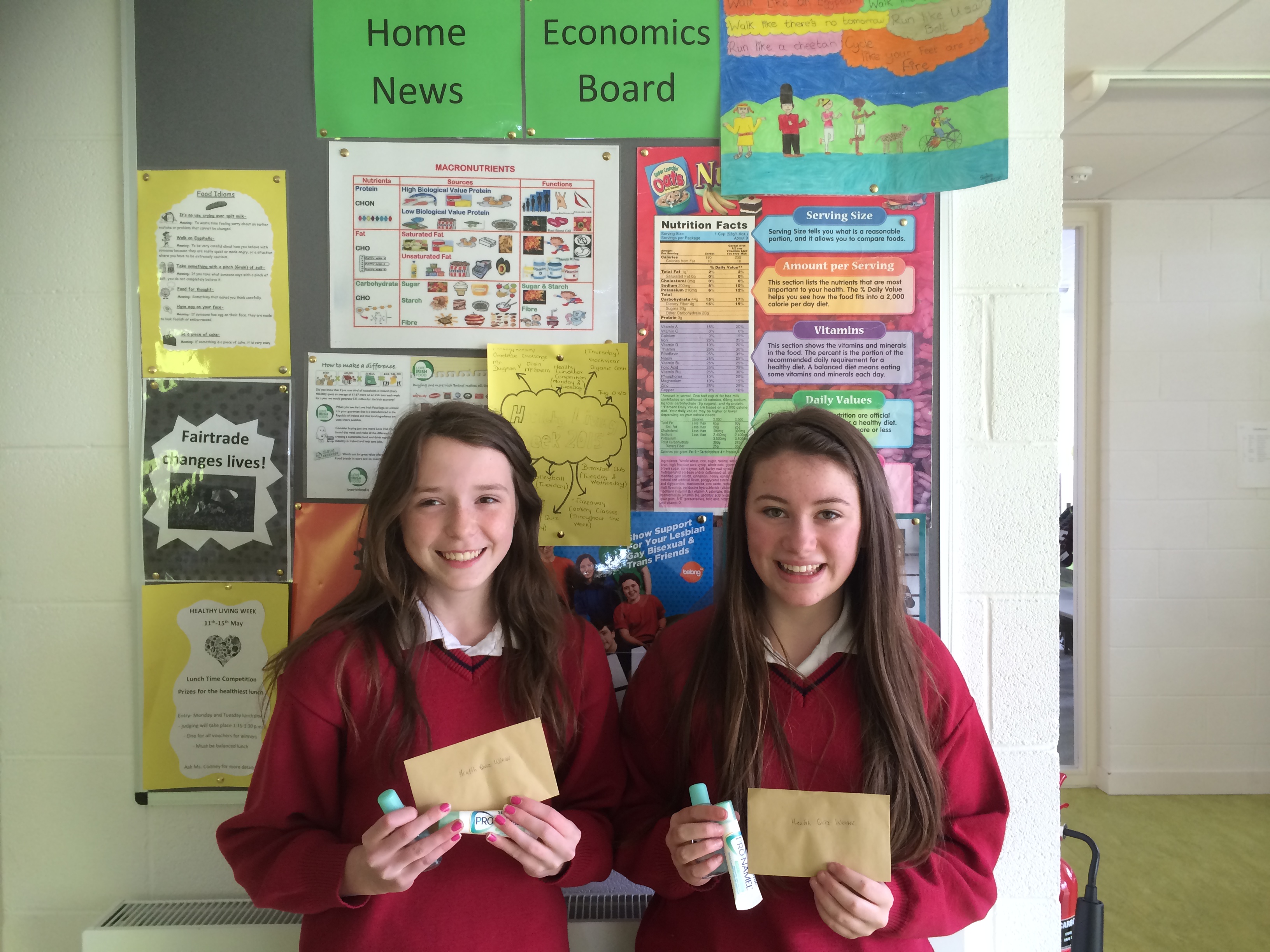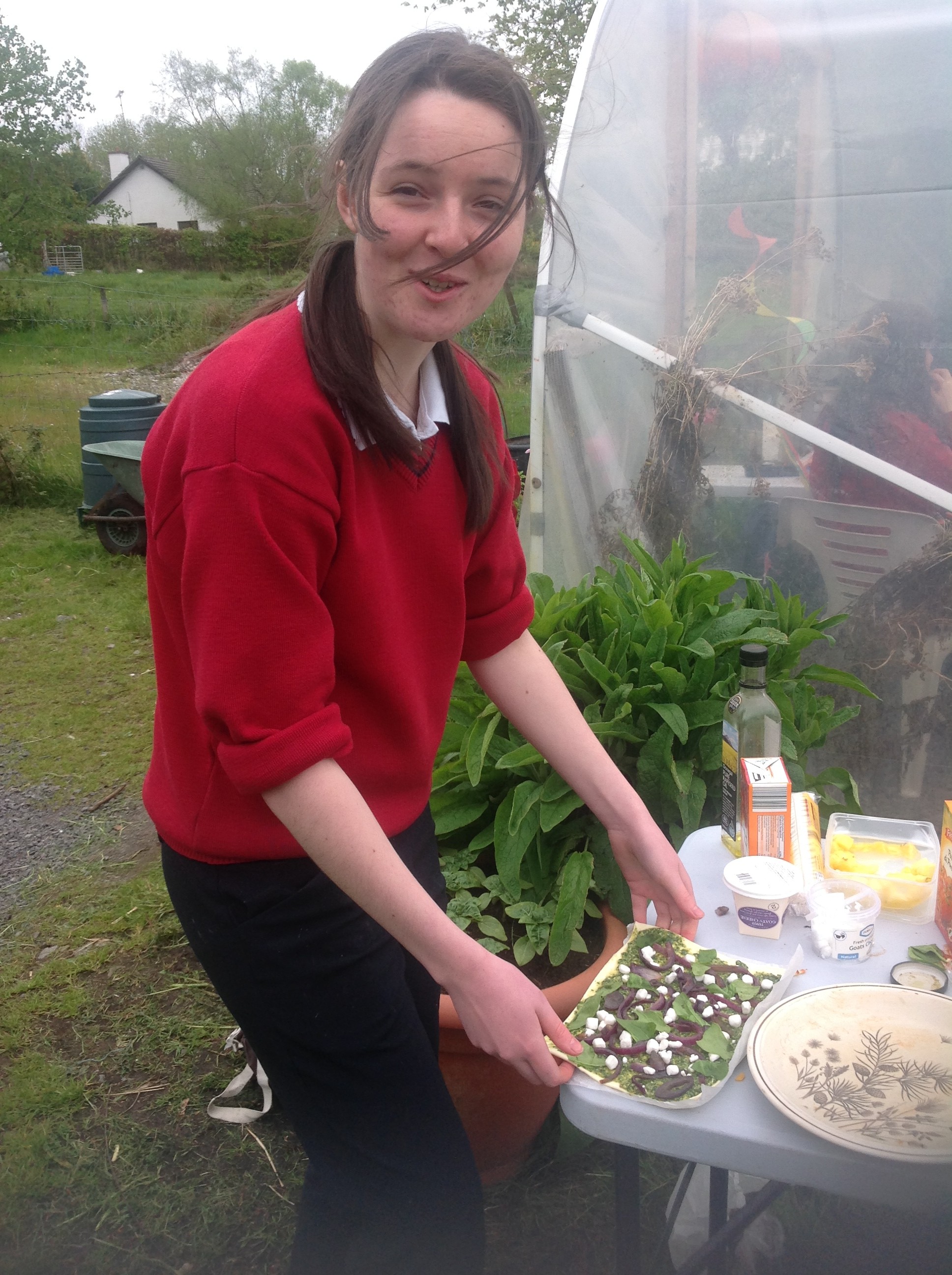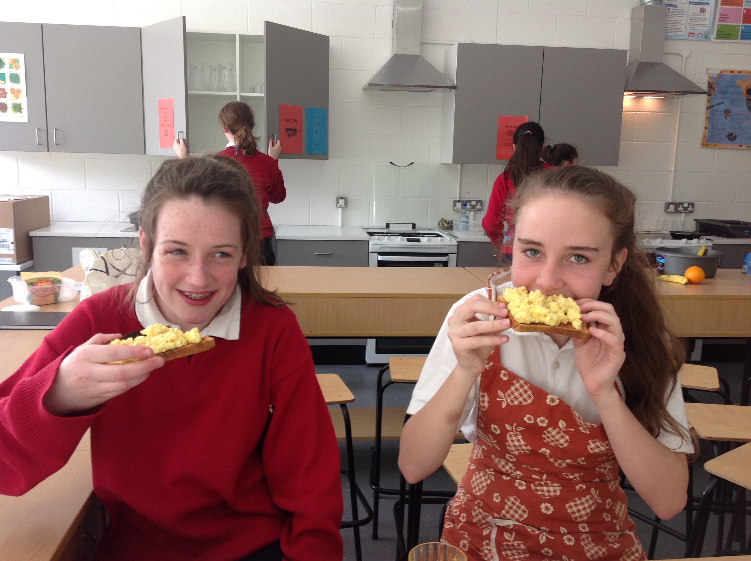 A variety of activities were held in school during Healthy Living Week this year. The aim of this themed week in school is to highlight the importance of subjects like Home Economics and PE in school and engage with the entire student and staff body with issues like nutrition, healthy food choices and physical activity. Bodywhys launched the weeks event with a workshop for students on the area of eating disorders, body perceptions and how to help someone with an eating disorder. Breakfast club held throughout the week included breakfast cookery classes. ‘Fakeaway’ cookery classes also took place where students cooked modified healthier versions of chicken strips and wedges. Cross Curricular links between subjects included produce grown by Ag Science students being used up in the Home Ec kitchen. The arrival of our new chicks in the Ag Science Department also linked in with the week. To encourage students food choices at lunch time a ‘healthy lunchbox’ competition was judged and prizes for the most balanced and nutritious lunch box contents were awarded. TY’s went on a visit to Knockvicar Organic Centre to learn more about food grown in polytunnels, food sustainability and got to use the wood fired stove outside and enjoyed healthy pizza’s cooked from it.