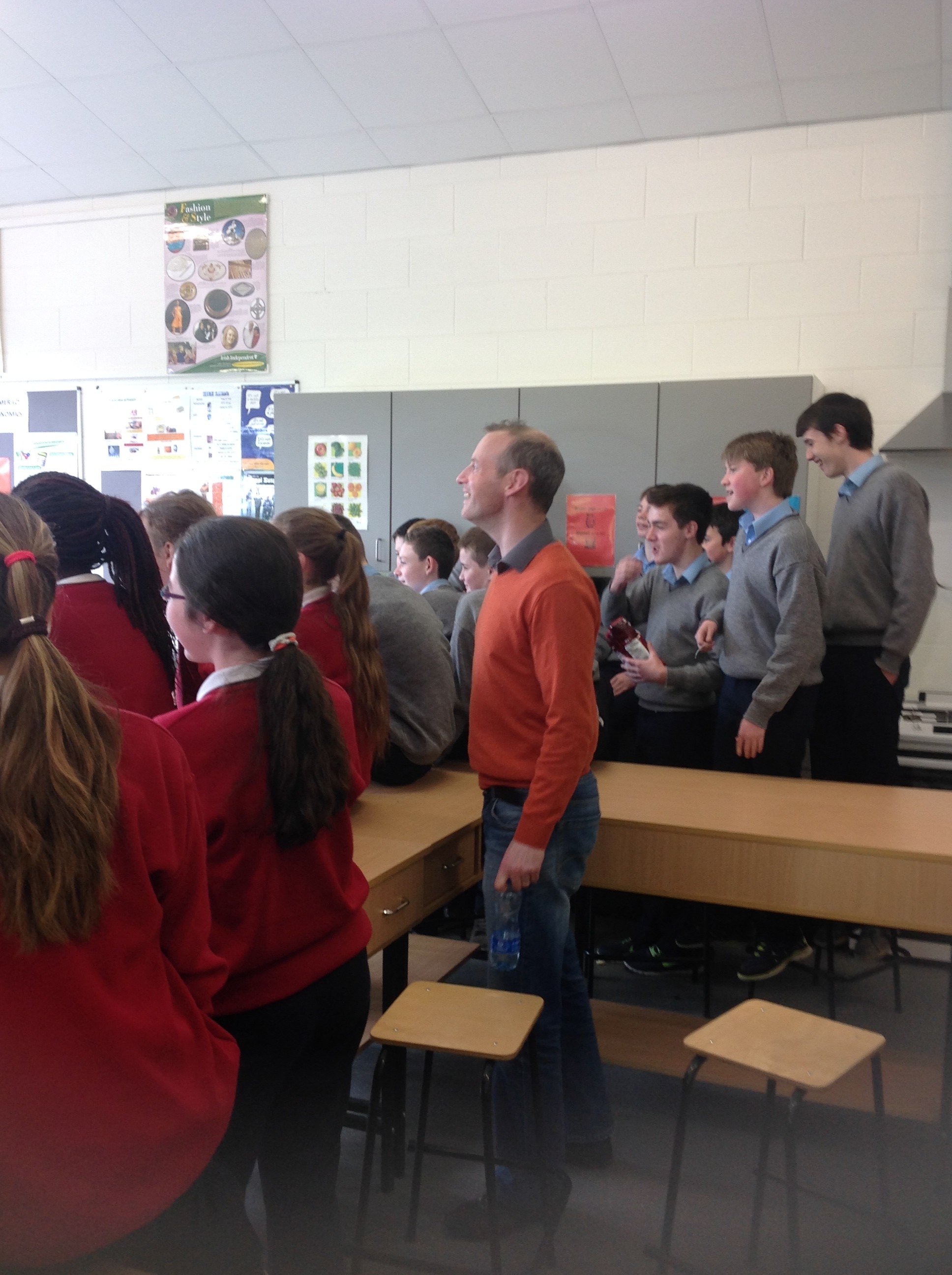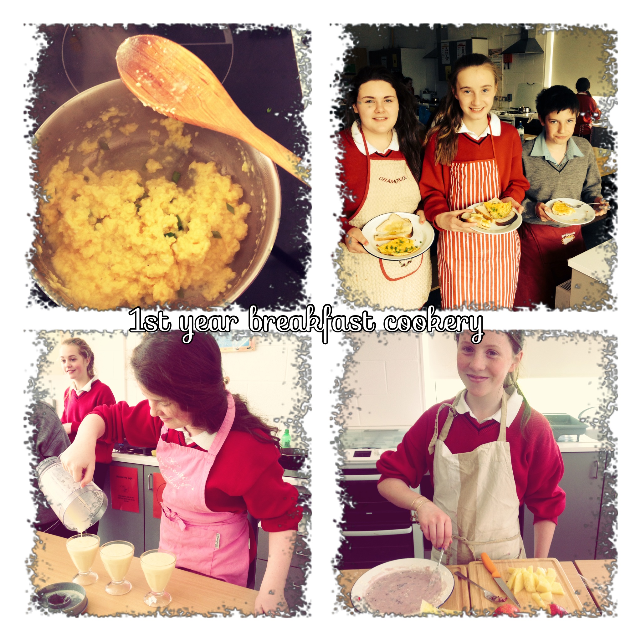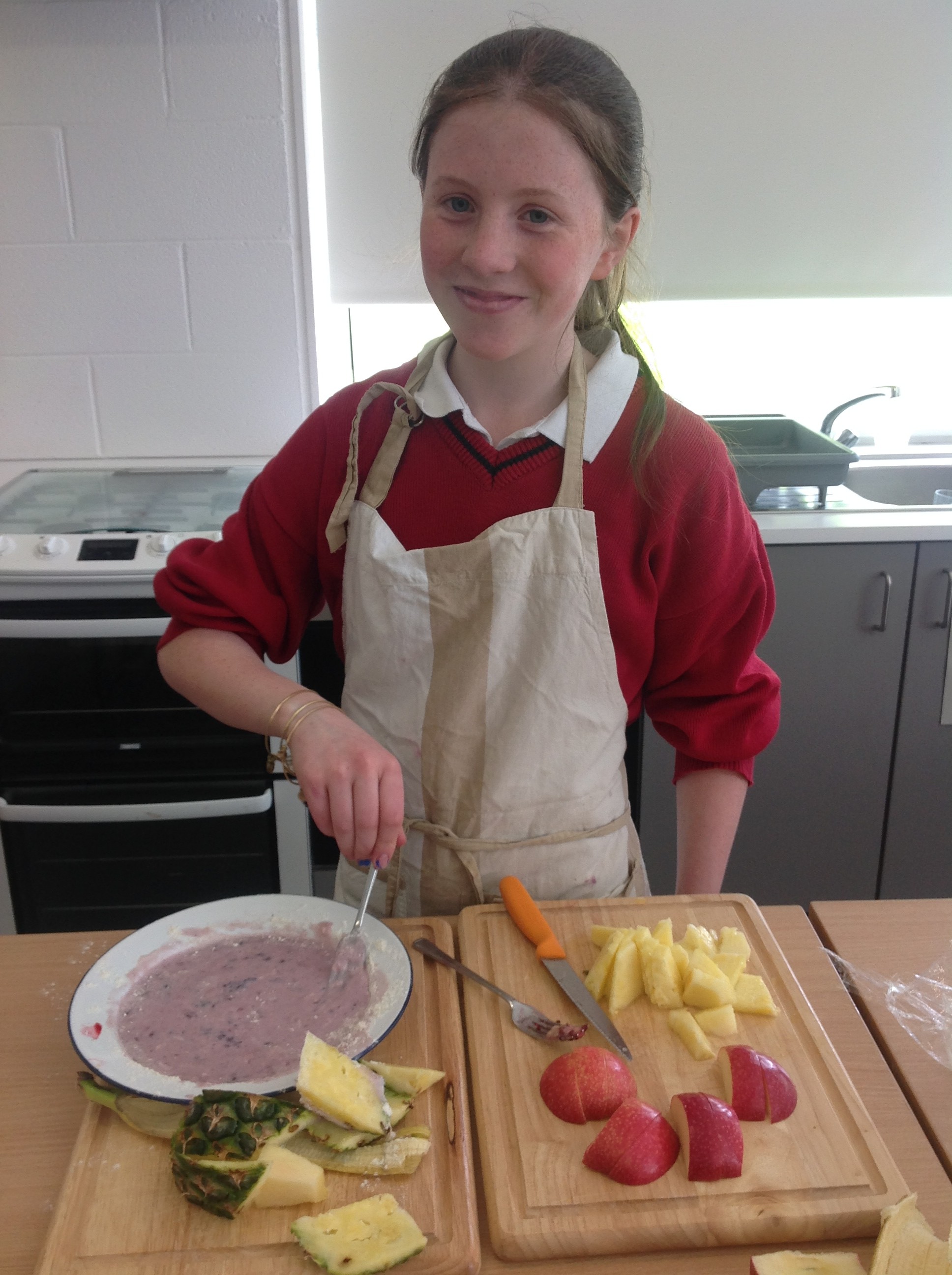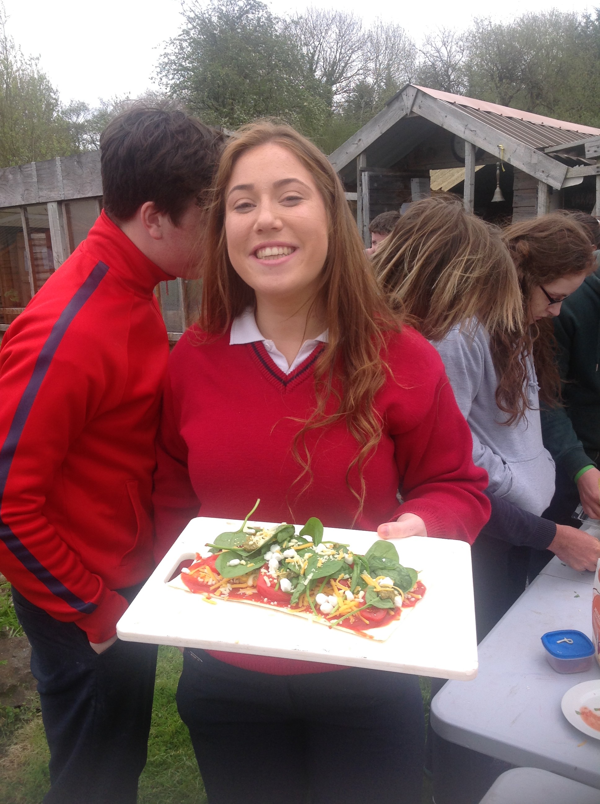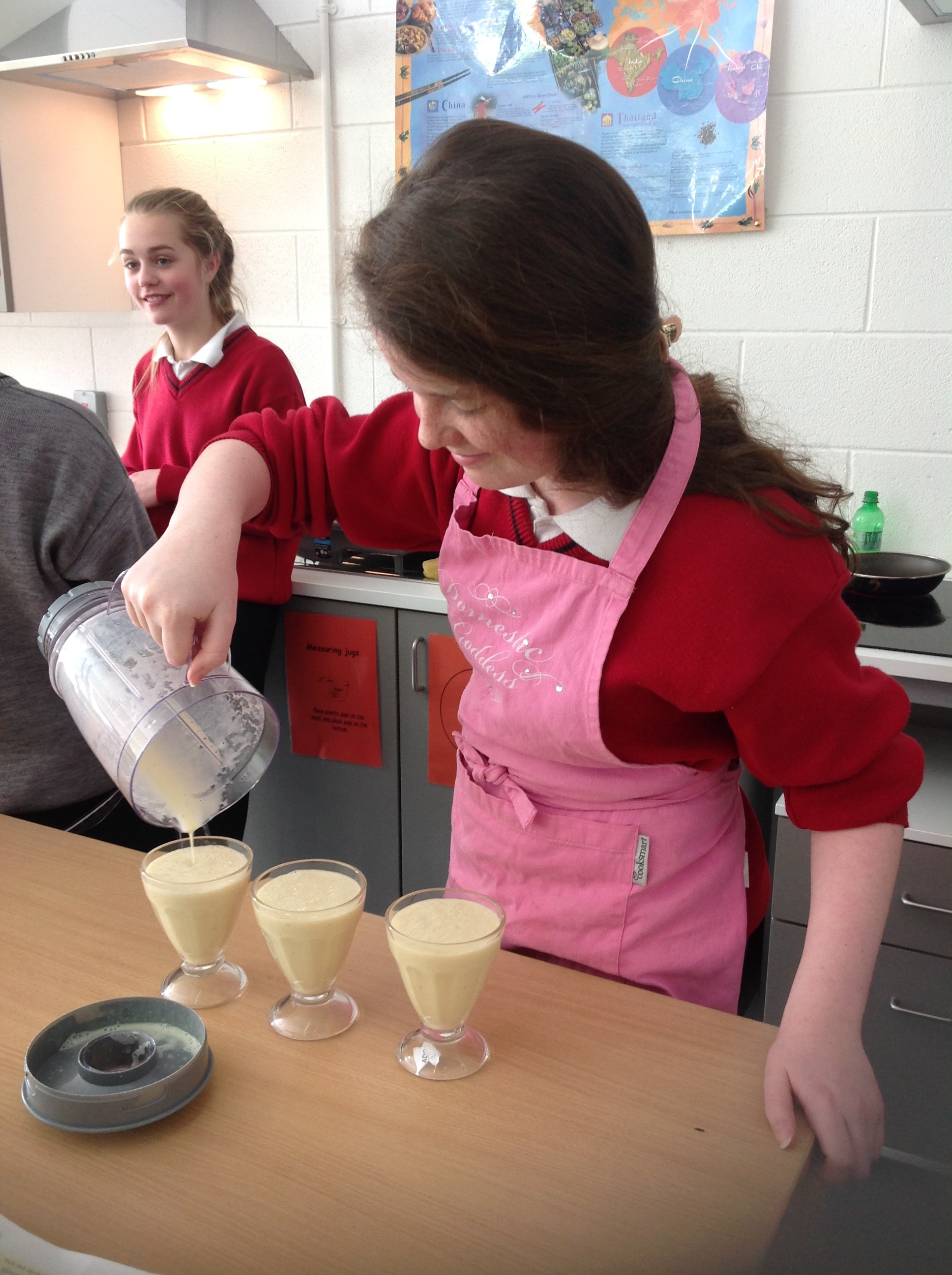A variety of activities were held in school during Healthy Living Week this year. The aim of this themed week in school is to highlight the importance of subjects like Home Economics and PE in school and engage with the entire student and staff body with issues like nutrition, healthy food choices and physical activity. Bodywhys launched the weeks event with a workshop for students on the area of eating disorders, body perceptions and how to help someone with an eating disorder. Breakfast club held throughout the week included breakfast cookery classes. ‘Fakeaway’ cookery classes also took place where students cooked modified healthier versions of chicken strips and wedges. Cross Curricular links between subjects included produce grown by Ag Science students being used up in the Home Ec kitchen. The arrival of our new chicks in the Ag Science Department also linked in with the week. To encourage students food choices at lunch time a ‘healthy lunchbox’ competition was judged and prizes for the most balanced and nutritious lunch box contents were awarded. TY’s went on a visit to Knockvicar Organic Centre to learn more about food grown in polytunnels, food sustainability and got to use the wood fired stove outside and enjoyed healthy pizza’s cooked from it.