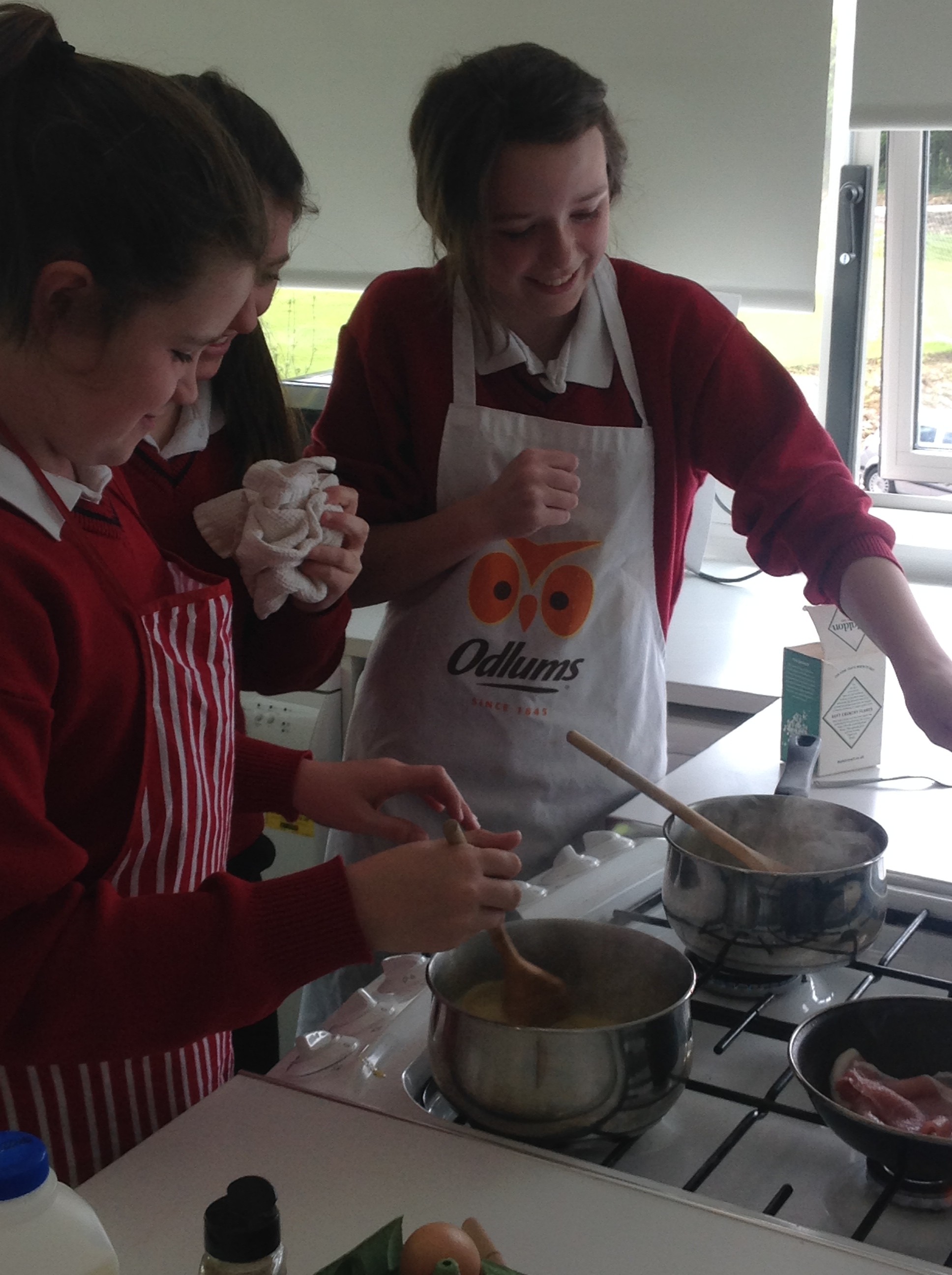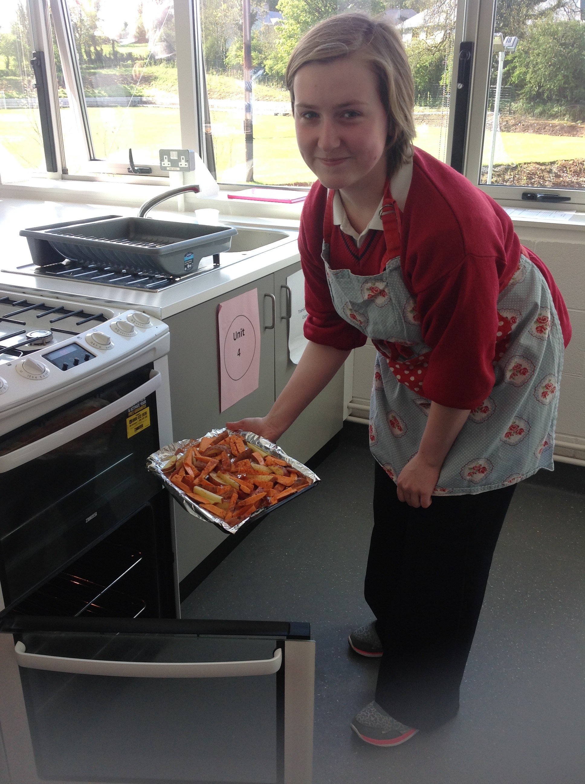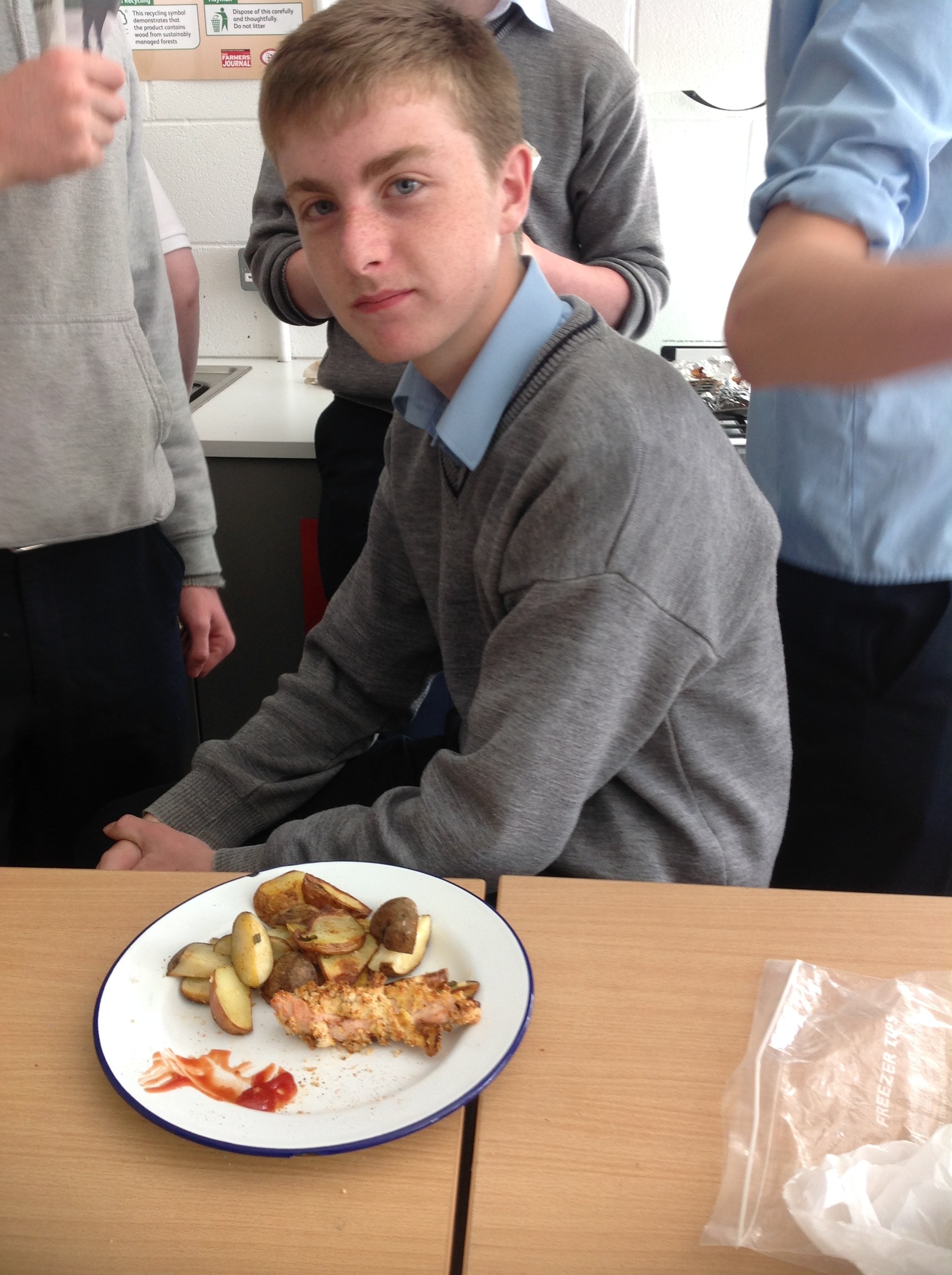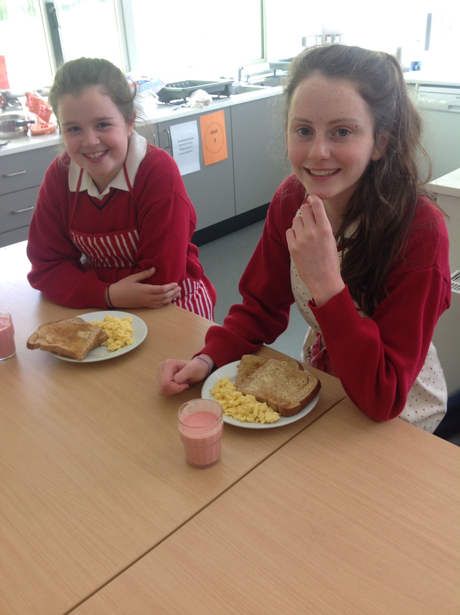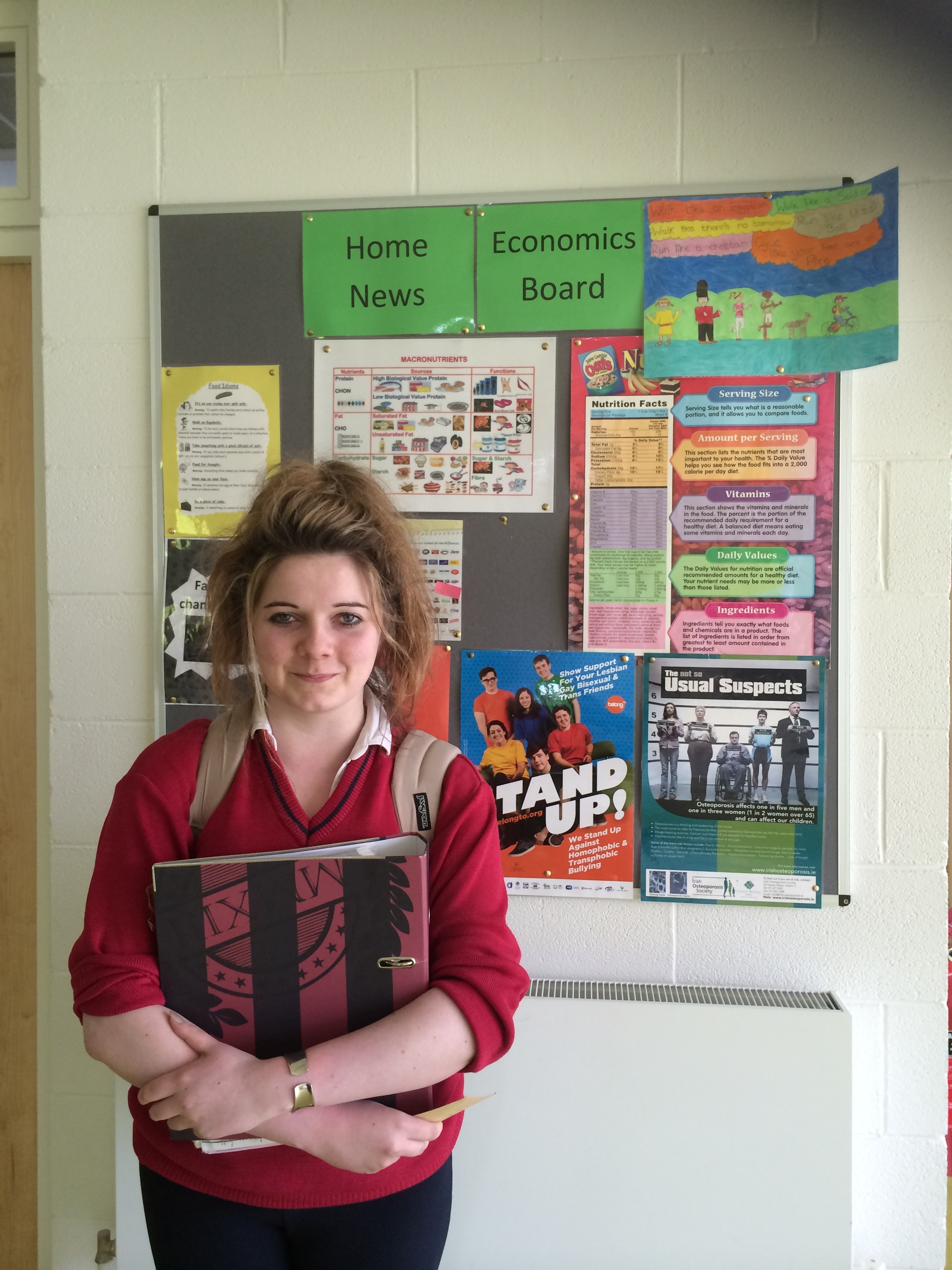 A variety of activities were held in school during Healthy Living Week this year. The aim of this themed week in school is to highlight the importance of subjects like Home Economics and PE in school and engage with the entire student and staff body with issues like nutrition, healthy food choices and physical activity. Bodywhys launched the weeks event with a workshop for students on the area of eating disorders, body perceptions and how to help someone with an eating disorder. Breakfast club held throughout the week included breakfast cookery classes. ‘Fakeaway’ cookery classes also took place where students cooked modified healthier versions of chicken strips and wedges. Cross Curricular links between subjects included produce grown by Ag Science students being used up in the Home Ec kitchen. The arrival of our new chicks in the Ag Science Department also linked in with the week. To encourage students food choices at lunch time a ‘healthy lunchbox’ competition was judged and prizes for the most balanced and nutritious lunch box contents were awarded. TY’s went on a visit to Knockvicar Organic Centre to learn more about food grown in polytunnels, food sustainability and got to use the wood fired stove outside and enjoyed healthy pizza’s cooked from it.