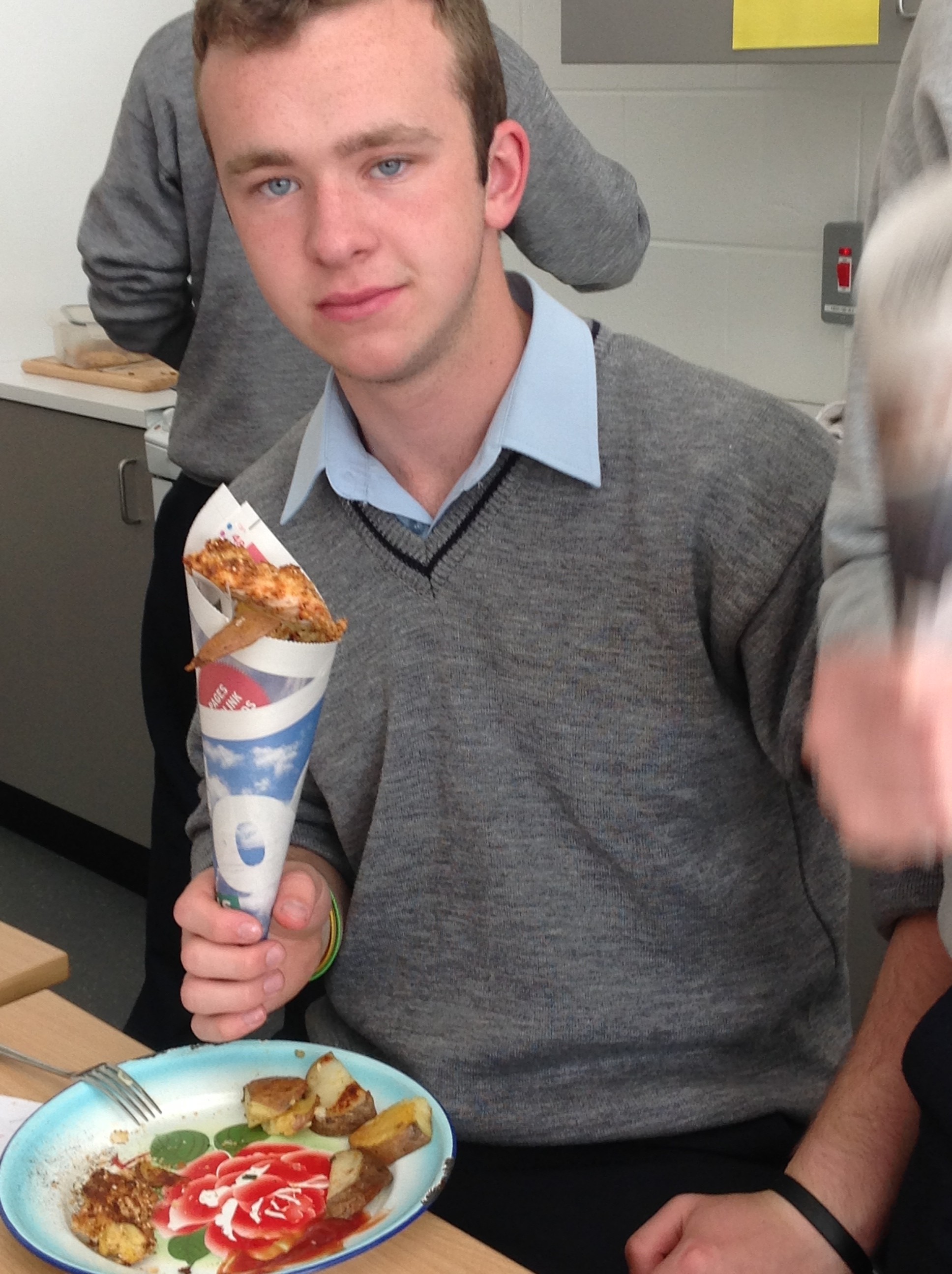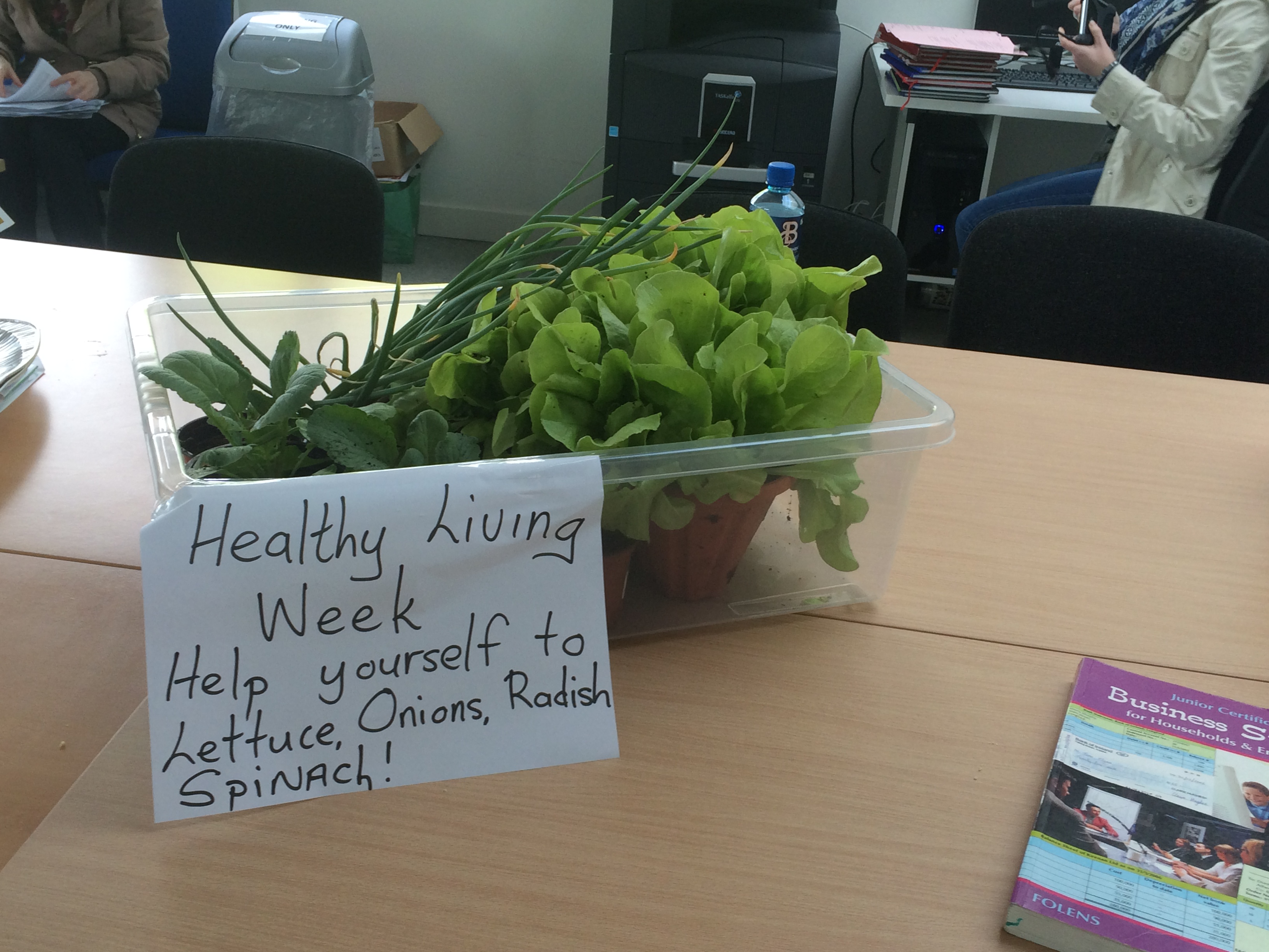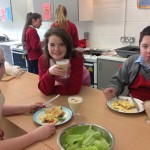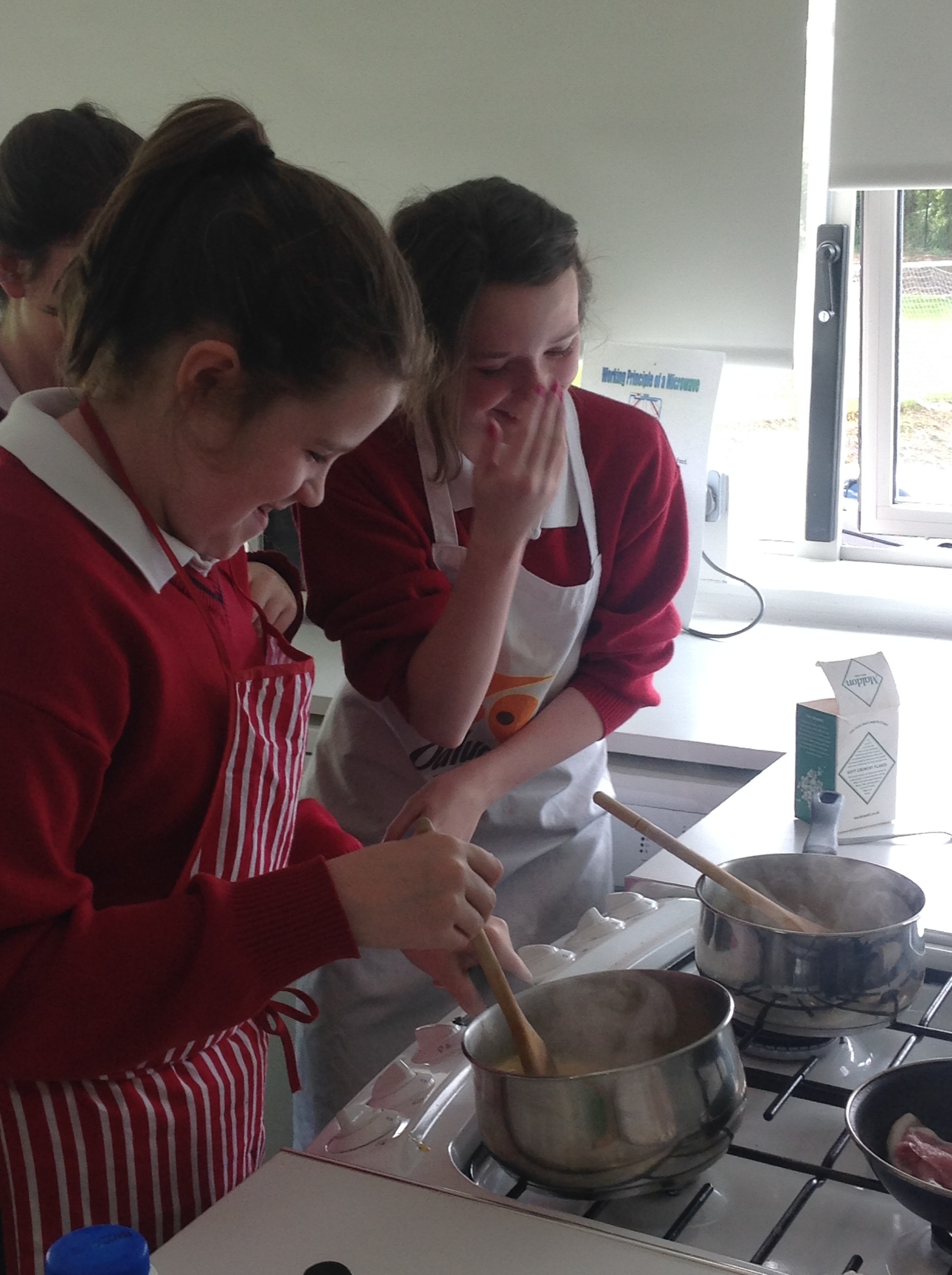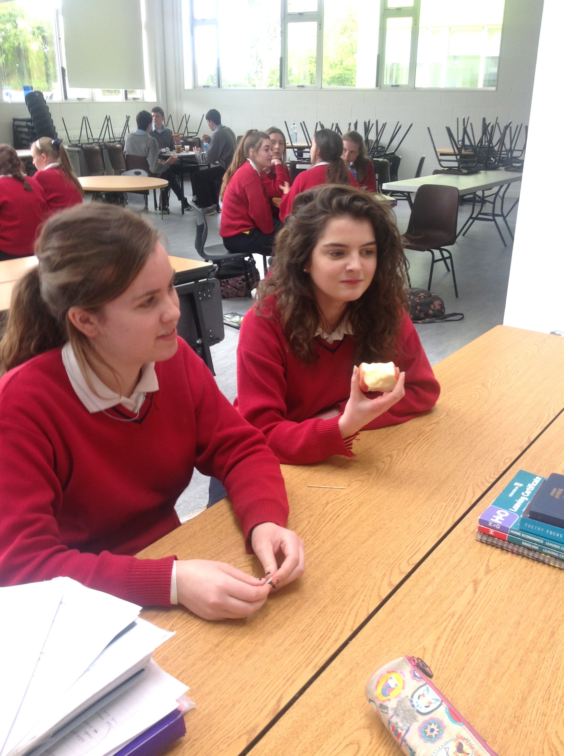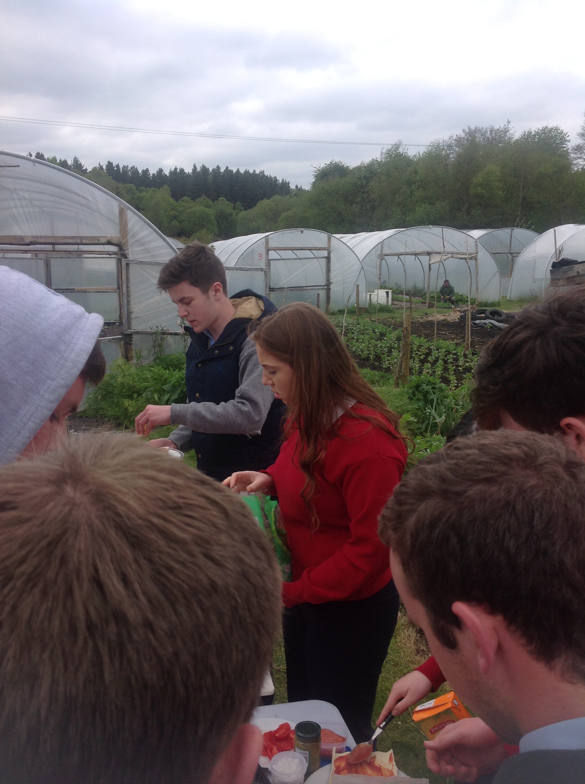 A variety of activities were held in school during Healthy Living Week this year. The aim of this themed week in school is to highlight the importance of subjects like Home Economics and PE in school and engage with the entire student and staff body with issues like nutrition, healthy food choices and physical activity. Bodywhys launched the weeks event with a workshop for students on the area of eating disorders, body perceptions and how to help someone with an eating disorder. Breakfast club held throughout the week included breakfast cookery classes. ‘Fakeaway’ cookery classes also took place where students cooked modified healthier versions of chicken strips and wedges. Cross Curricular links between subjects included produce grown by Ag Science students being used up in the Home Ec kitchen. The arrival of our new chicks in the Ag Science Department also linked in with the week. To encourage students food choices at lunch time a ‘healthy lunchbox’ competition was judged and prizes for the most balanced and nutritious lunch box contents were awarded. TY’s went on a visit to Knockvicar Organic Centre to learn more about food grown in polytunnels, food sustainability and got to use the wood fired stove outside and enjoyed healthy pizza’s cooked from it.