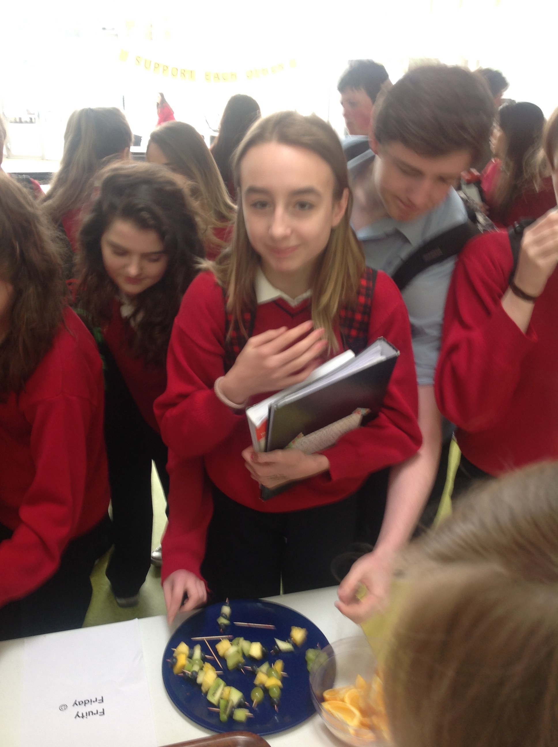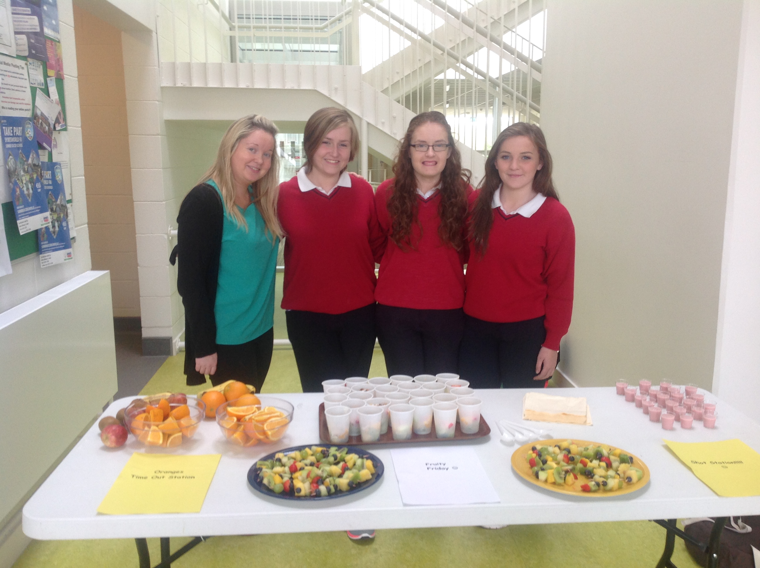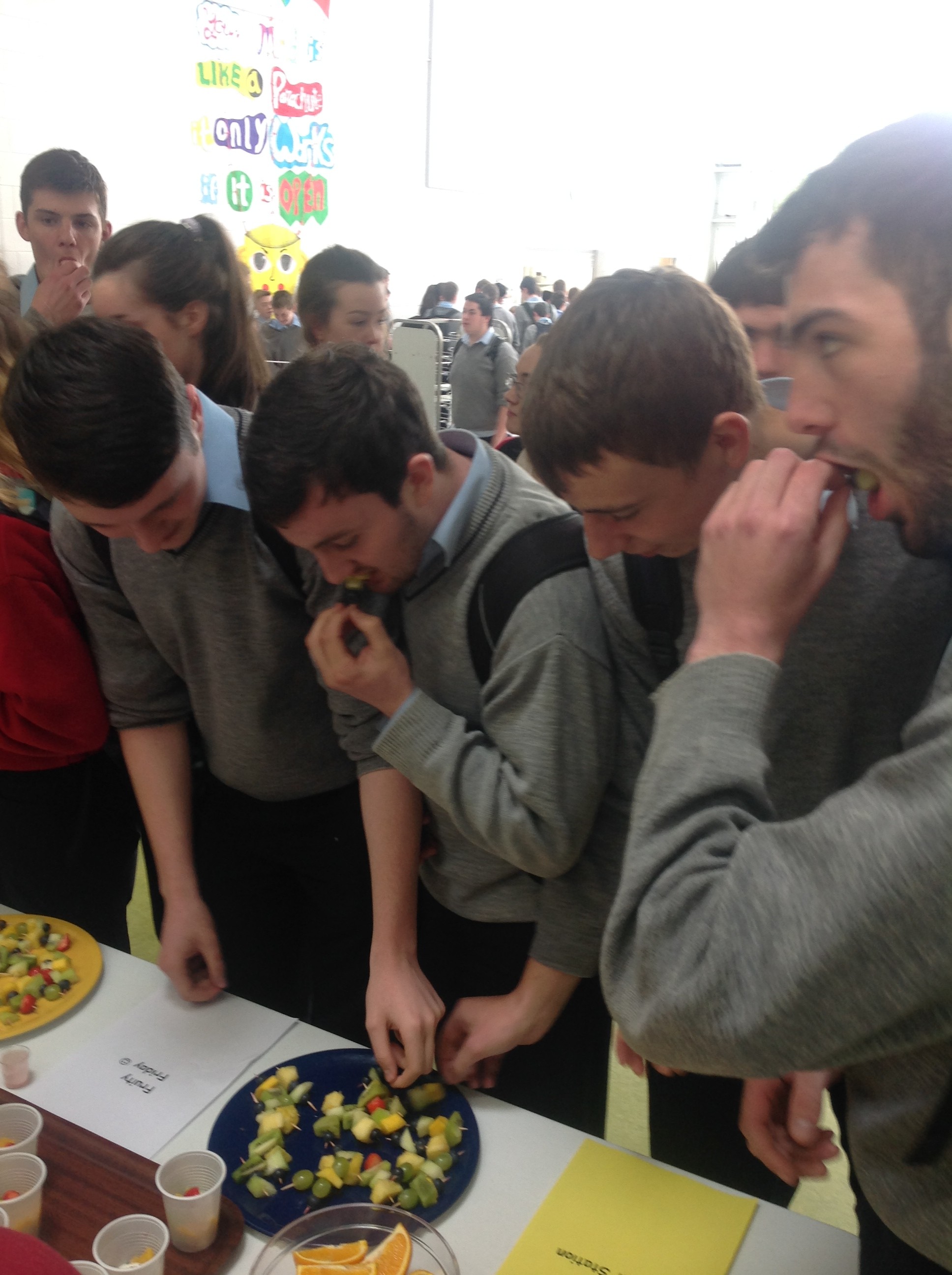 Lunch time activities included tug of war between teachers and students and also a Teacher V student volleyball game. Mr. Duignan and student Oisin McGovern also participated in an omelette cook off in the Home Ec kitchen. To link in with Jamies Olivers Food Revolution Day on Friday 15th May, Ms. Cooney organised a Fruity Friday promotion in the school canteen where students enjoyed a variety of colourful fruit pots, exotic fruit kebabs, orange wedges and strawberry smoothie shots. The weeks events concluded with a Health Quiz. Congrats to all the winners of the various competitions throughout the week. Thank you to all who engaged in the event and staff who helped out and participated in various games and activities which always makes the event memorable.