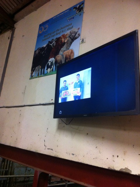 We got a picture of ourselves put onto the flat screen television in the mart, for promotion of the Irish Angus producers group, ABP Group and Kepak group.