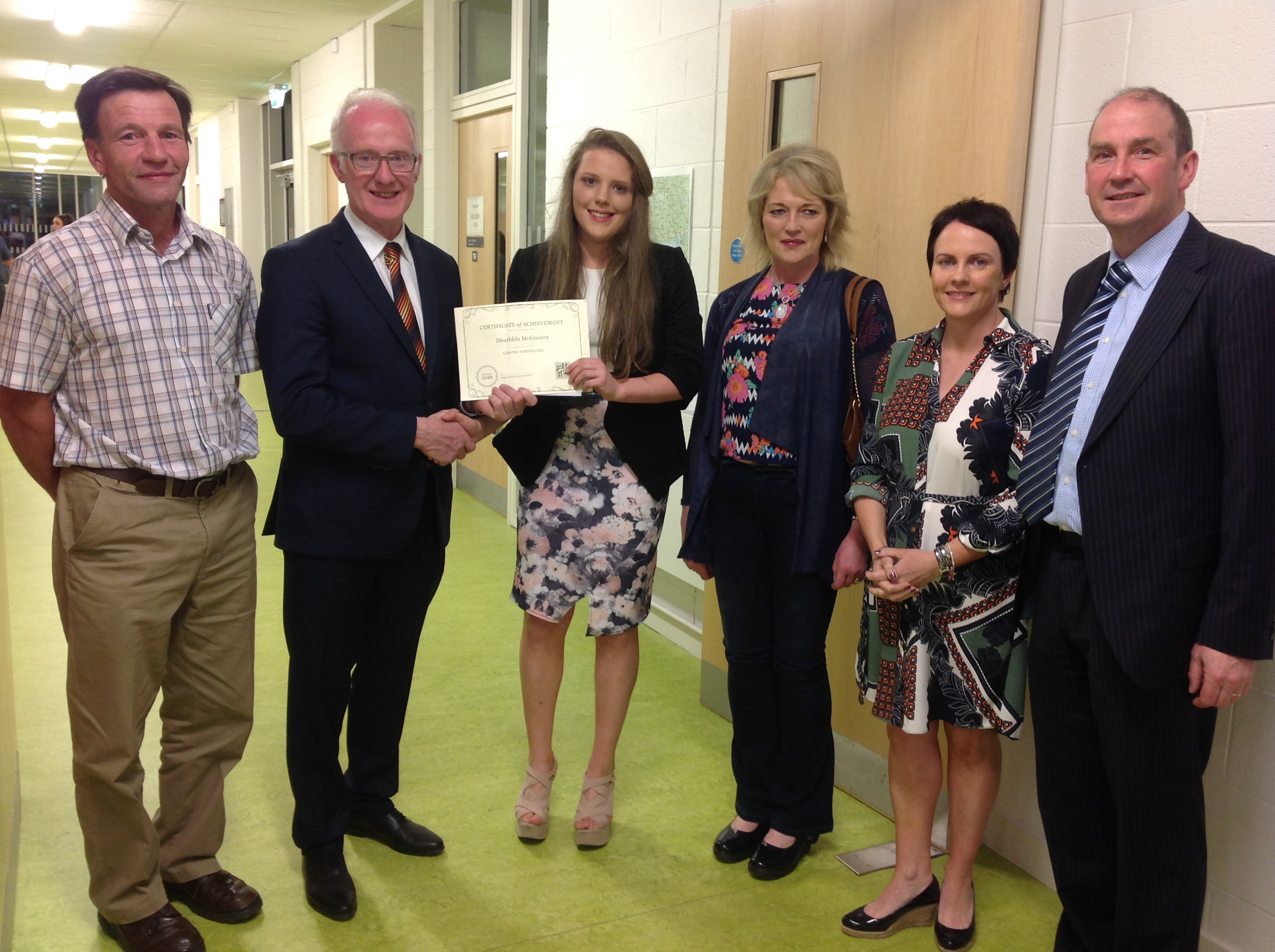 Congratulations to Leaving Cert student of the year 2016, Dearbhla McGovern. Photo (L-R) Sean McGovern, Padraig Leyden (Principal), Dearbla McGovern, Sile McGovern, Siobhan Convey (LC Year Head), Diarmuid McCaffrey (Deputy Principal)
