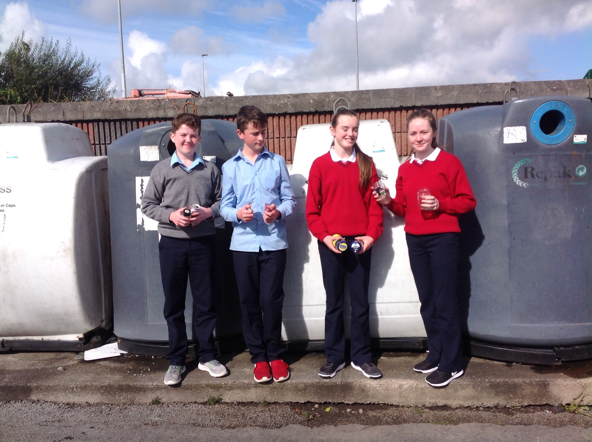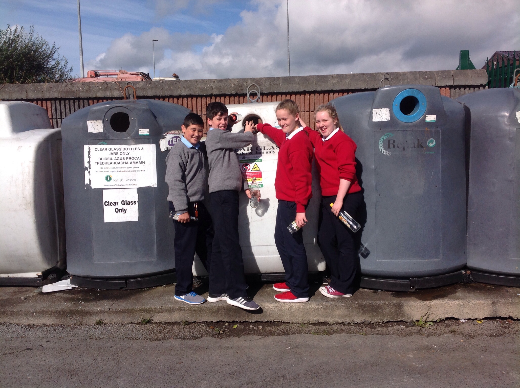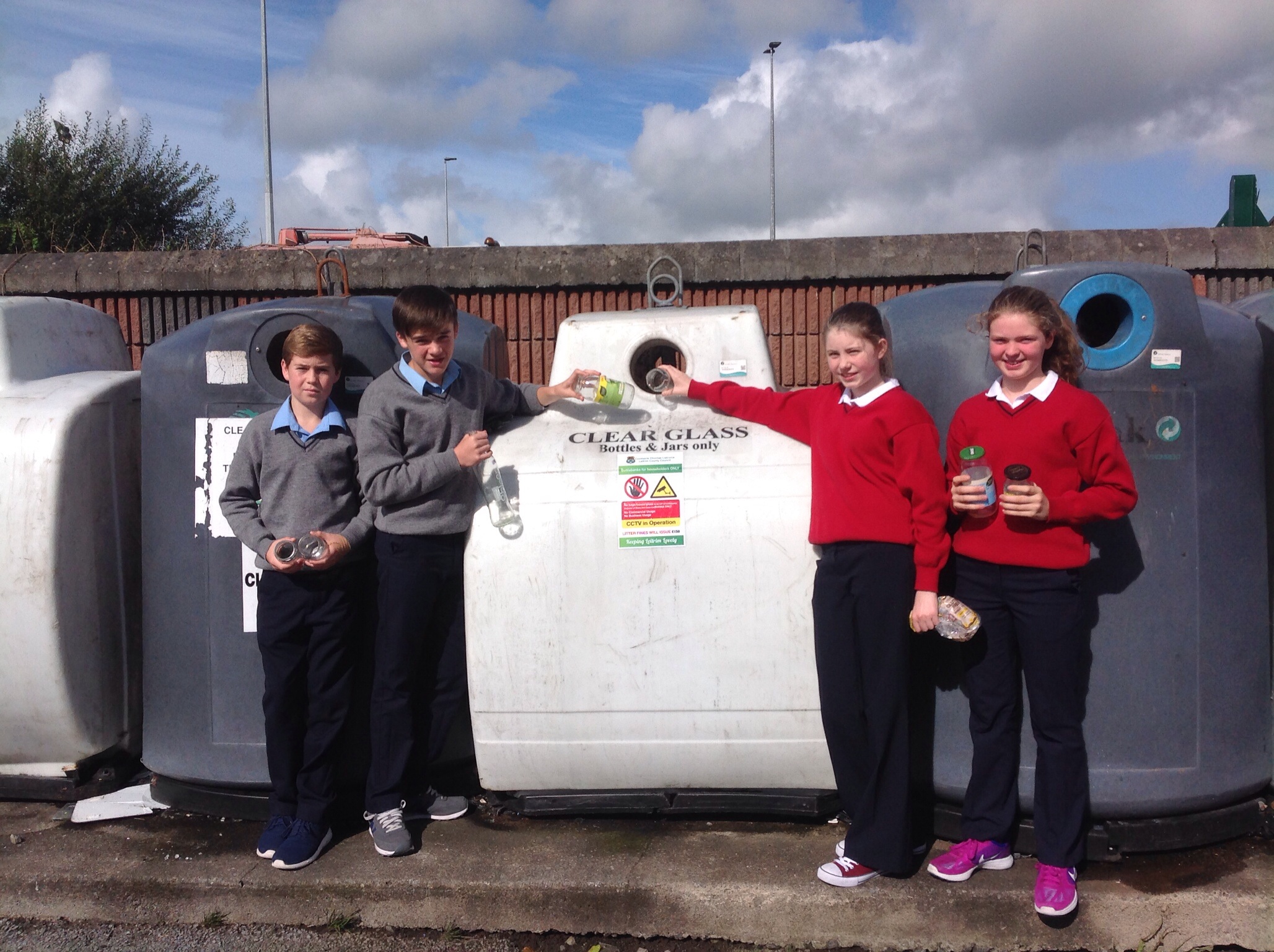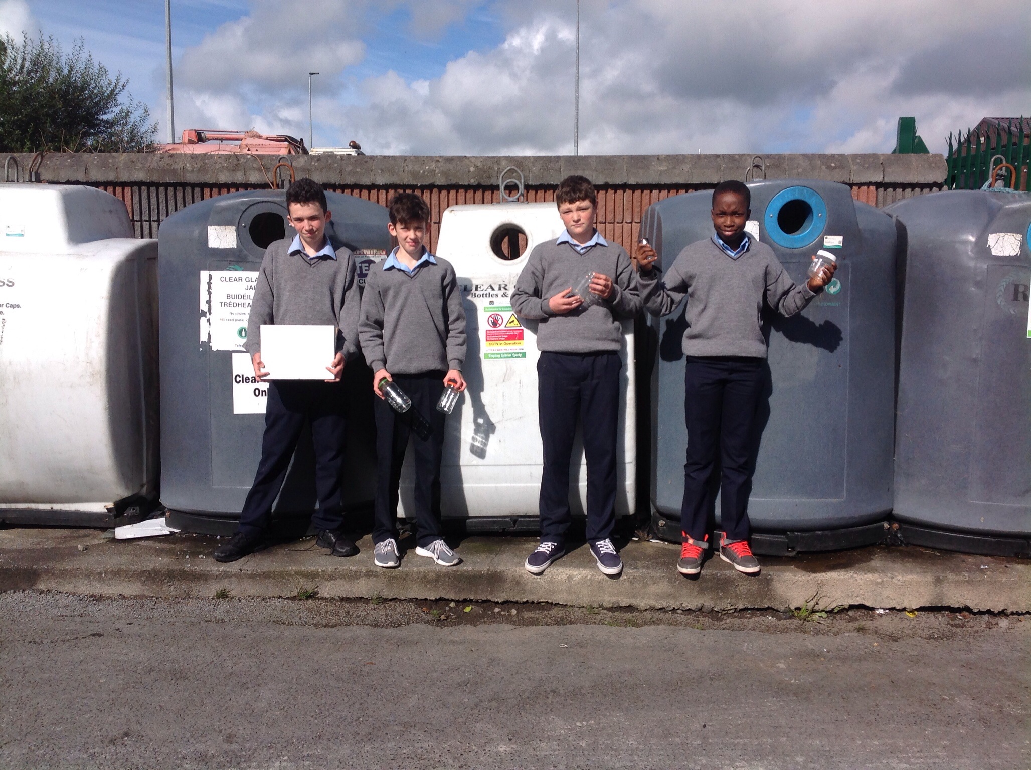 As part of the science and society course first year students in Ms. Colum’s science class went to the recycling bank in Ballinamore where they recycled clear glass, brown glass, green glass, drinks cans and clothes.