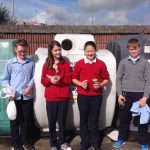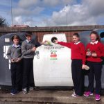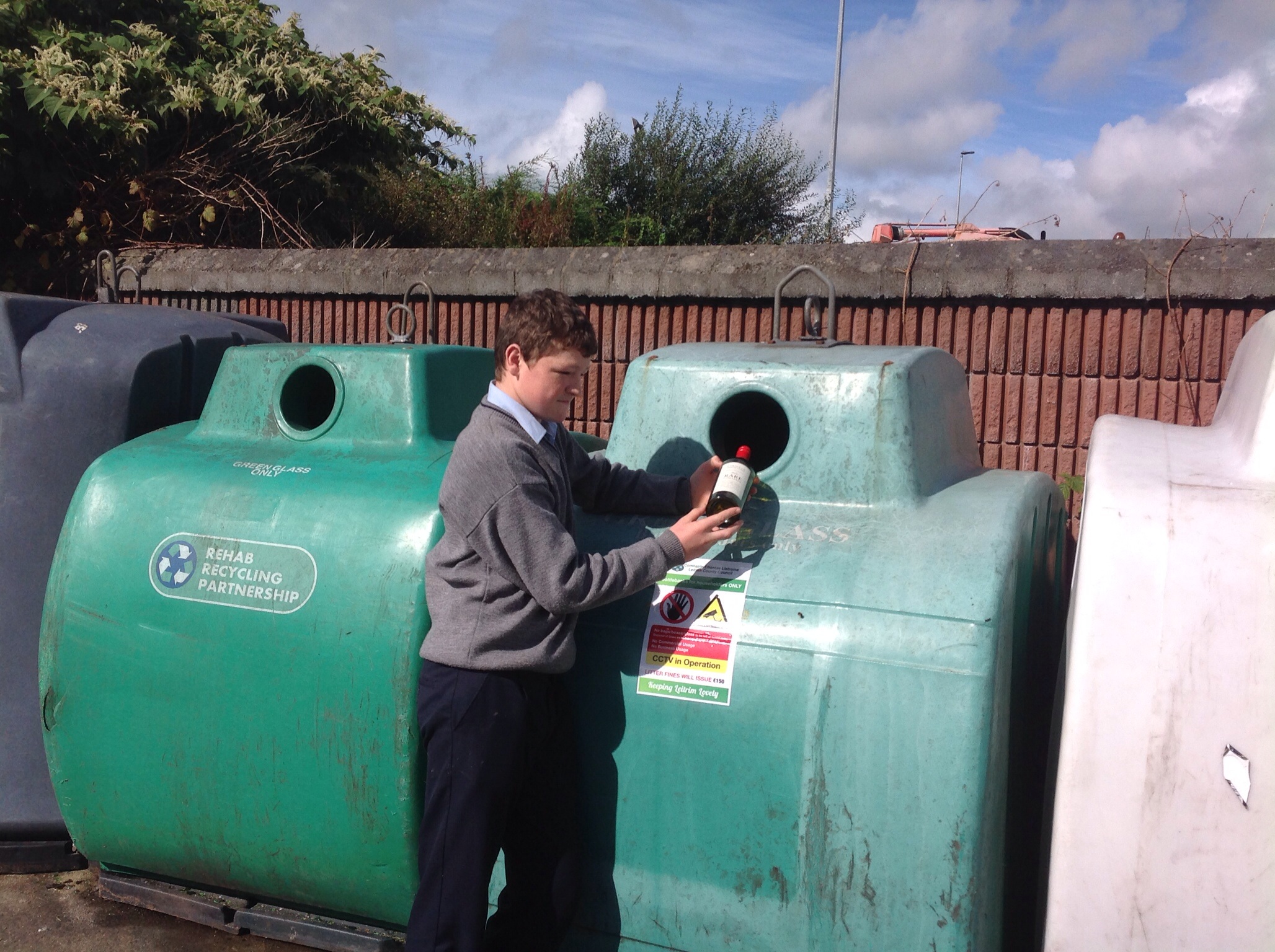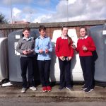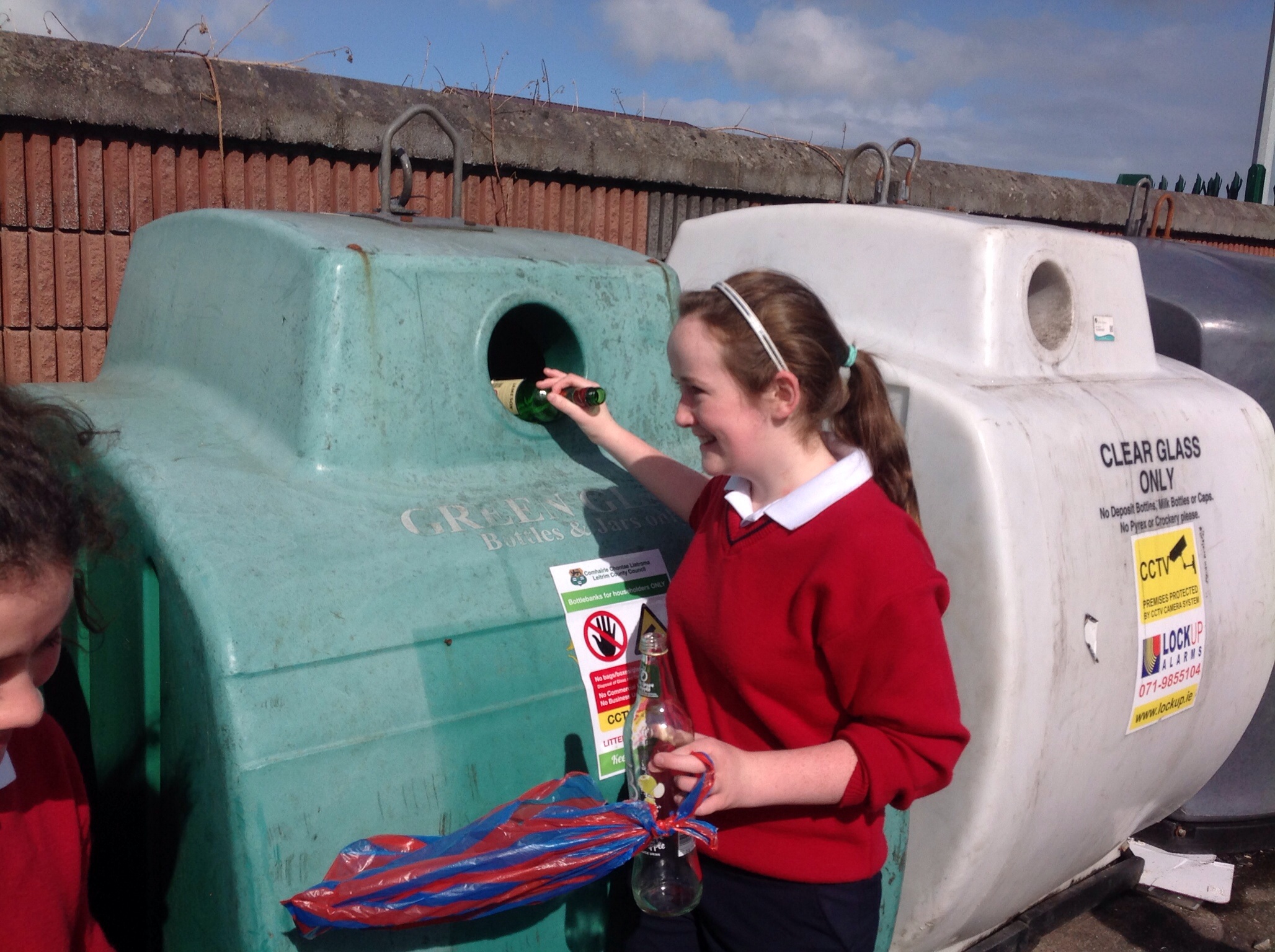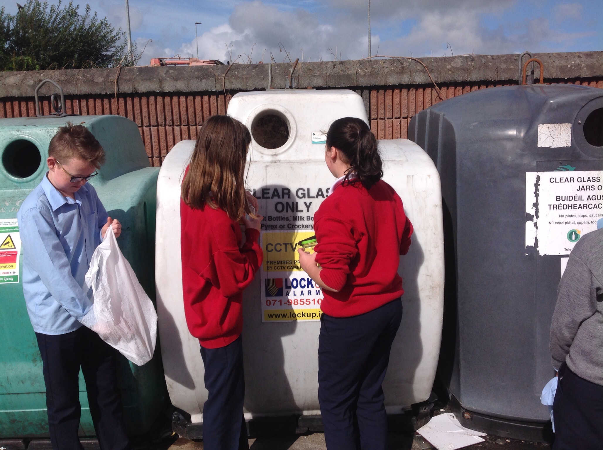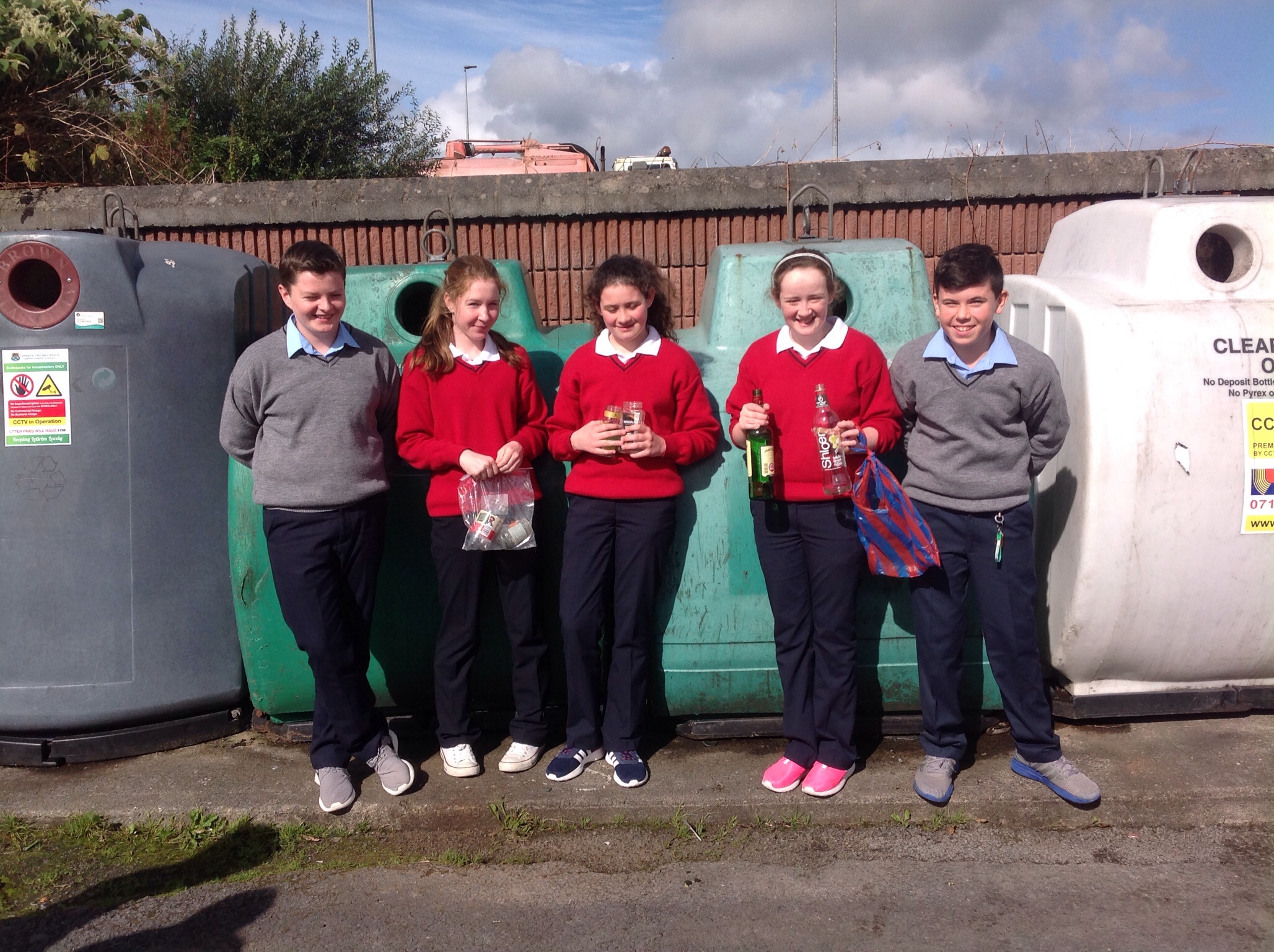 As part of the science and society course first year students in Ms. Colum’s science class went to the recycling bank in Ballinamore where they recycled clear glass, brown glass, green glass, drinks cans and clothes.