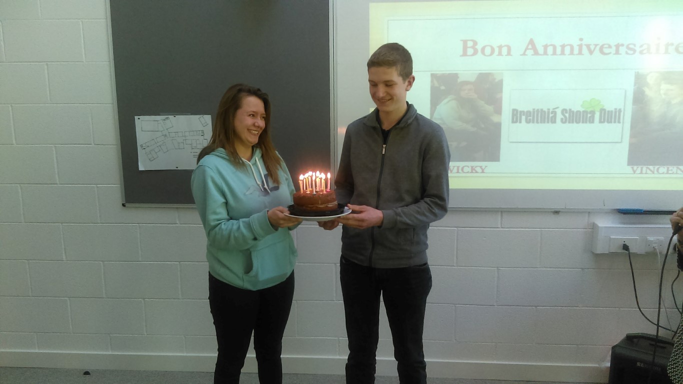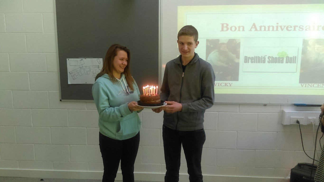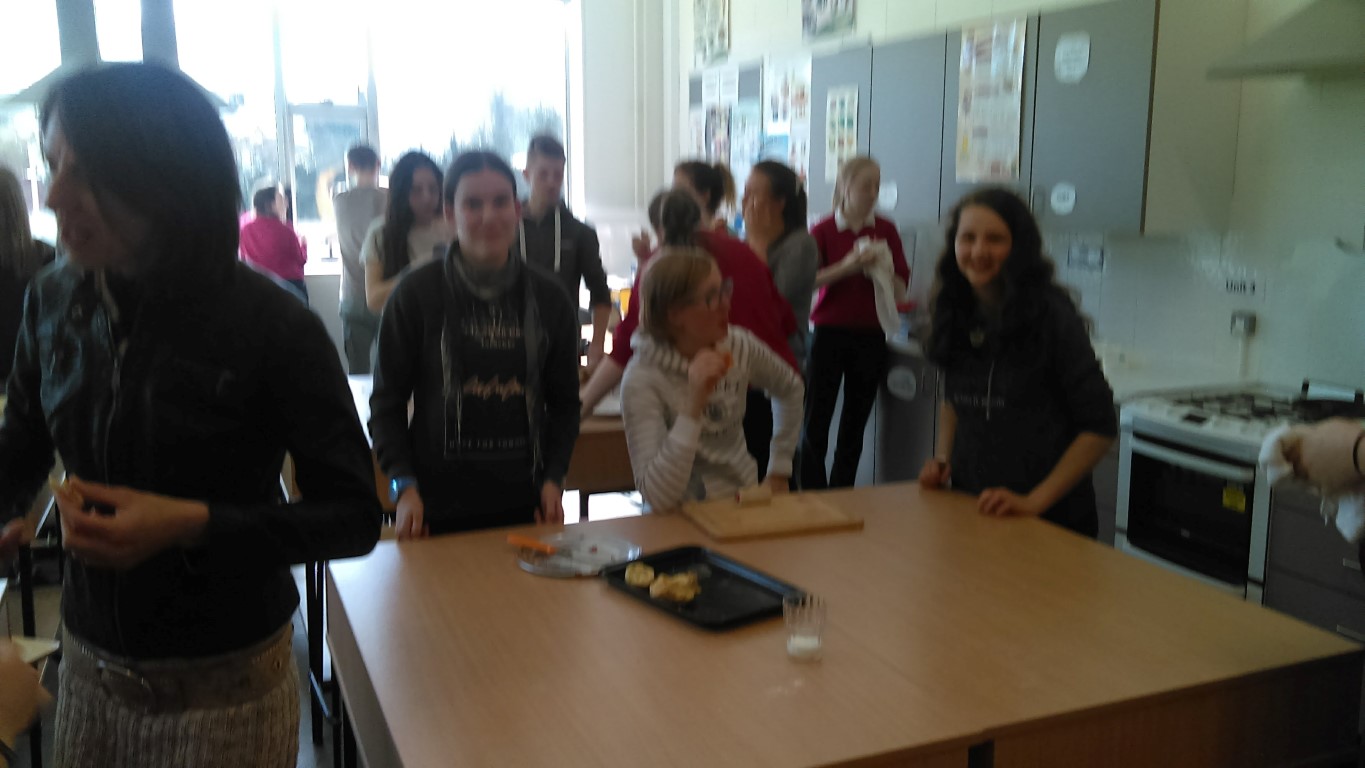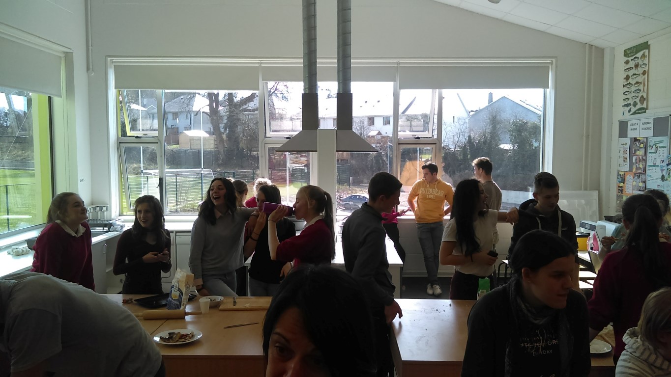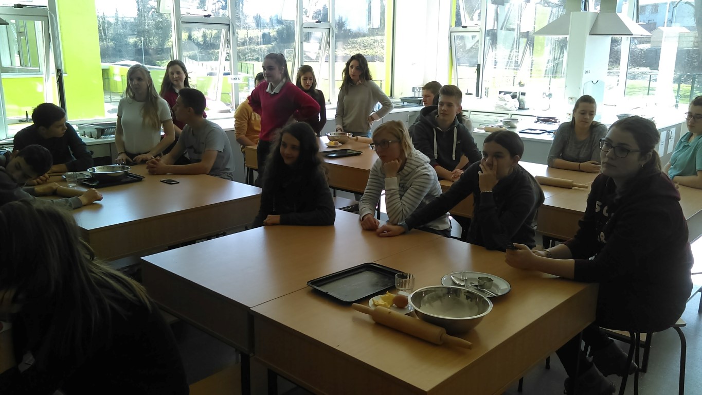 Friday 24th March: 9am – 11am there is a French Irish quiz followed by 3 classes of cooking with Ms Cooney. The French students make home-made lemonade, fresh scones and chocolate and strawberry twirls. Ms Severine Briday and Mr Cunnane visit Ms O’Dell and Ms Bohan’s classes in the National School.