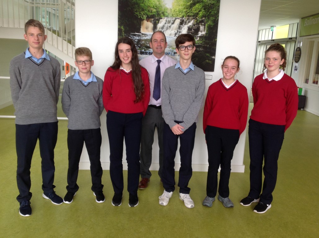 We celebrated the day with our new Spanish students, Maria and Ignatius pictured here with their hosts Niamh and Ella and our own students Adam and his brother Jakub who taught us some Polish. During break the national anthem of Europe – Ode to Joy was played in the canteen