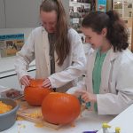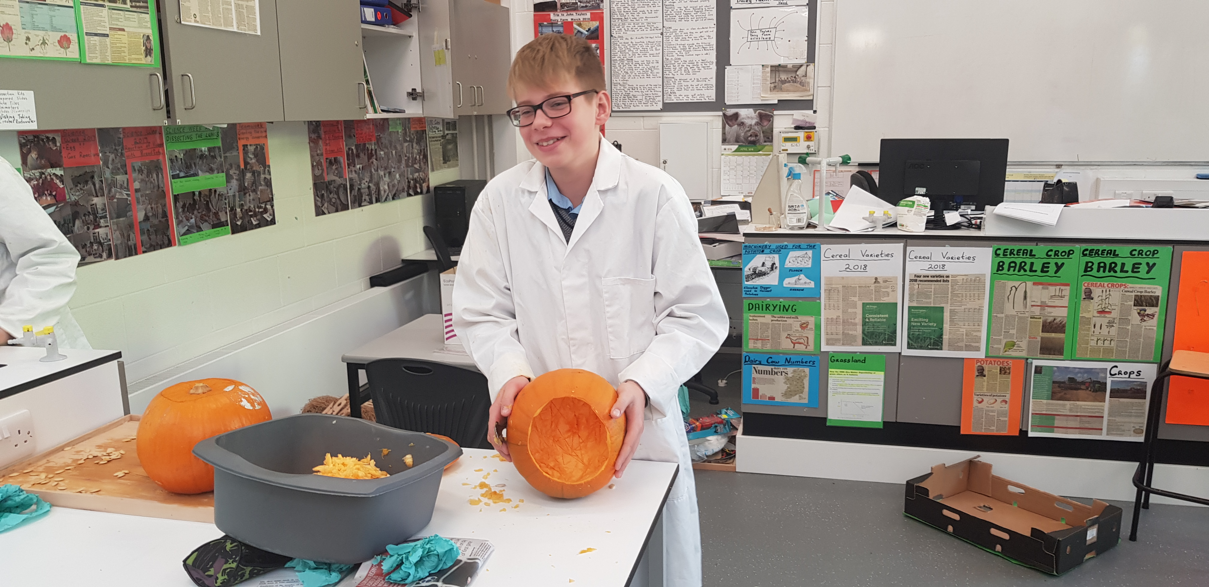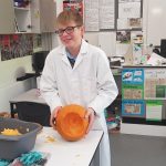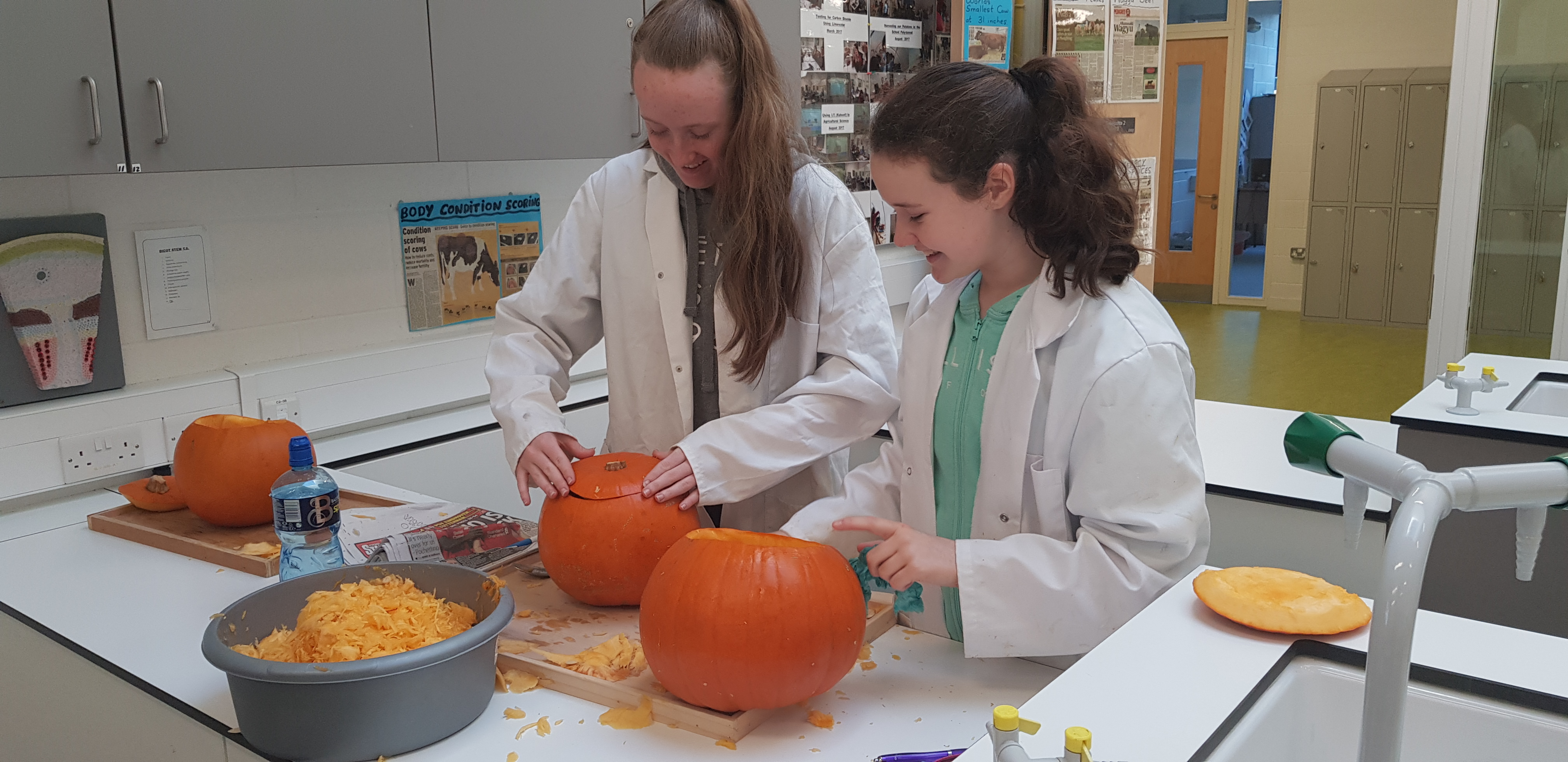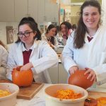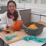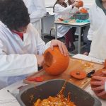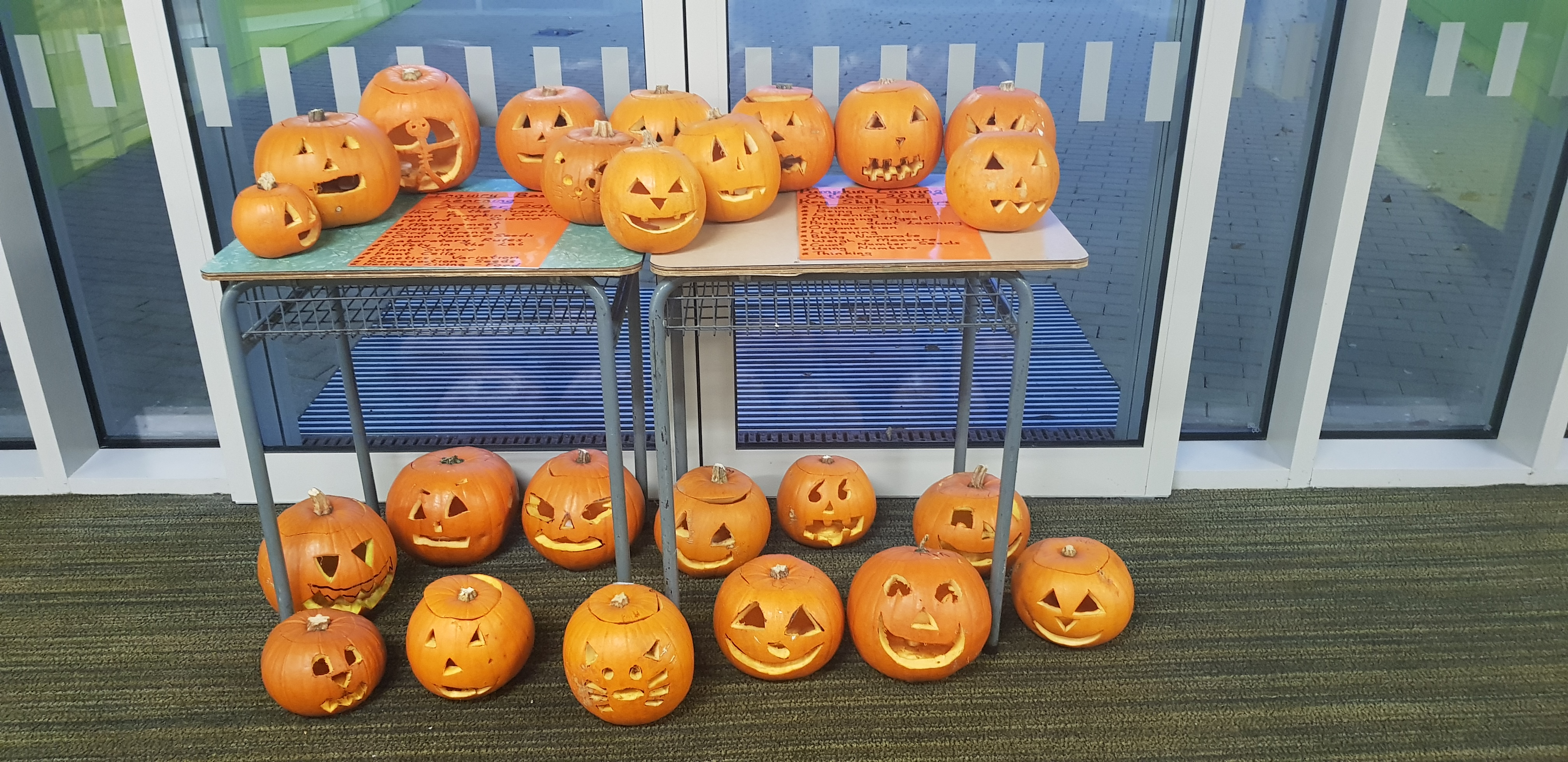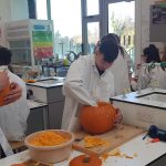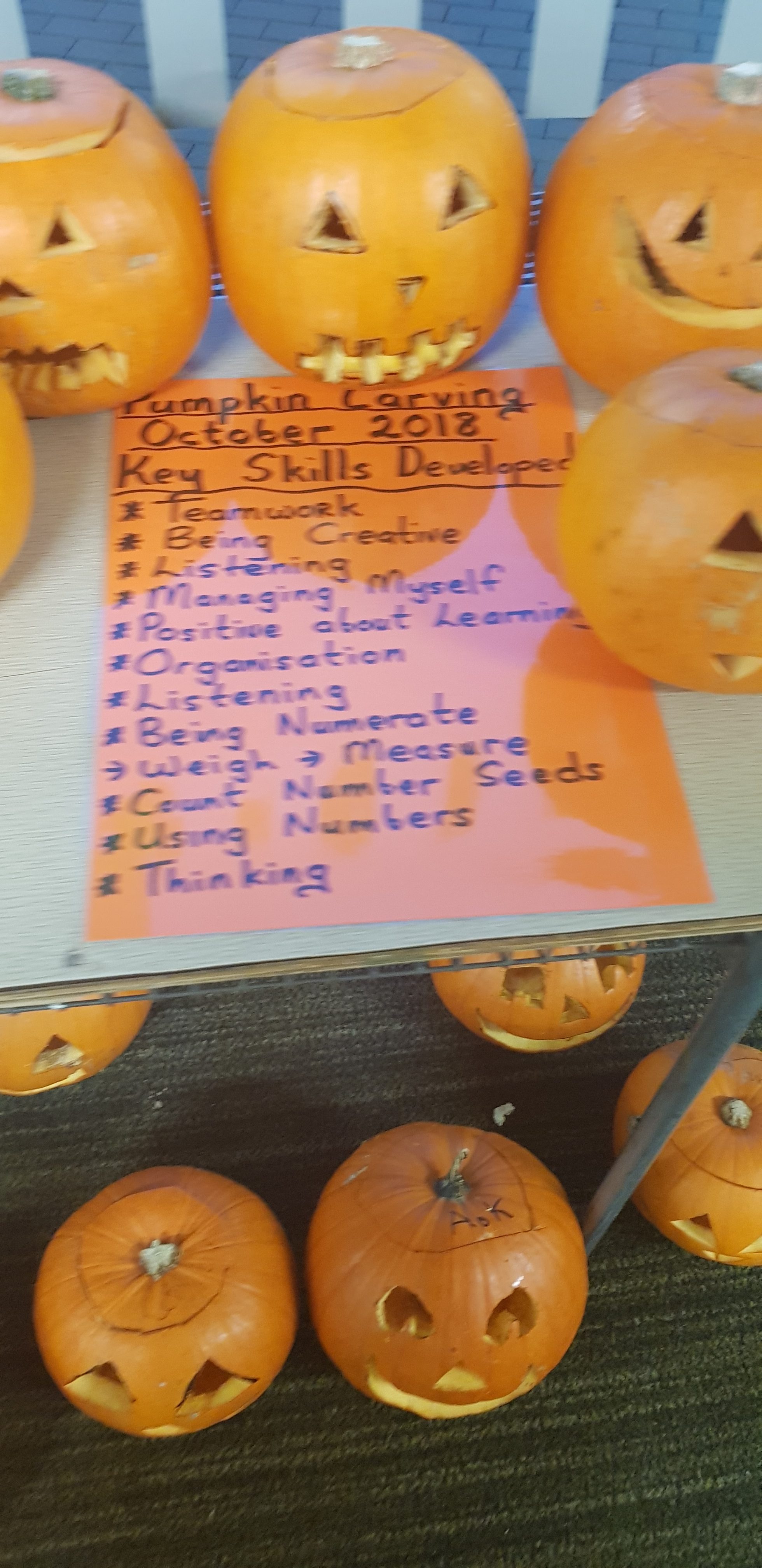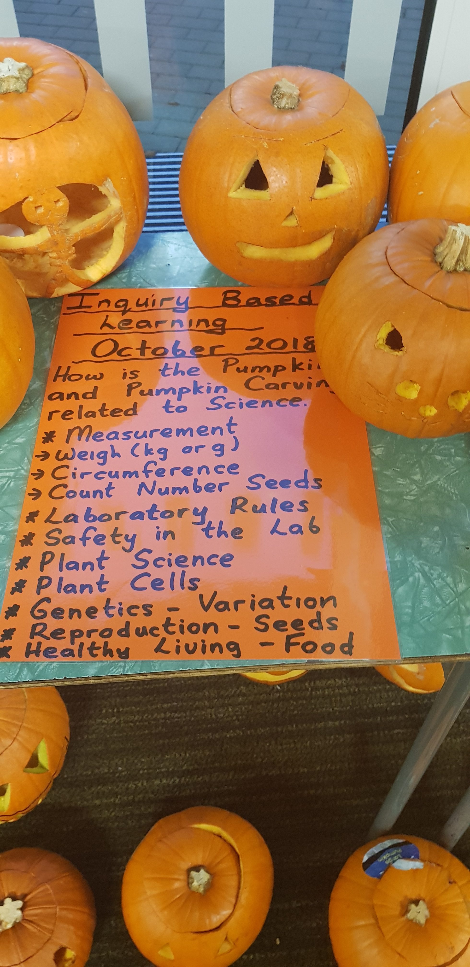 Ms Colum’s science classes began by examining the pumpkin (from investigating measurement, weight & circumference, counting number of seeds, looking at plant cells, genetics through variation of pumpkins) and then developing their artistic/craft skills they designed and carved out their pumpkin creations. The pumpkin flesh was then used in Home Economics cookery class to make delicious pumpkin soup which students and staff all got to sample. The seeds were also used up by roasting them in the oven and made a lovely high fibre snack. This cross curricular project linked in with aspects of wellbeing and our current green schools project.