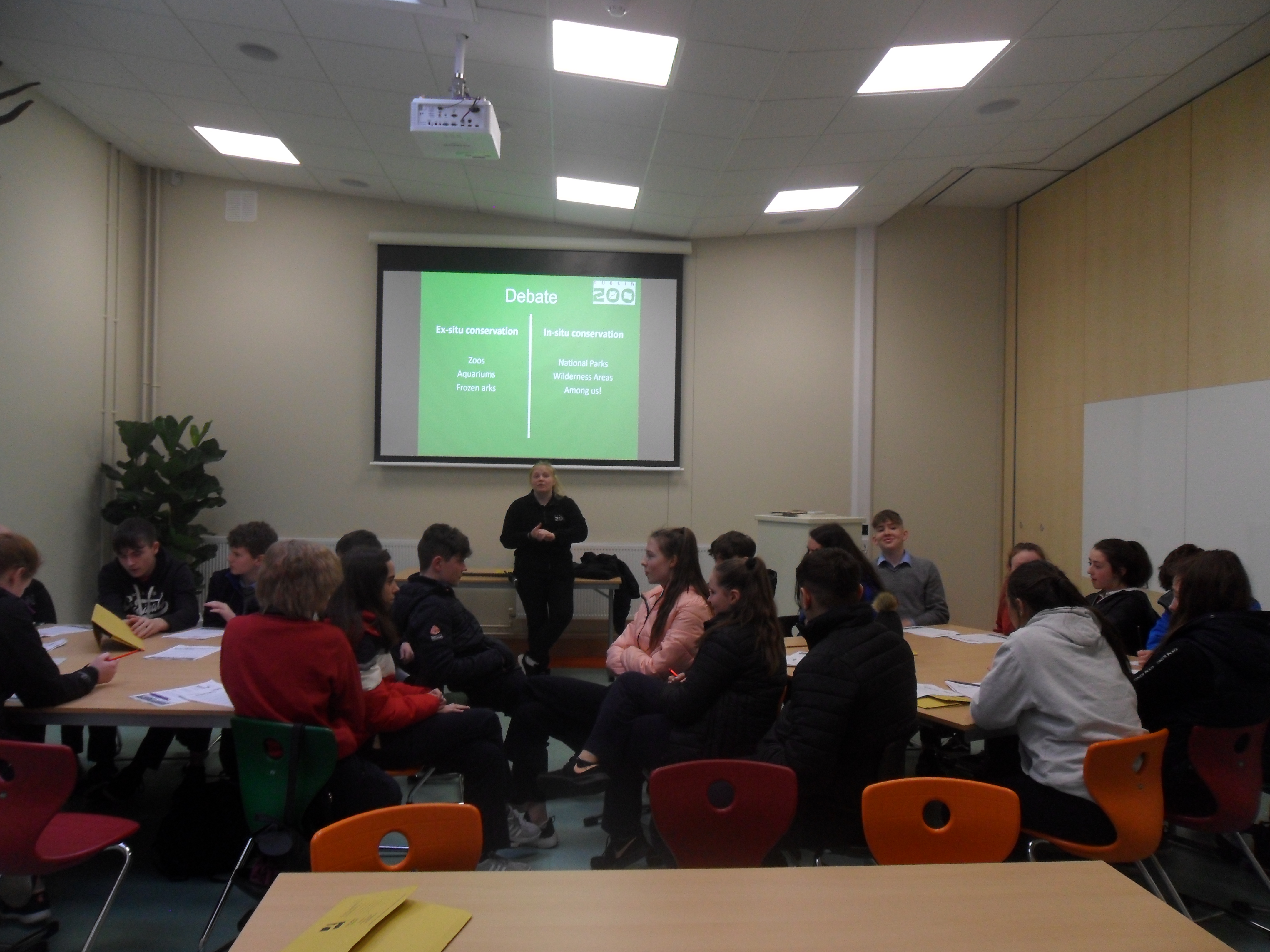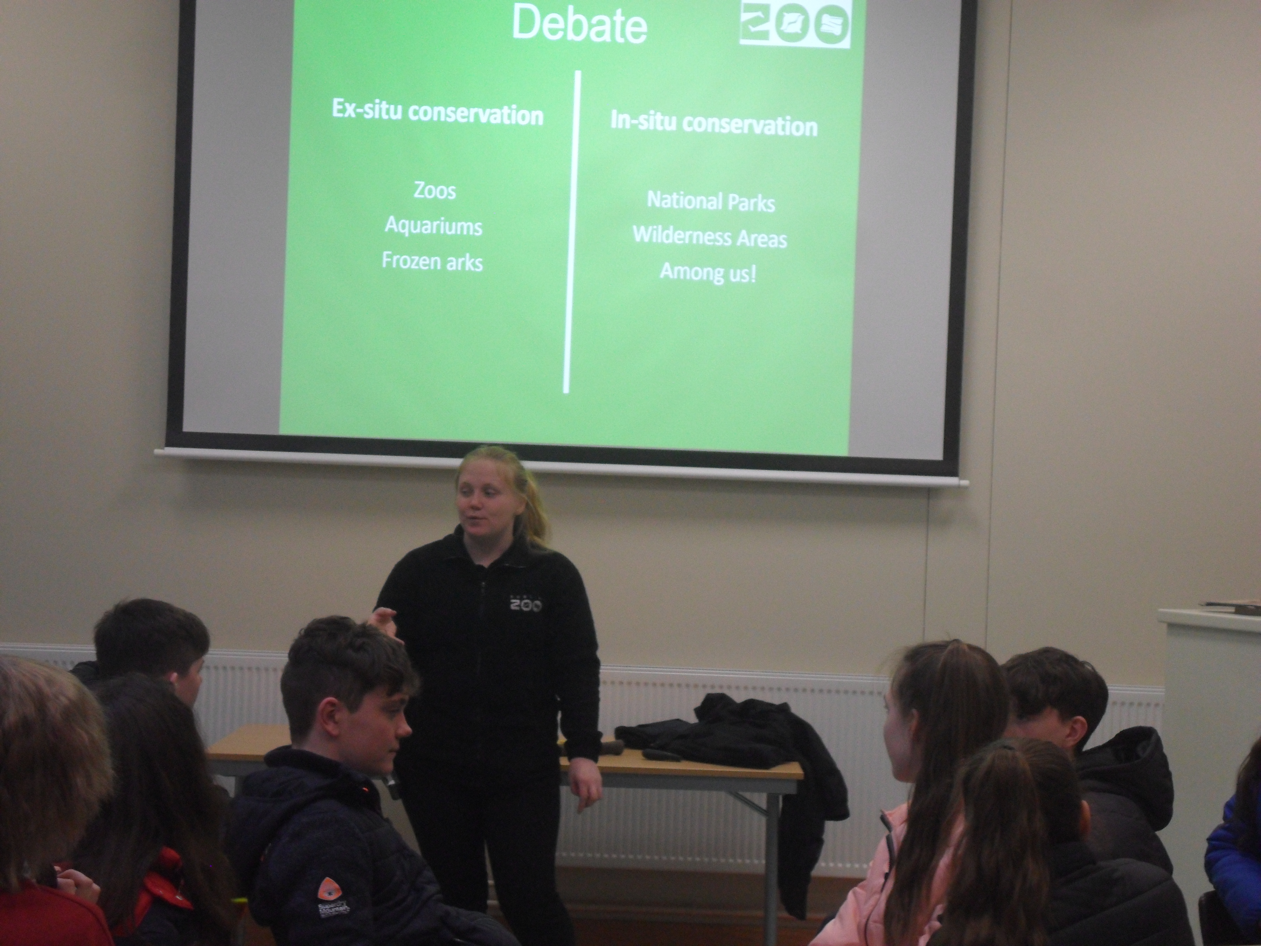 At the zoo, we looked at zooardship, education, breeding, research and conservation of the animals at Dublin Zoo. But none of these would be possible without research. Research done by major zoologists around the world and even by our own zoologists in Ireland. We were given examples of good and bad stewardship and asked to organise them as good or bad. We also had a debate on in-situ (keeping animals in zoos) and ex-situ (leaving them in the wild). We were given a tour of the zoo in our respective classes and learned about the Amur Tiger.
