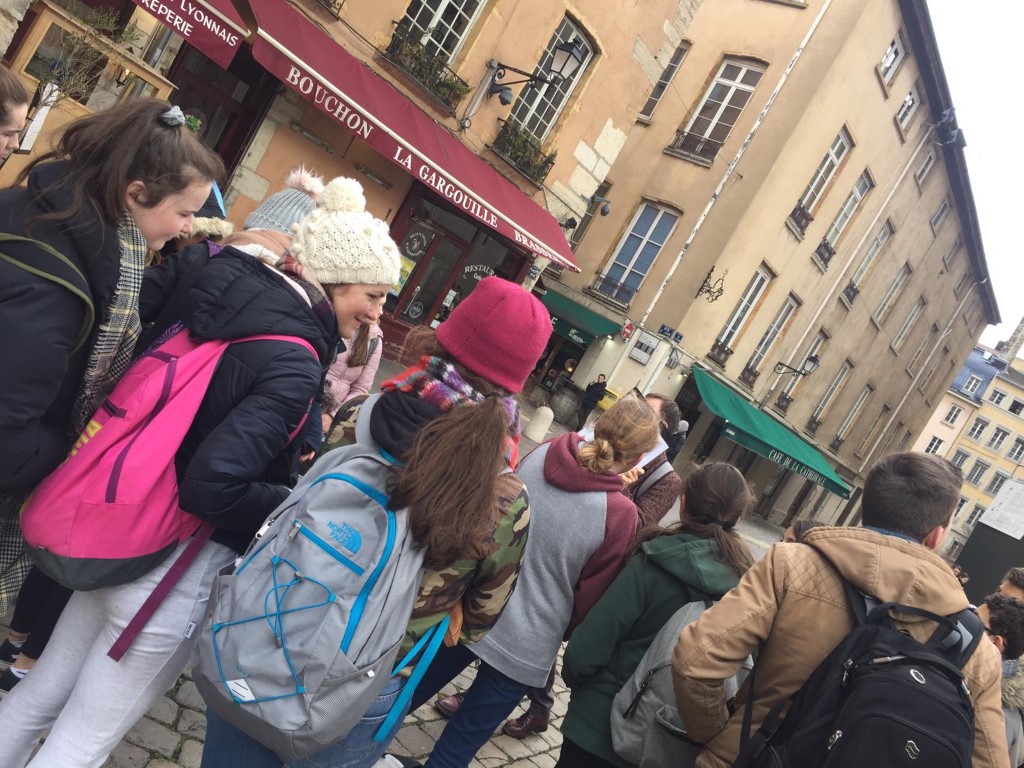 Tuesday: More fun in Lyon today! French improving all the time and confidence building up among all our students. We had classes all morning with girls tasting music, french, Science and Art. Experiencing a full day at their school was very enjoyable especially given the early start and one hour lessons. This was topped off by an amazing visit to La chocolaterie!