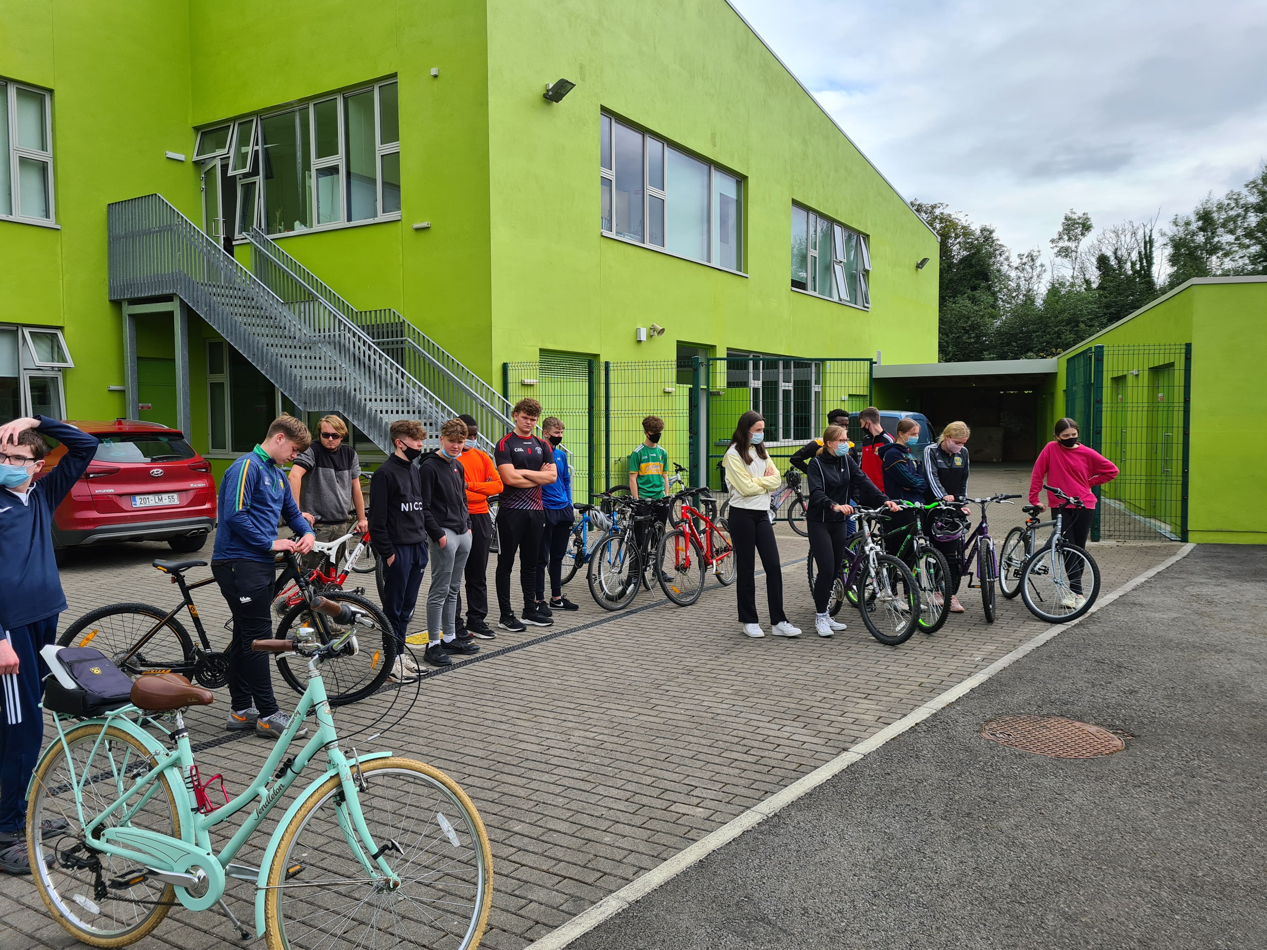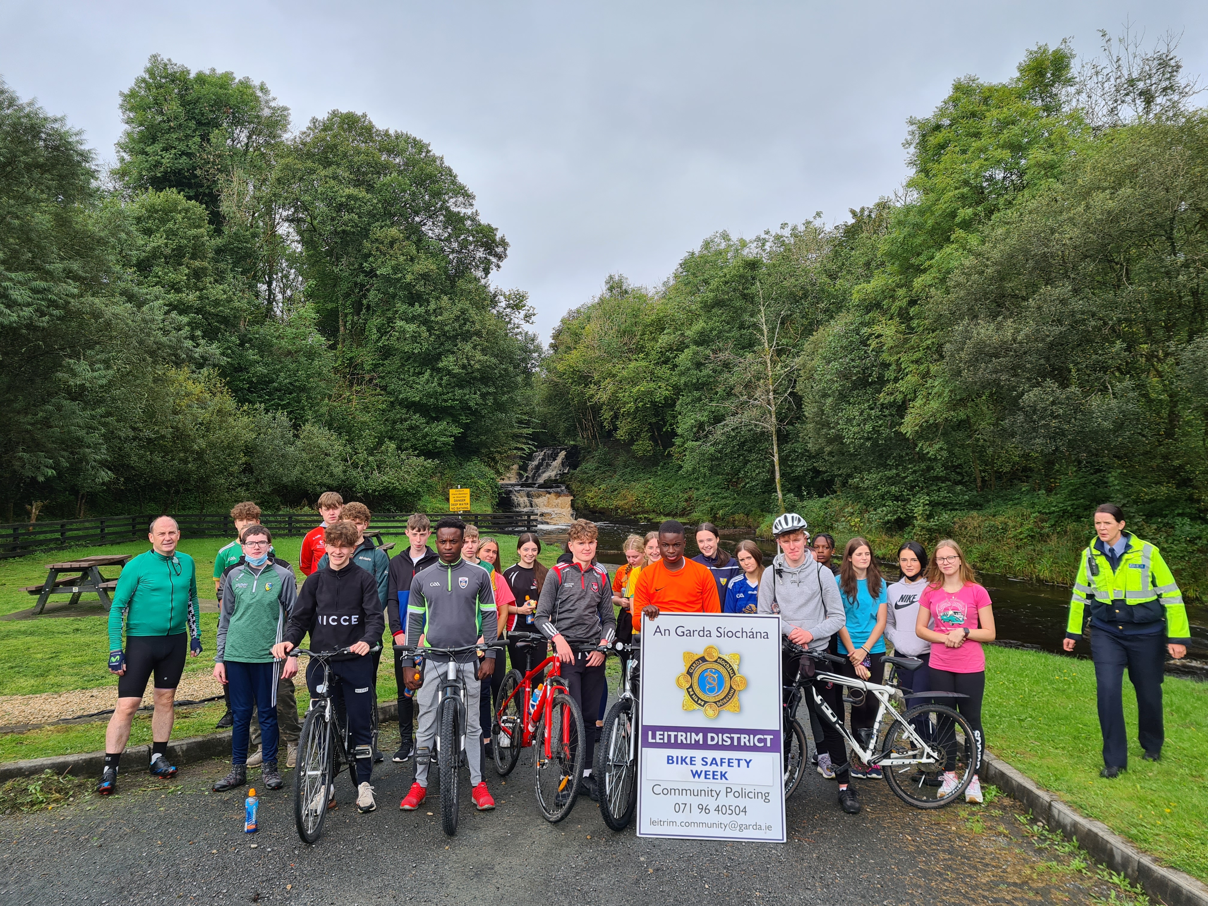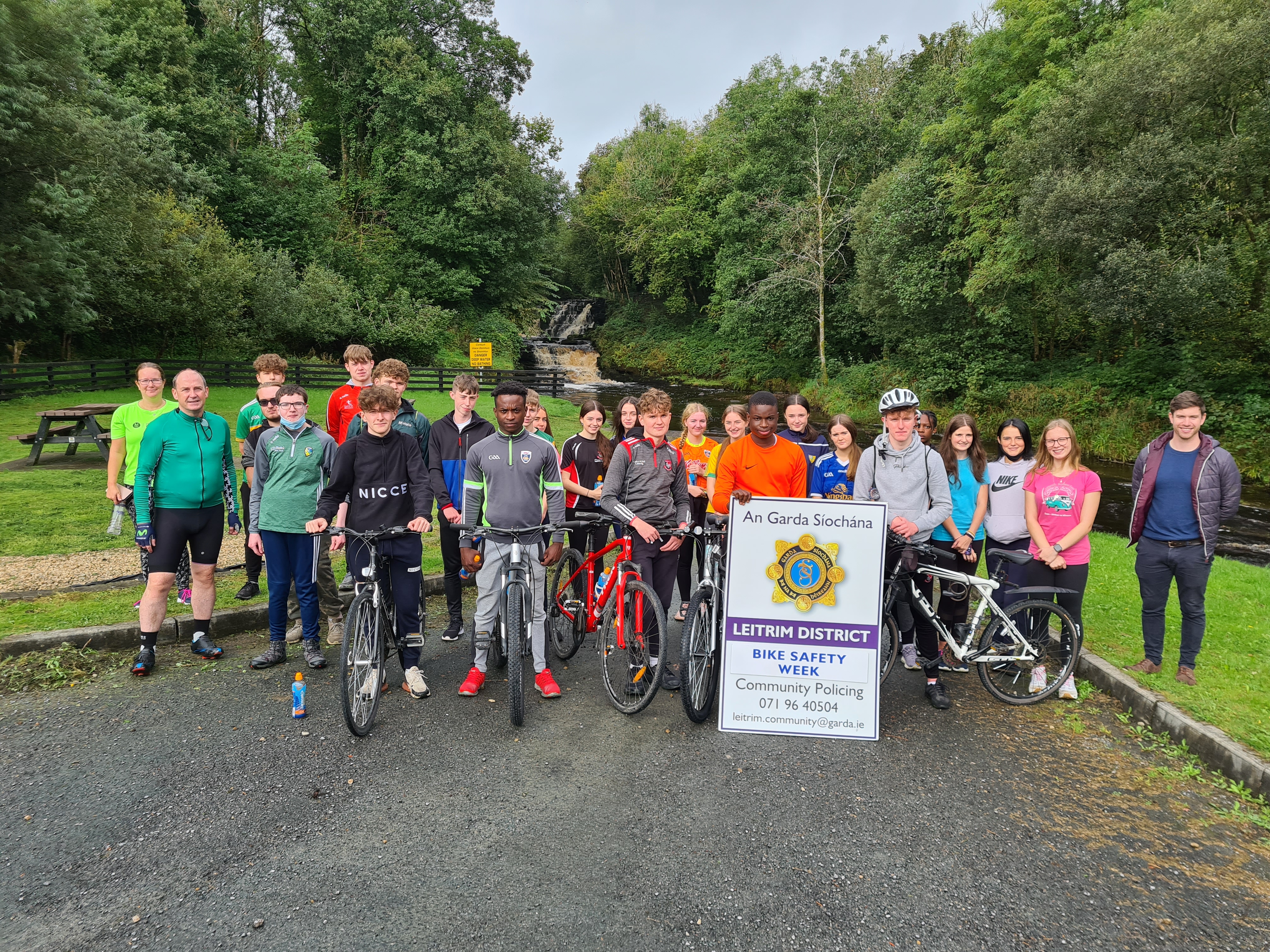 On Tuesday morning, the group set off for Poll an Easa in Aughnasheelin, following the back roads to make sure there was as little disruption to traffic as possible. Massive thanks to the local Gardai, who drove ahead of us and made sure that our trip was as safe as possible. Following a short break to have a quick snack and enjoy the scenery, we were back on our bikes to school.