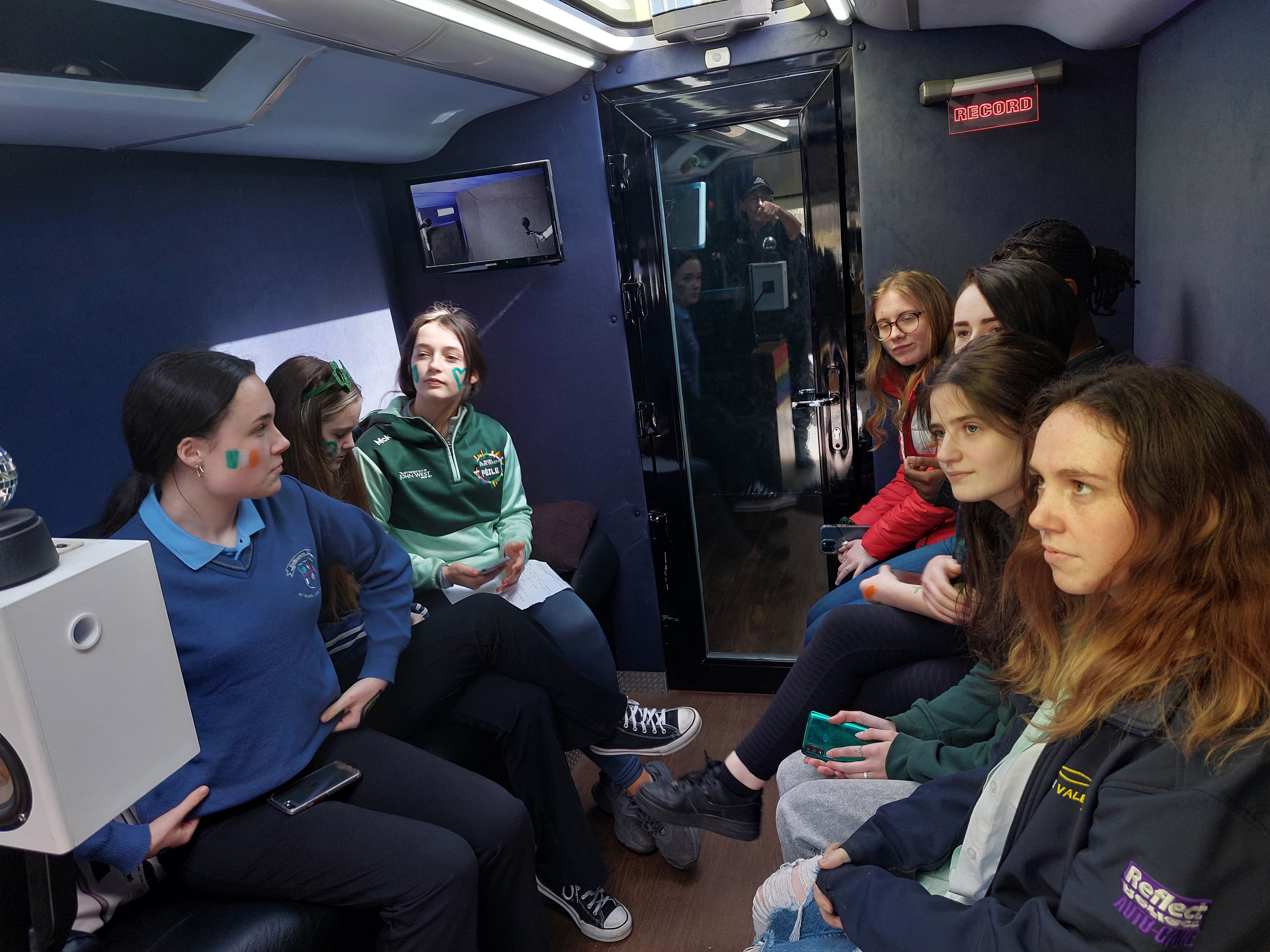 The TY group had a great full day workshop recently, where they got the opportunity to script and develop their own podcast and radio advert and use professional equipment to record their productions. It was a great interactive workshop, and the group found it very enjoyable.