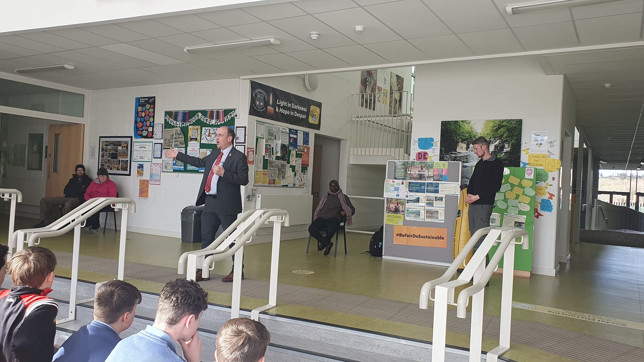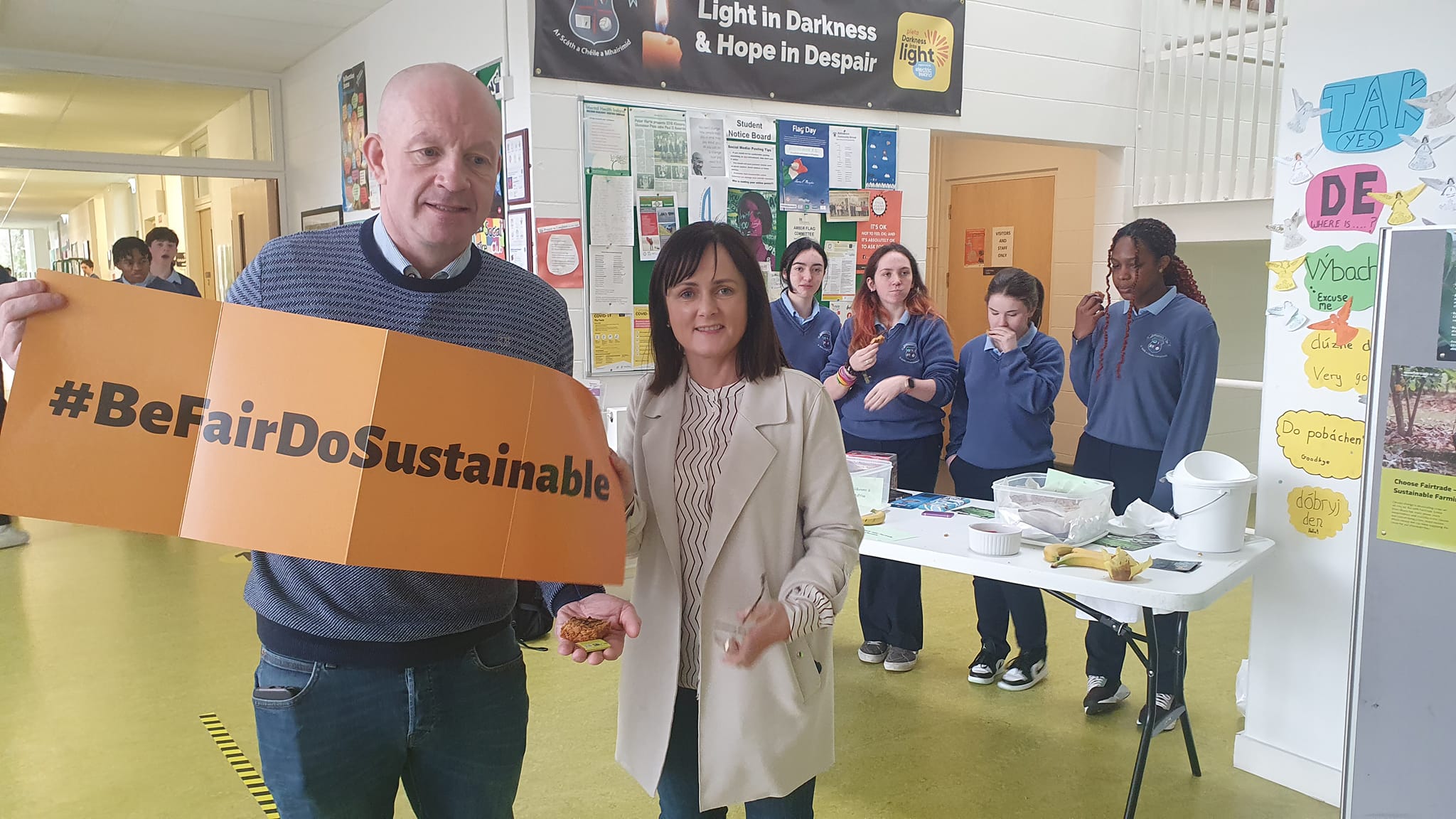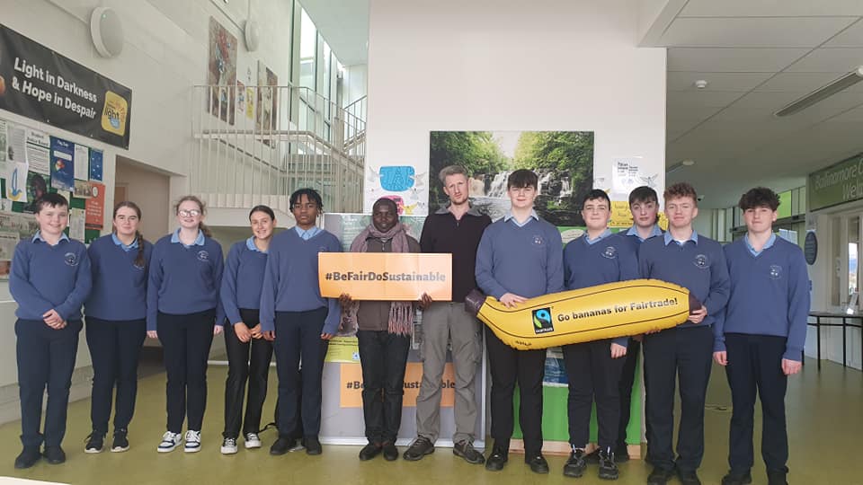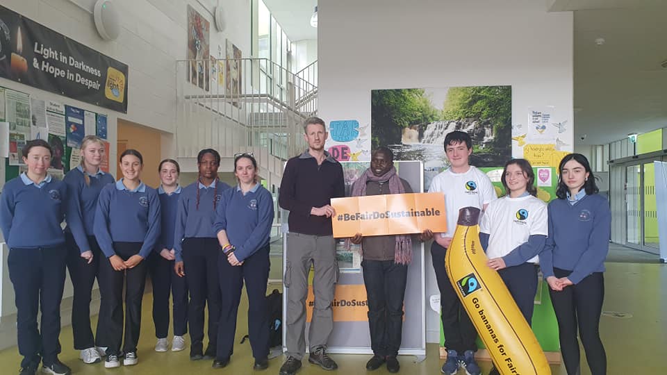 On Tuesday 7th March we were delighted to welcome Aidan and Hannah from Fairtrade Ireland along with Special Guest Innocent Owomuhangi a fairtrade tea farmer from Uganda to the school. They spoke to students, staff and members of our community about the importance of supporting fairtrade. This was a brilliant opportunity for everyone to meet a farmers directly involved in fairtrade.