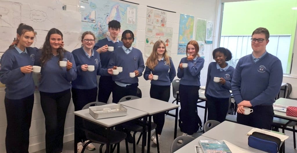 Ms Cooney and the Social Justice Club organised a fairtrade stand in the canteen area for students to sample a selection of fairtrade treats. Staff also enjoyed a Fairtrade Cuppa Morning. Students from Ms Moran, Mr Mullen and Ms Cooney’s CSPE, Geography and Home Economics classes looked at the topic further. Mr Mullen’s 1st and 3rd year Geography classes enjoyed some fairtrade hot chocolate.
