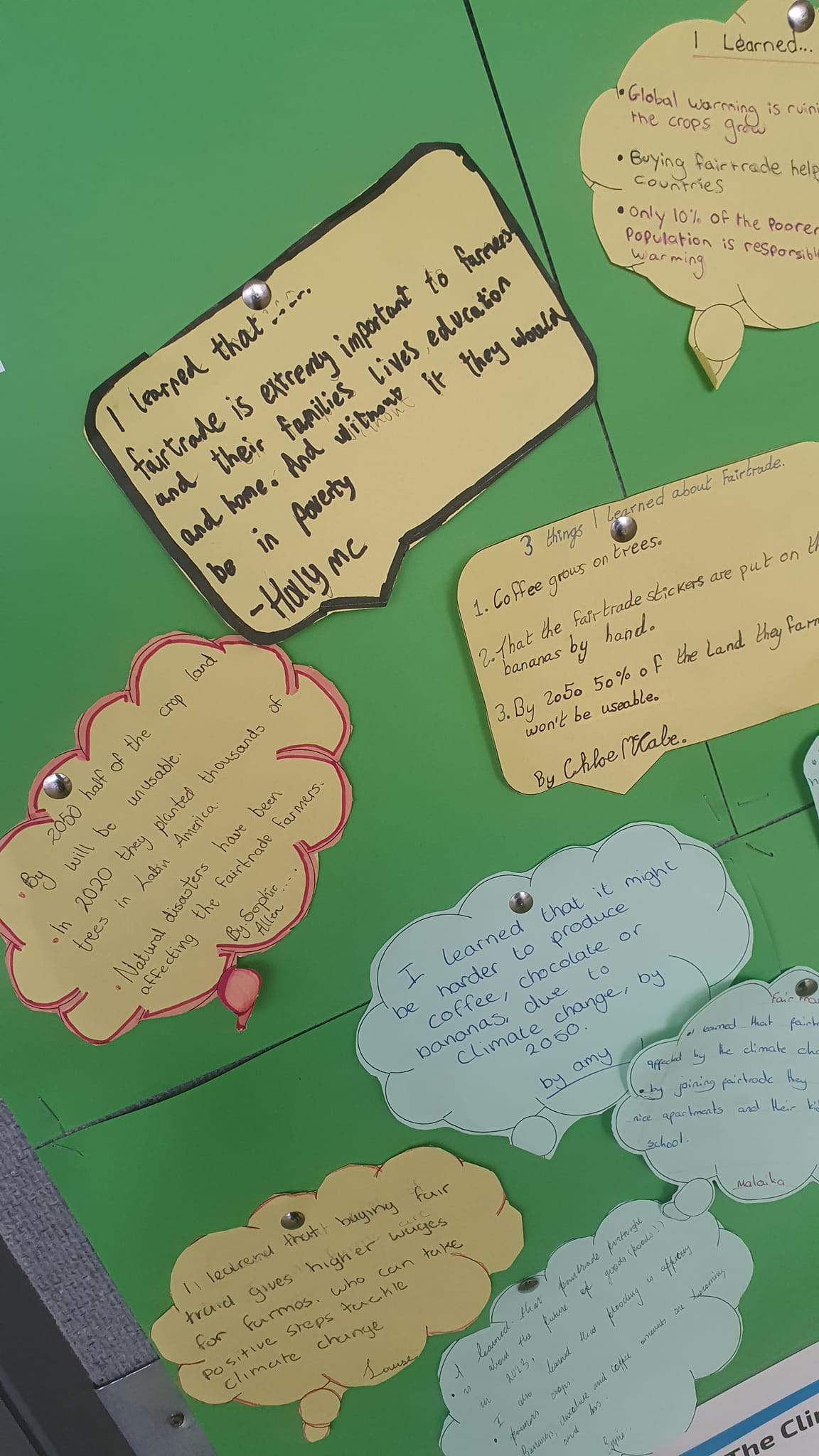 As part of our work in Global Citizenship, this year for Fairtrade Fortnight students learned more about the benefits of supporting fairtrade for the farmers and producers of some of our favourite food products like bananas, chocolate, tea and coffee. This year we looked more critically at the topic with a focus on how climate change is impacting how our food is being produced.