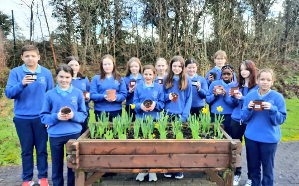🌱🌷 Spring is in the air at BCS…Ms Colum’s First Year Science students looking at the daffodils and tulips grown. All students sowed their own red and white onions which they look forward to eating later in the summer