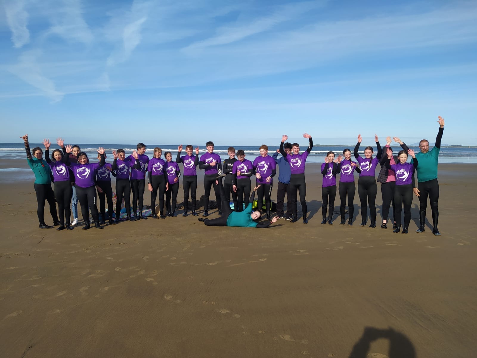 Our friends from Belmont-sur-Rance have joined us this week for the first leg of our language exchange. 17 students from Ensemble Scolaire Saint Michel are spending the week with our TY students, attending classes and getting to experience some of what our area has to offer. On Monday, the group visited Strandhill for surfing lessons and an invigorating hike up Knocknarea to visit Queen Maeve’s grave.