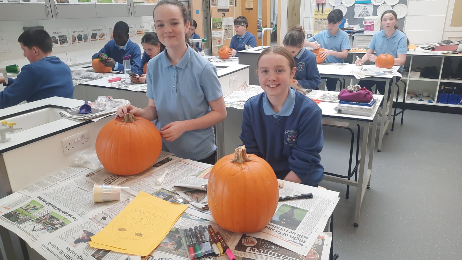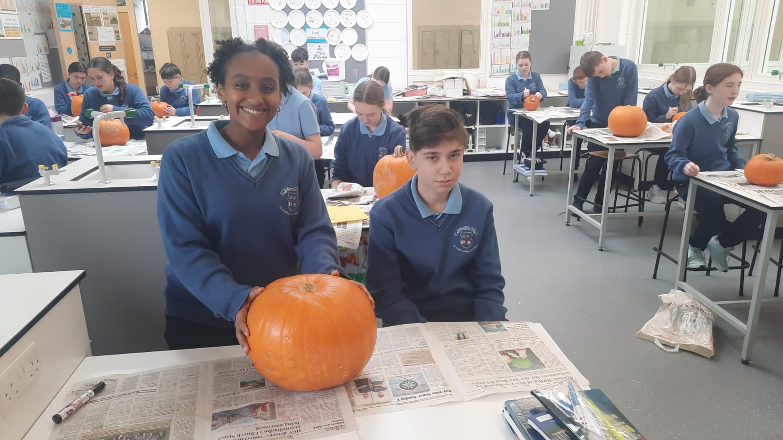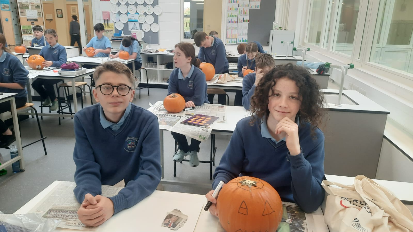 As part of the Science course first year and second year students carved pumpkins in class this week. Students collected the seeds and will plant the pumpkin seeds in the spring time as part of our school garden and sustainability. 🎃🌱