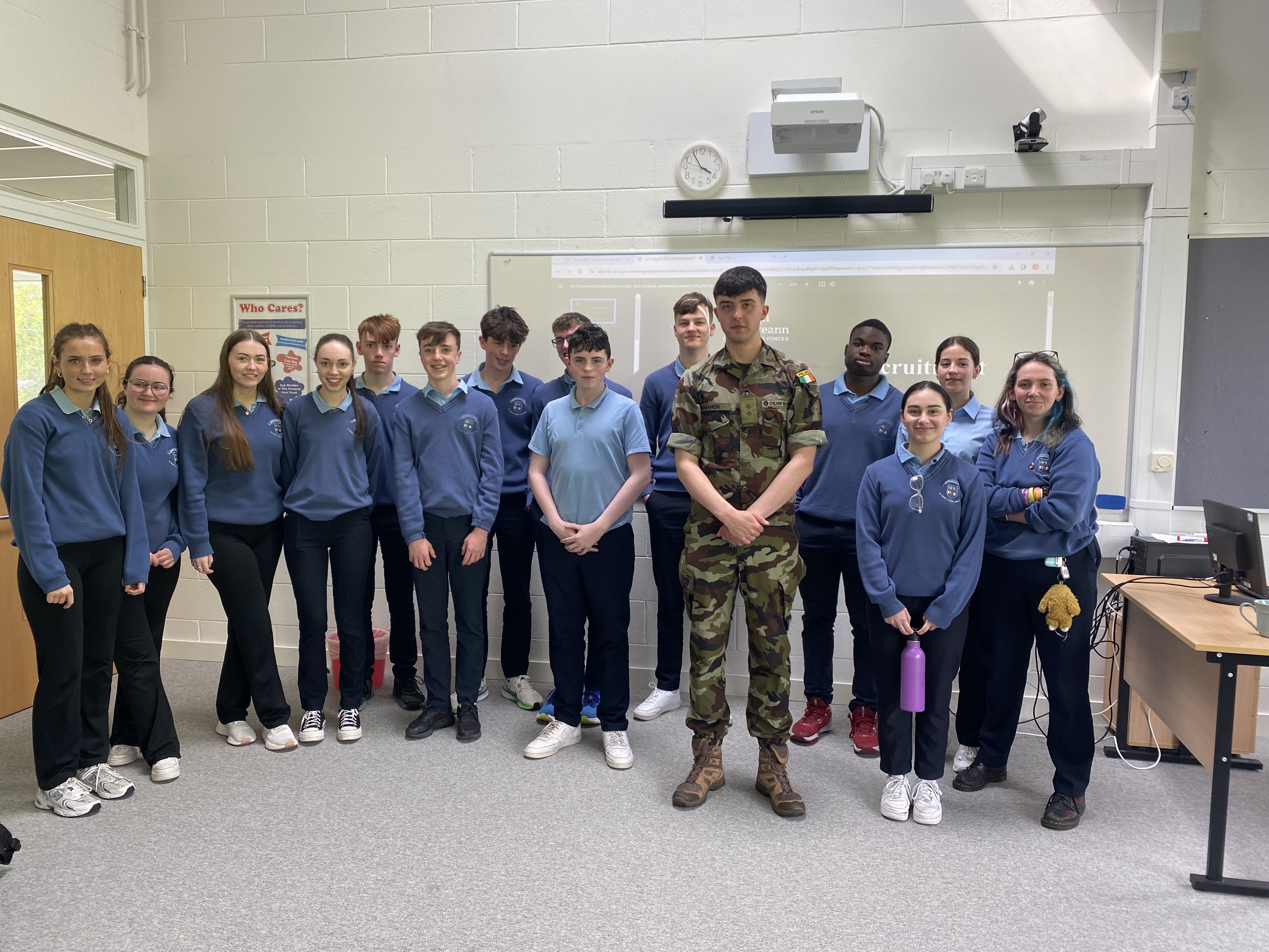 TY, 5th & 6th years attended an excellent career talk today delivered by Jack Mc Mahon from the Óglaigh na hÉireann / Irish Defence Forces Jack spoke to students on all the possible careers within the defence and navy services. Thanks to Ms Mannion for organising this talk