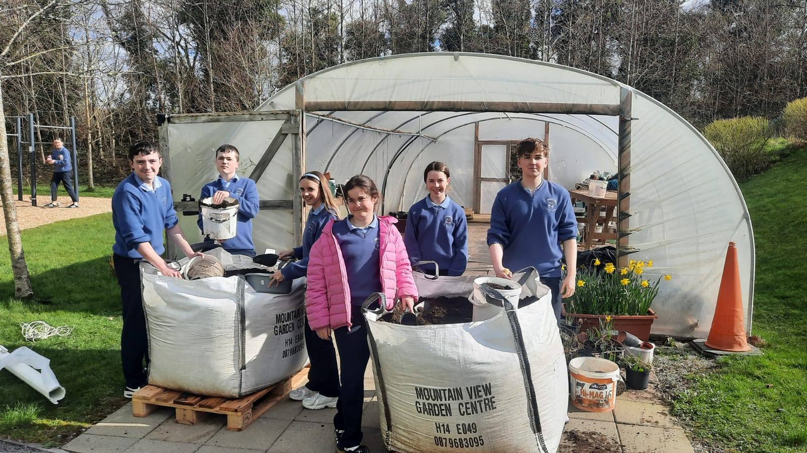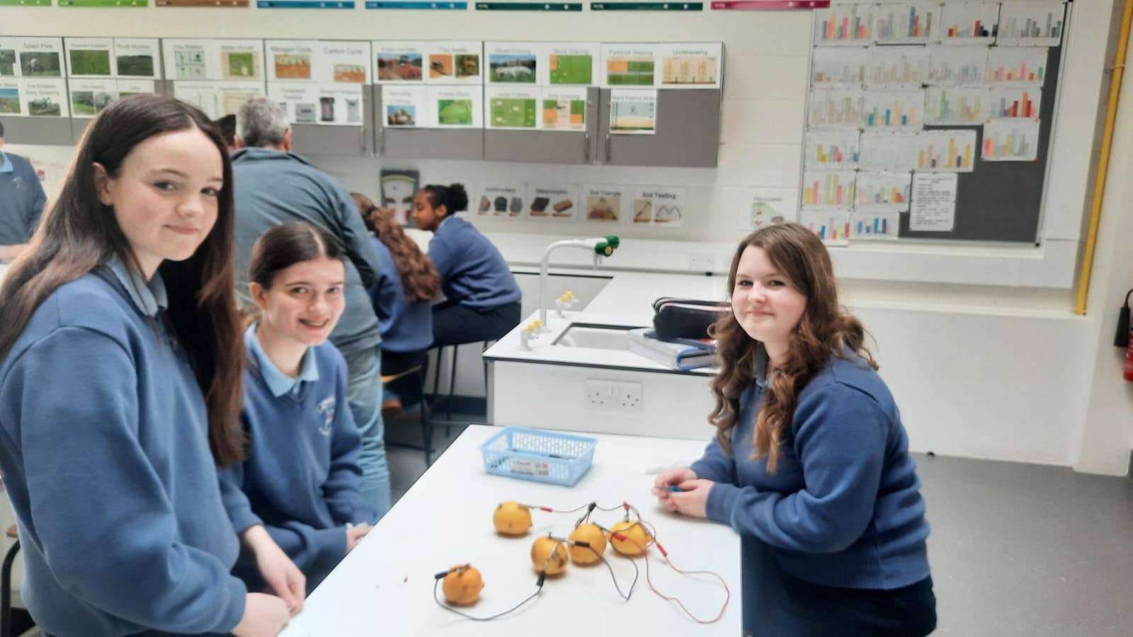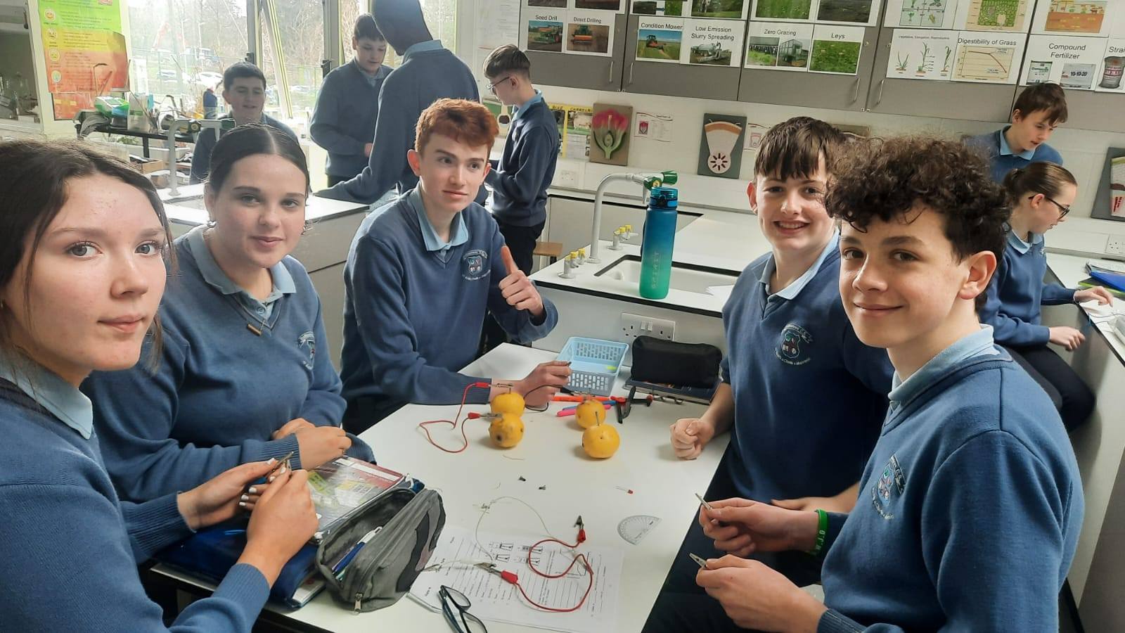 Second year science students making current from lemons and lighting an LED bulb. Today the Student Council were also busy at lunchtime getting the raised bed ready to sow produce in the polytunnel as spring is here.
