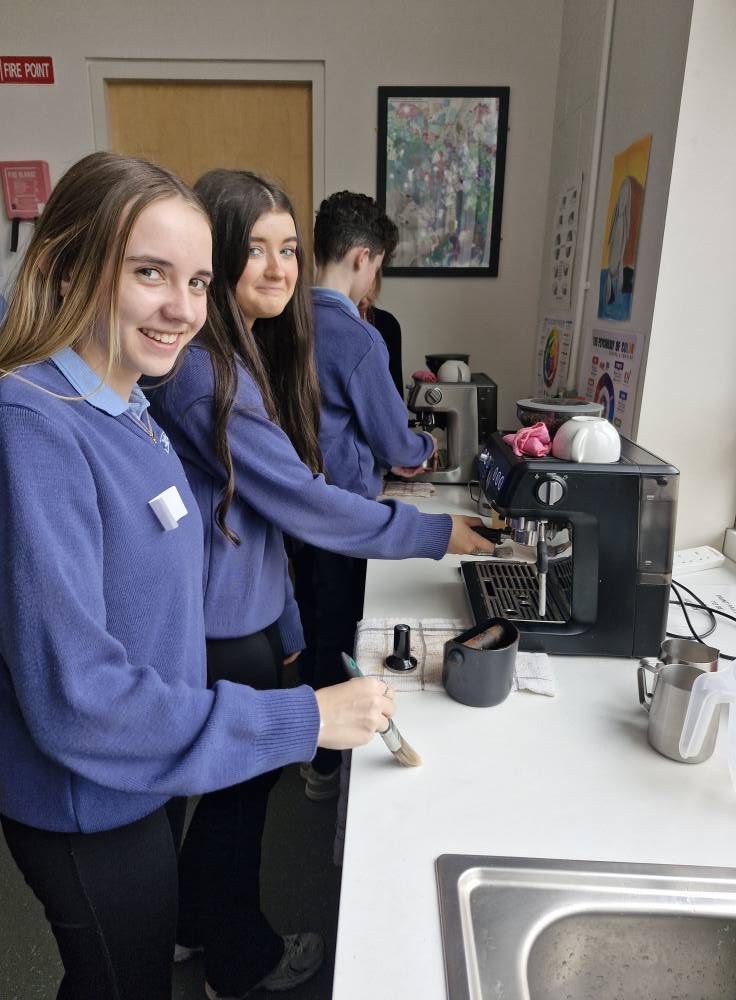 The TY class had a great time today participating in a Barista Training Workshop, learning about different types of coffee and how to make them. The skills they gained will be valuable for future hospitality jobs and when they go travelling it is great to have on their CV.