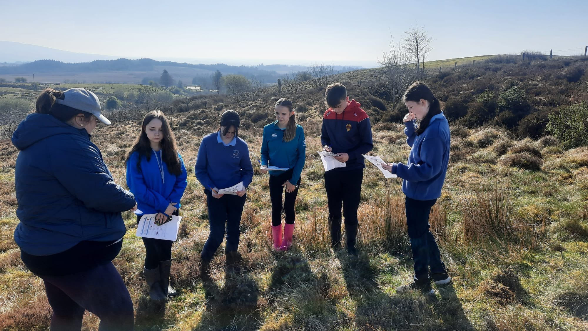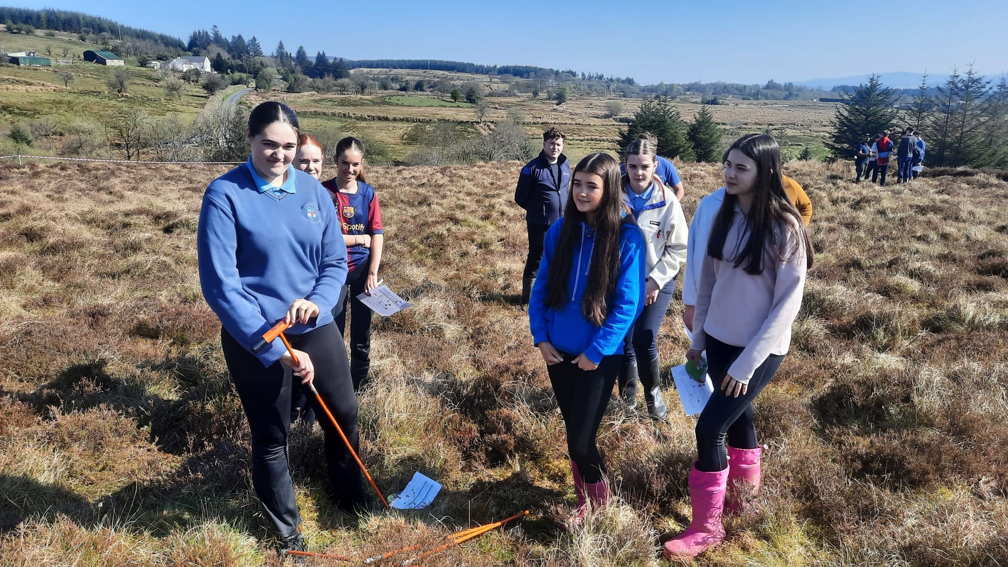 TYs visited the local bog near Swanlibar on a field trip today with Waterlands. They carried out peat probing in the local bog.