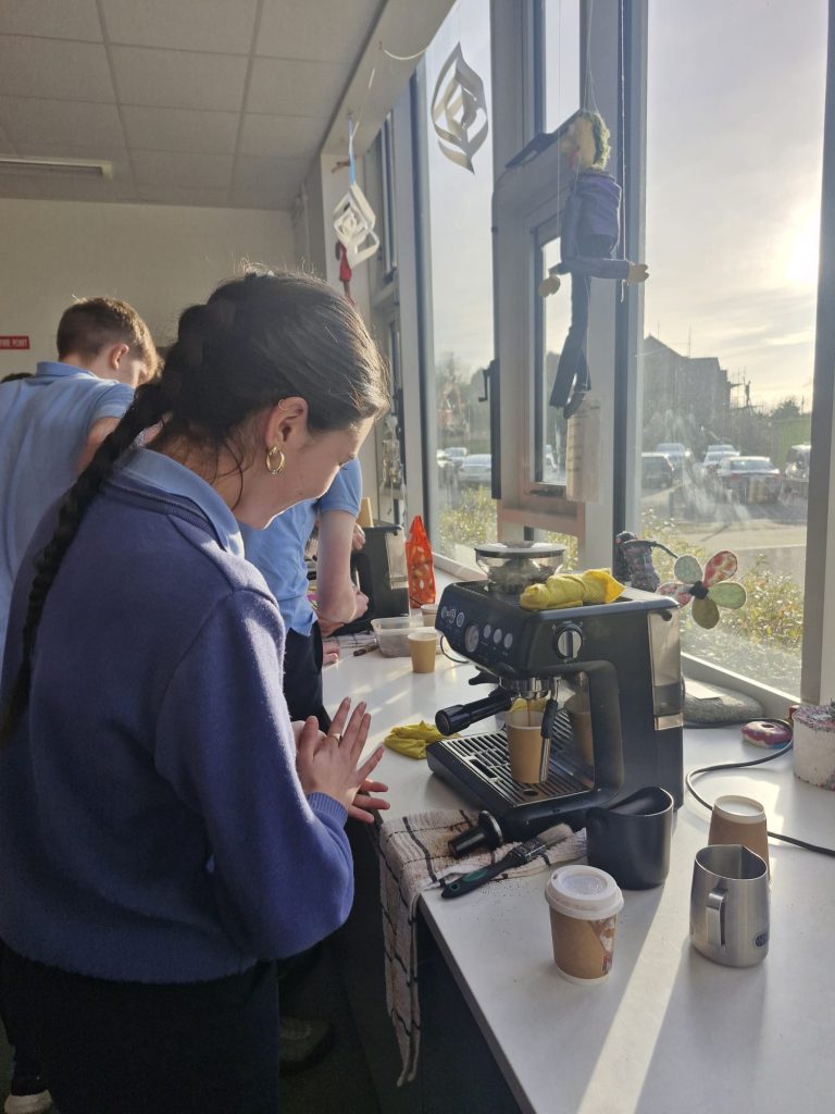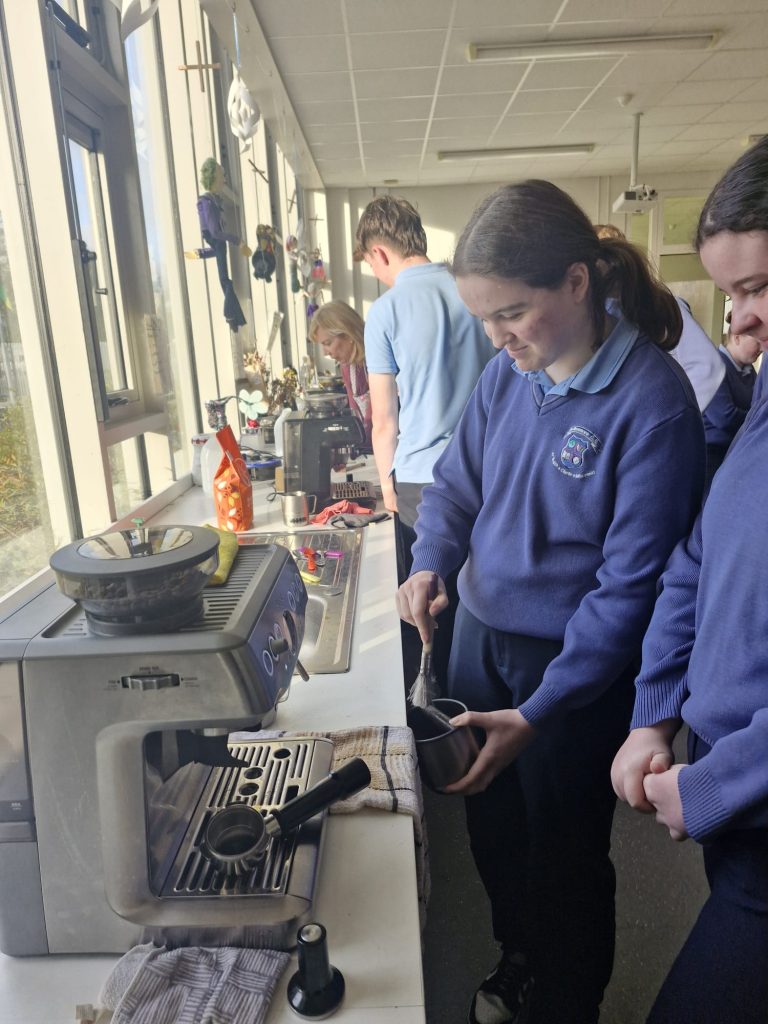 TY students were busy learning about the origins and practices associated with coffee growing and brewing this past week. Thanks to Mary Therese for facilitating the Barista workshop and teaching students the skills needed to make the perfect coffee. A great addition for the CV!