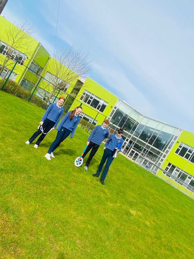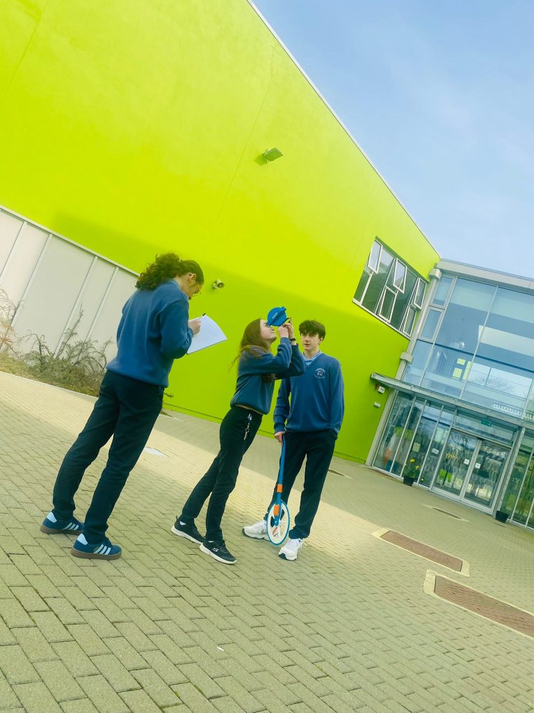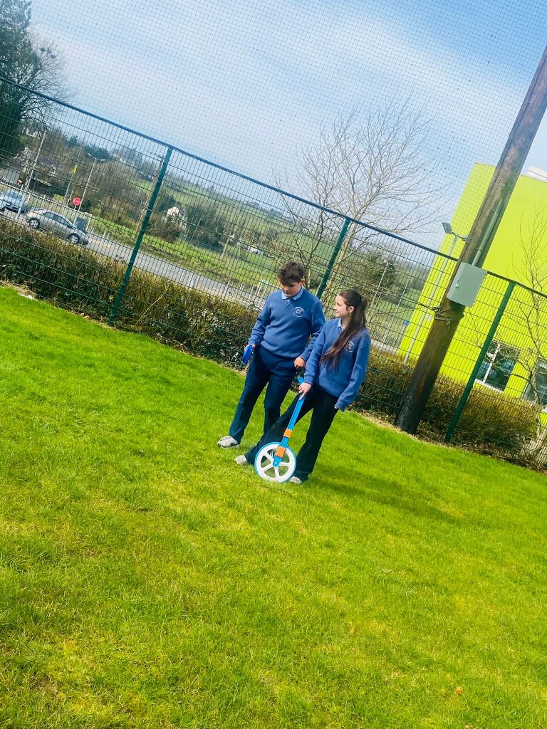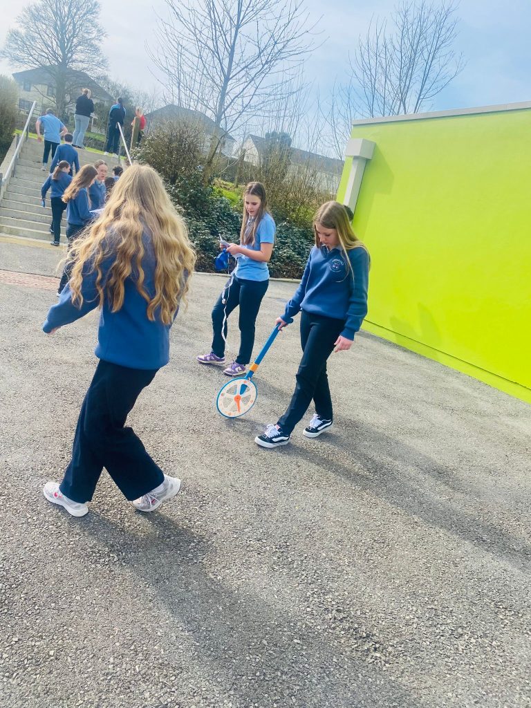 The 2nd years learnt how to measure heights of walls, posts and other items around the school – using a trundle wheel and a clinometer. Back in the classroom they used trigonometry to work out the heights. A great way to understand why we learn trigonometry.