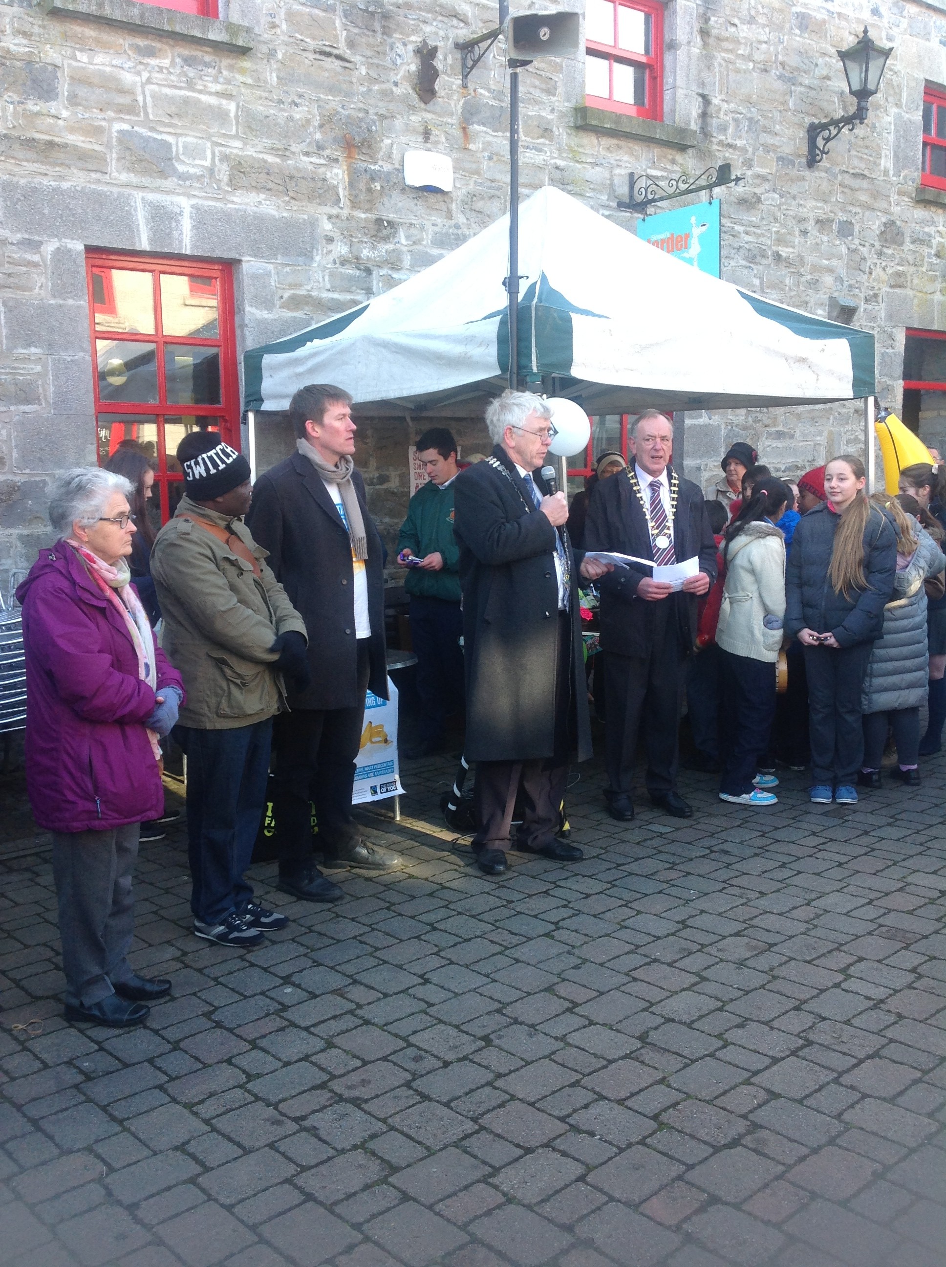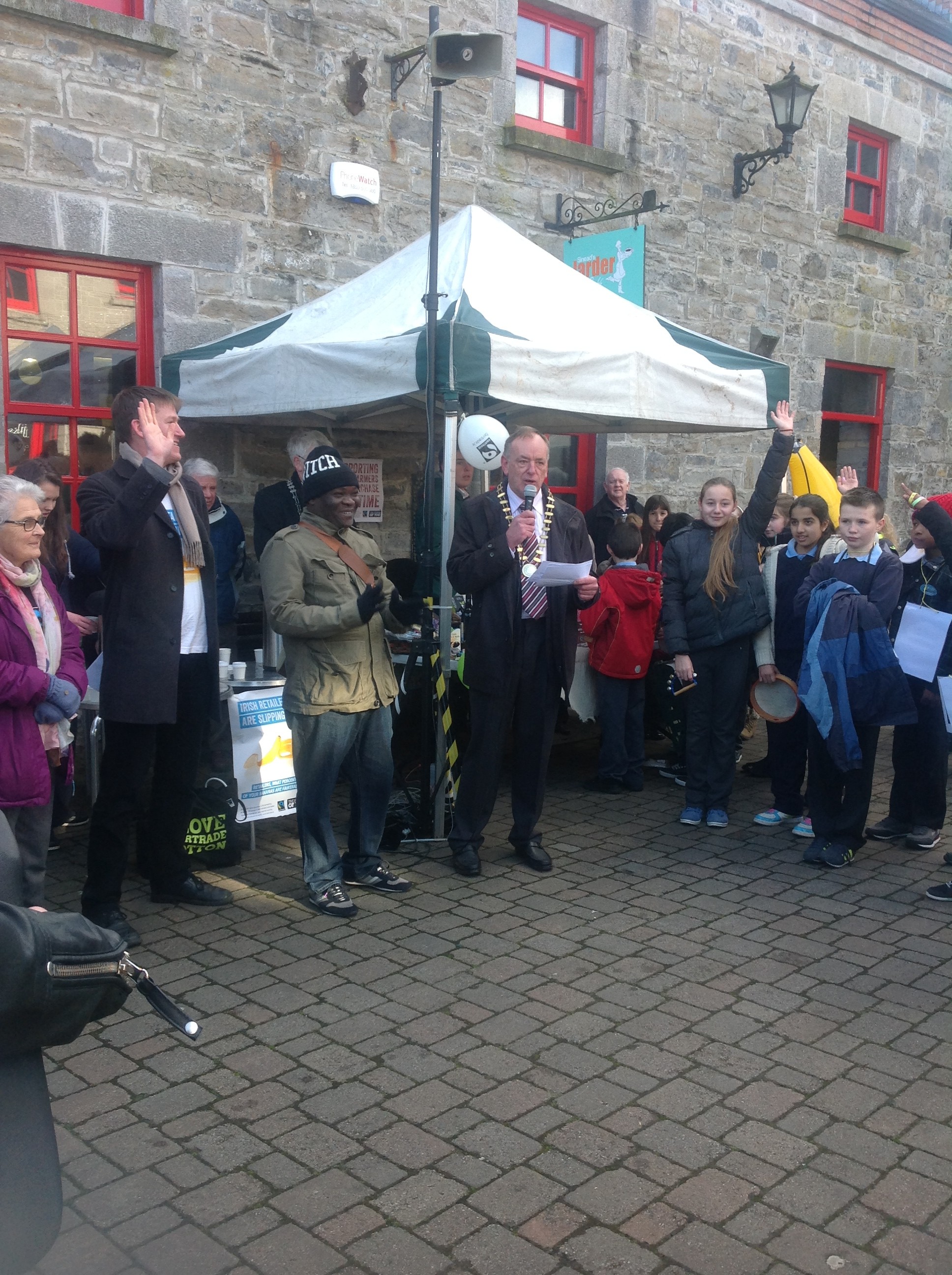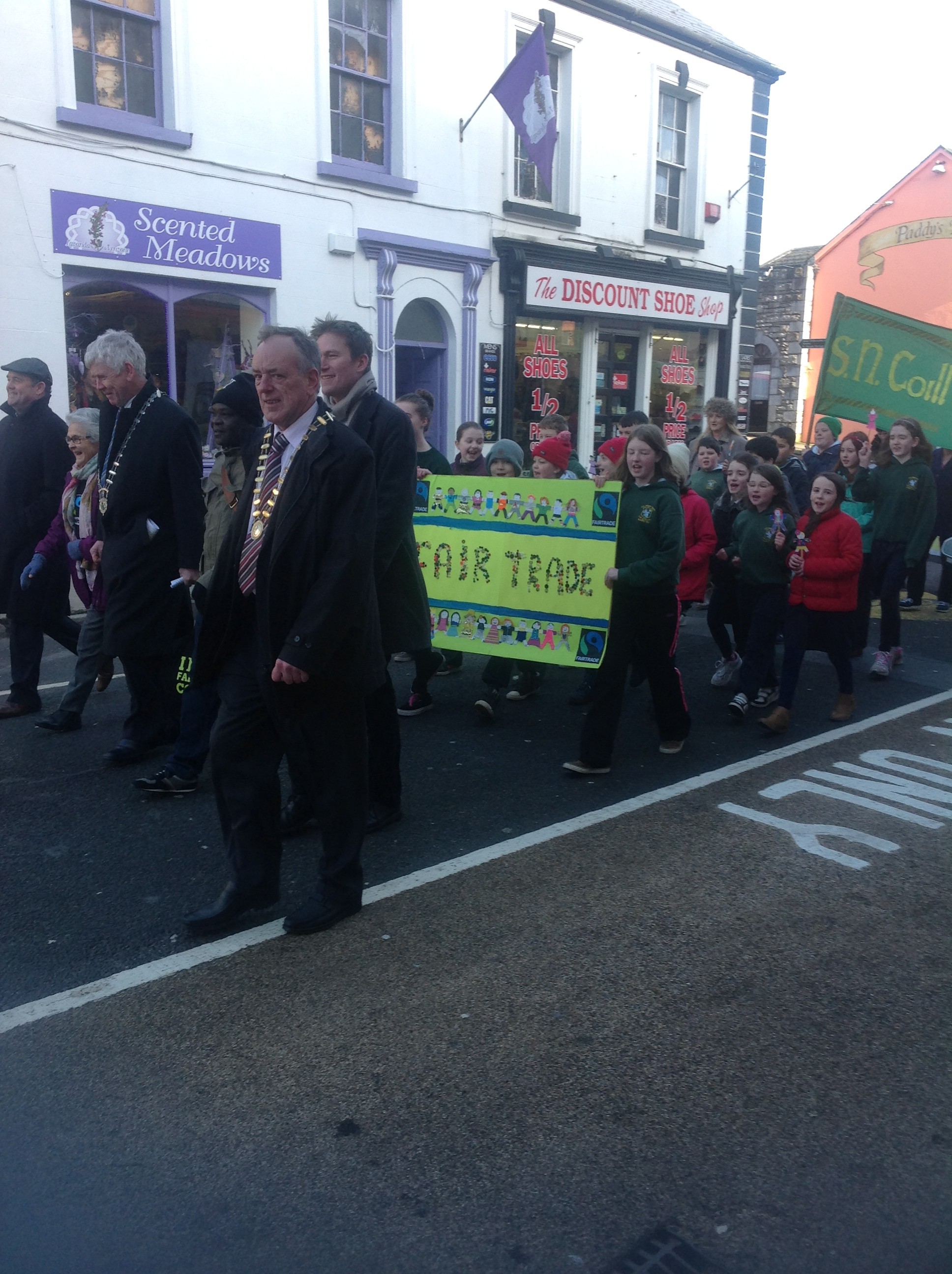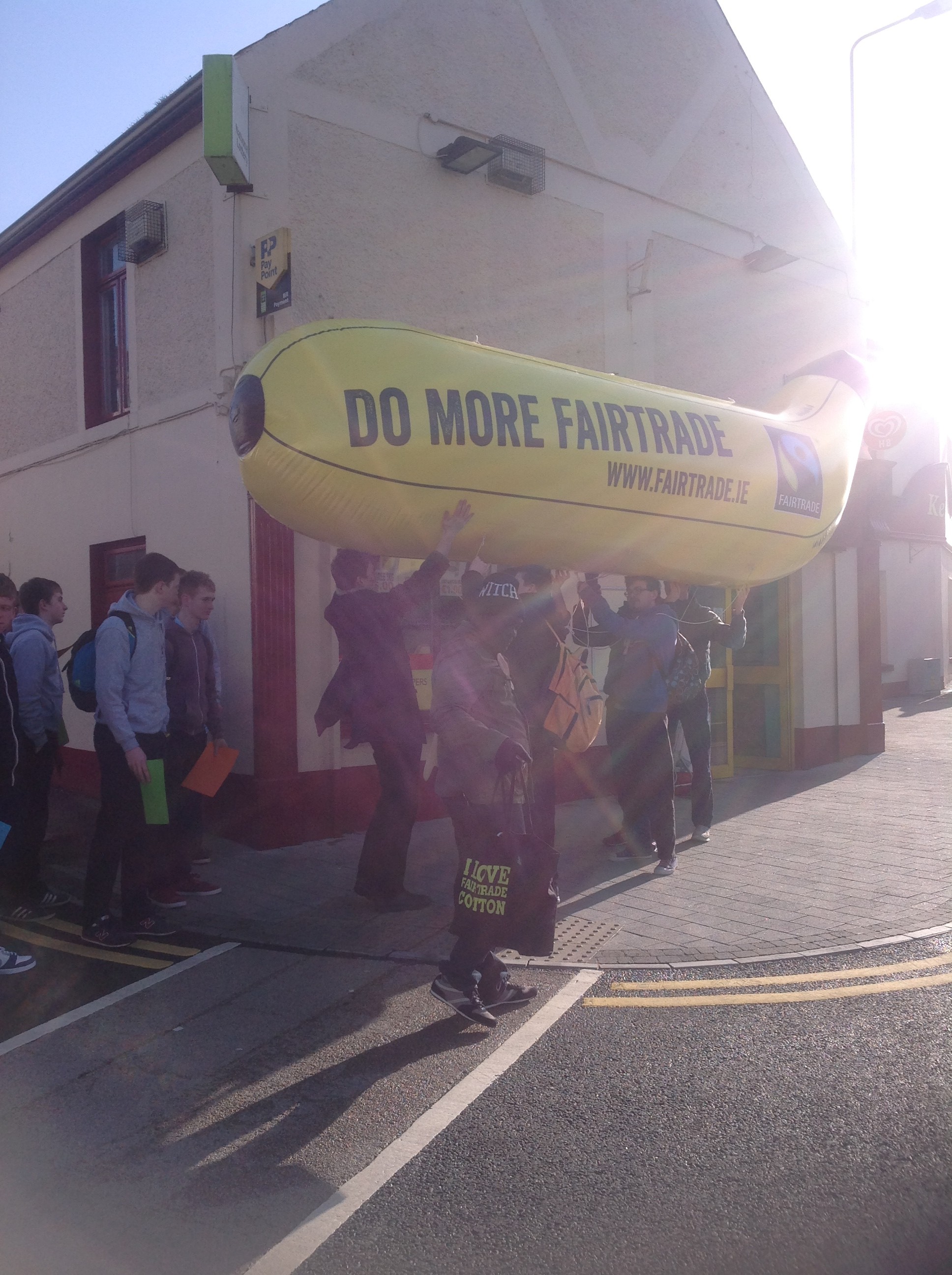 Fair-trade Fortnight was held this year from 23rd February-8th March. Students learnt all about fair-trade and its importance through the DE programme in school. The Transition Year students then got involved in an organised event during Fair-trade Fortnight by participating in a fair-trade parade in our nearest designated Fair-trade town (Carrick on Shannon). Students got the opportunity to meet and hear Chief Adam Tempuri (a cashew nut farmer from Ghana) speak about the difference we make to his families life by supporting fair-trade.