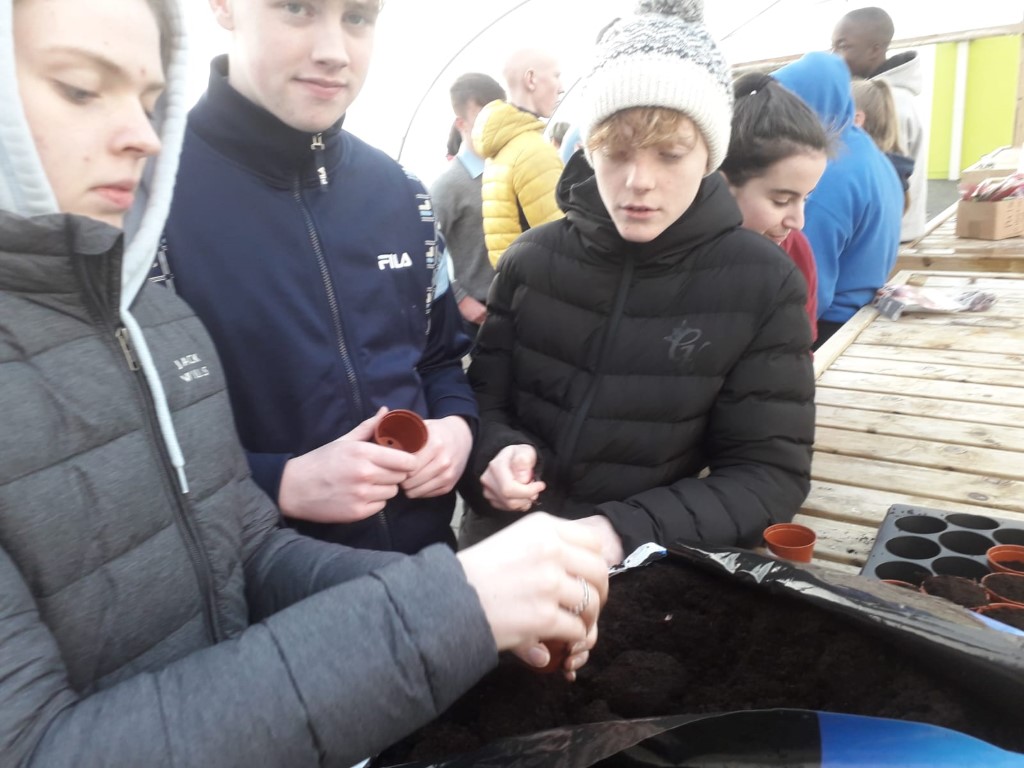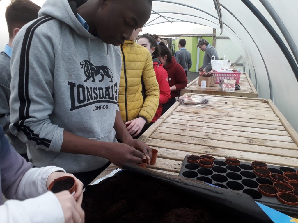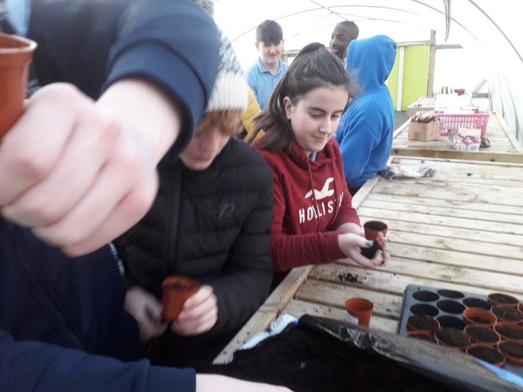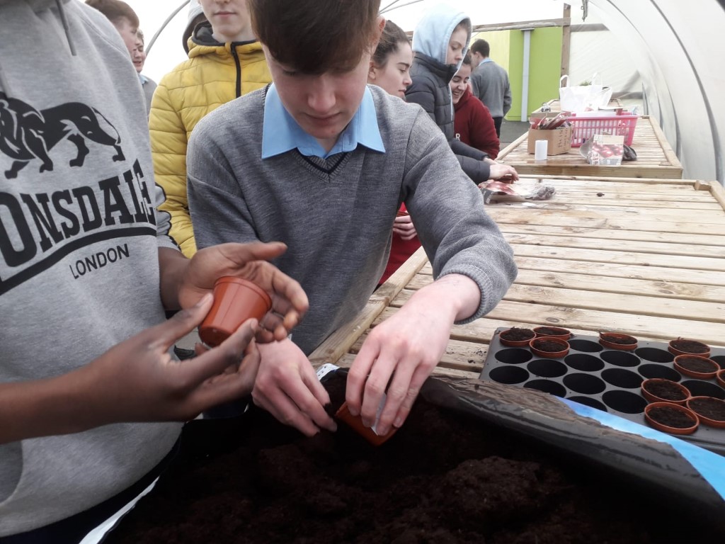 Green-fingered TY students planted red onions, peas, bread beans and beetroot in the poly-tunnel as they began their individual mini-gardens.
