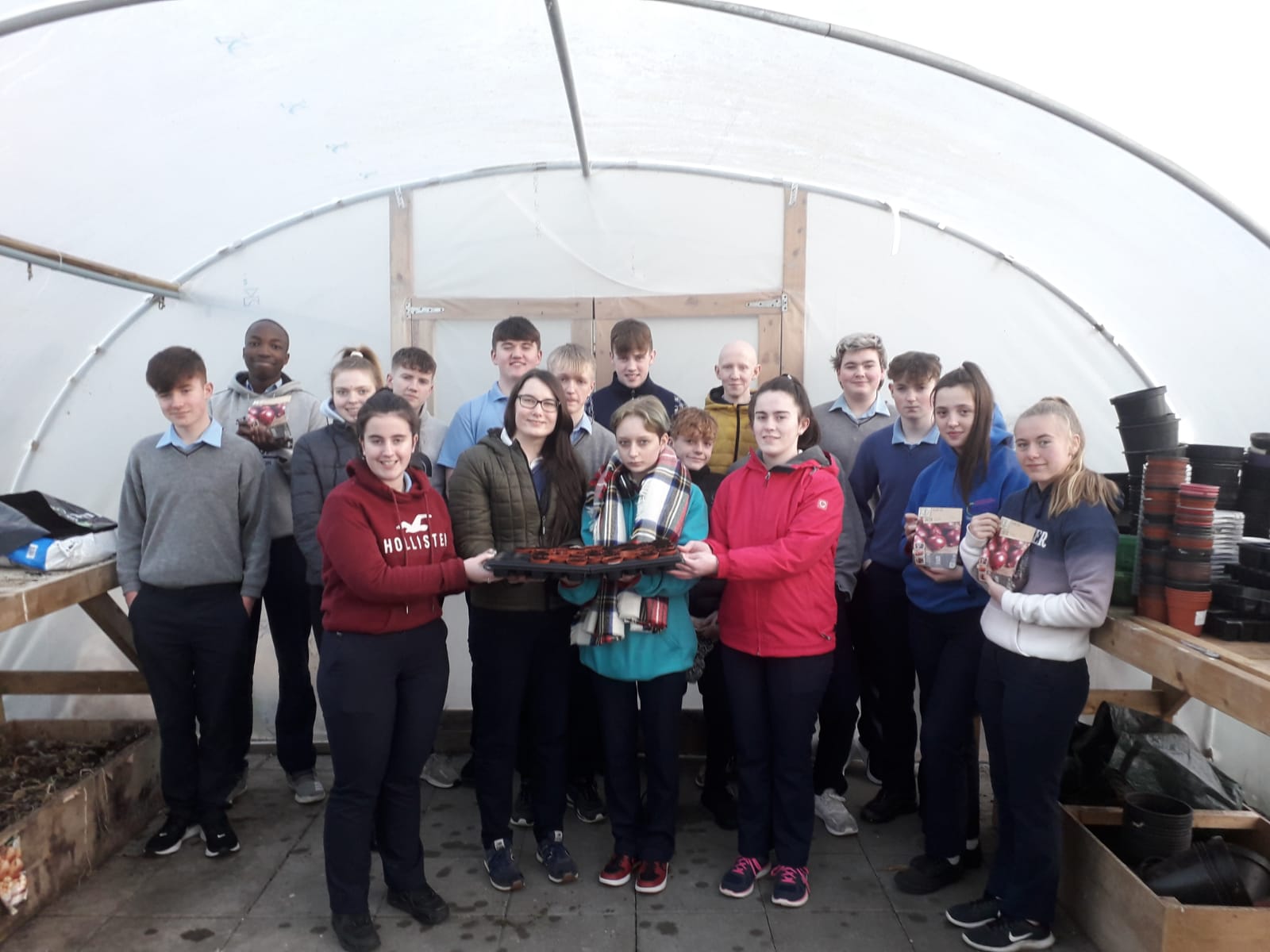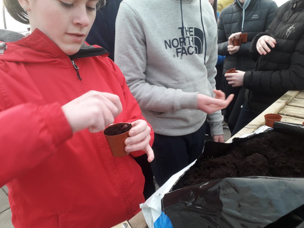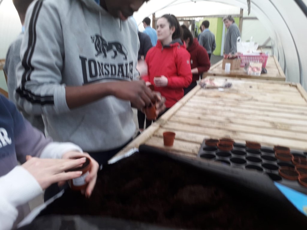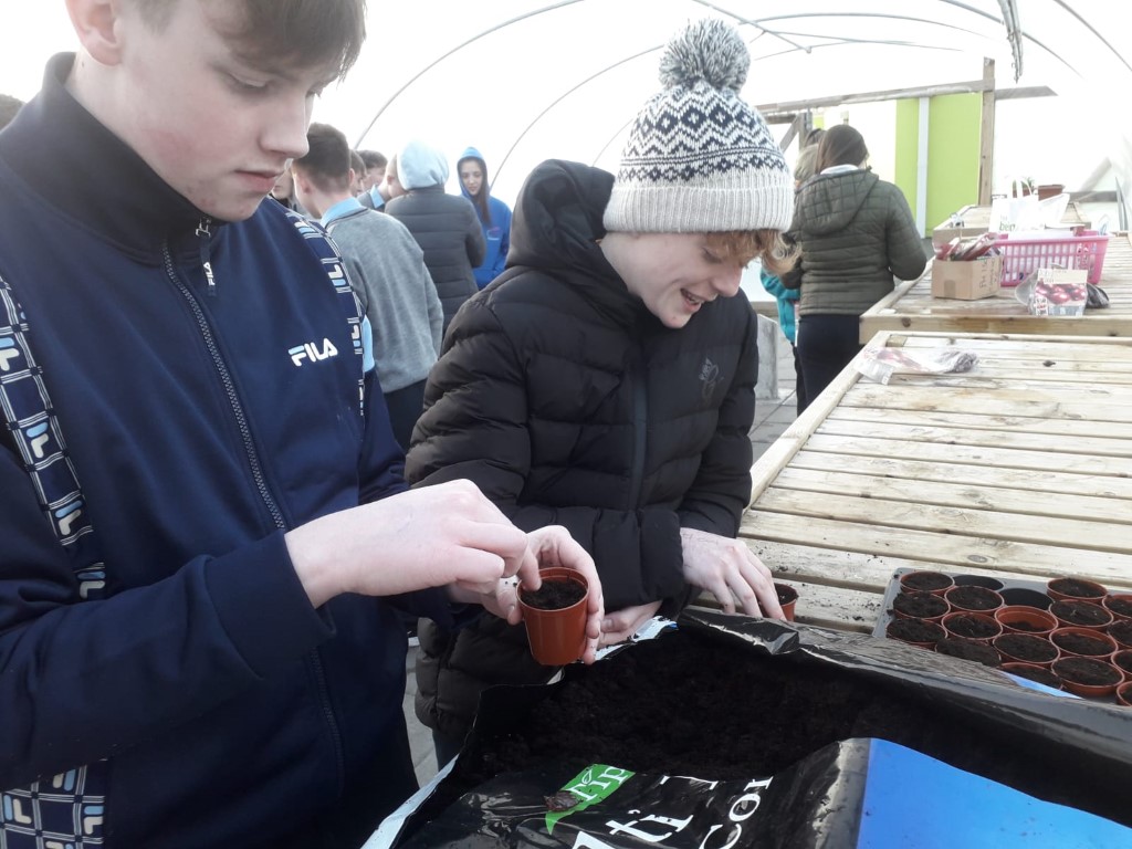 Green-fingered TY students planted red onions, peas, bread beans and beetroot in the poly-tunnel as they began their individual mini-gardens.