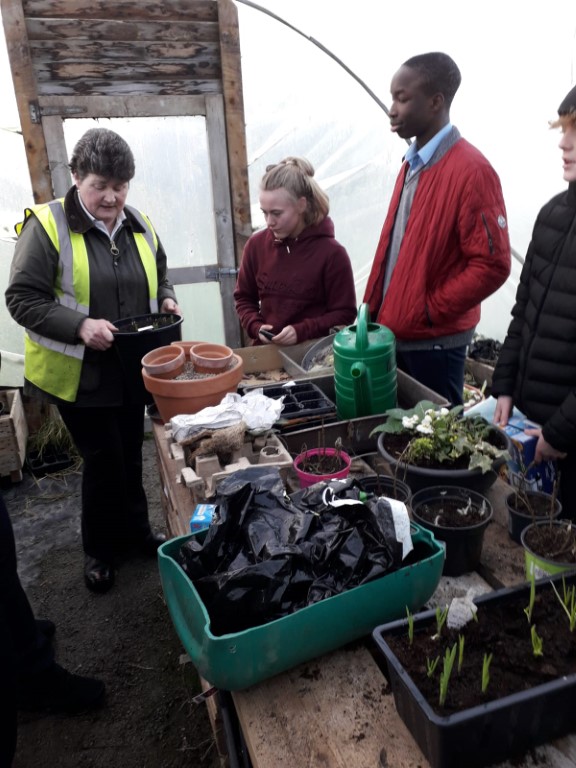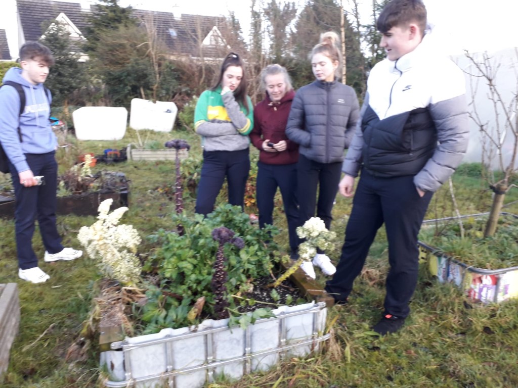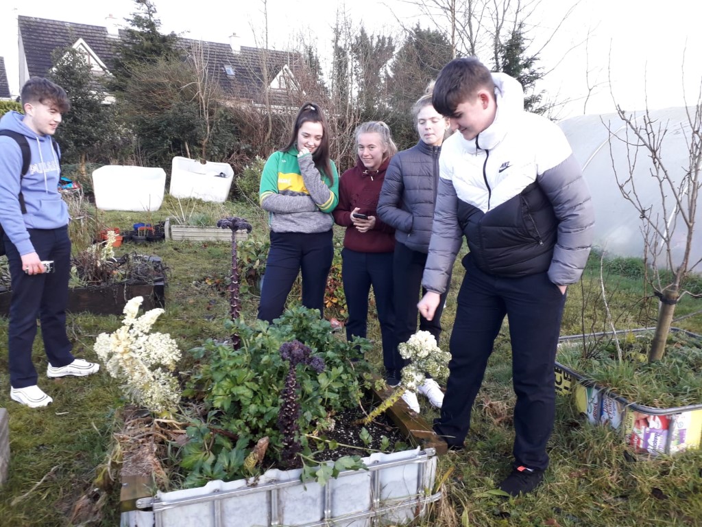 Ms Colum brought the TY class to Ballinamore Community Garden. Kay Maguire and Eamon Smith showed the students the polytunnels. Students got to look at plants such as nasturtiums, strawberry plants, borage, kale among many other plants. Companion planting is carried out at the garden and students saw many examples of companion planting.